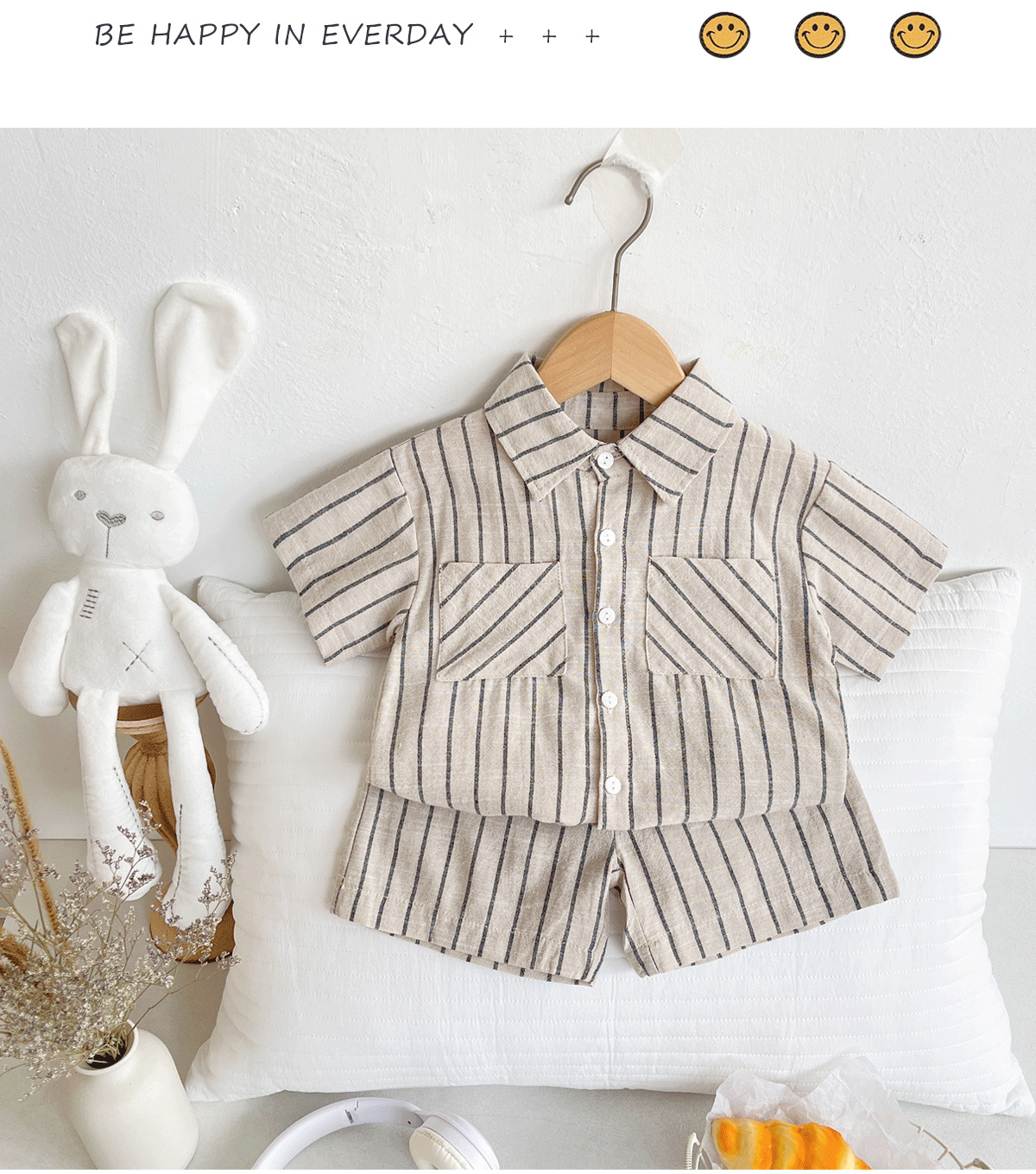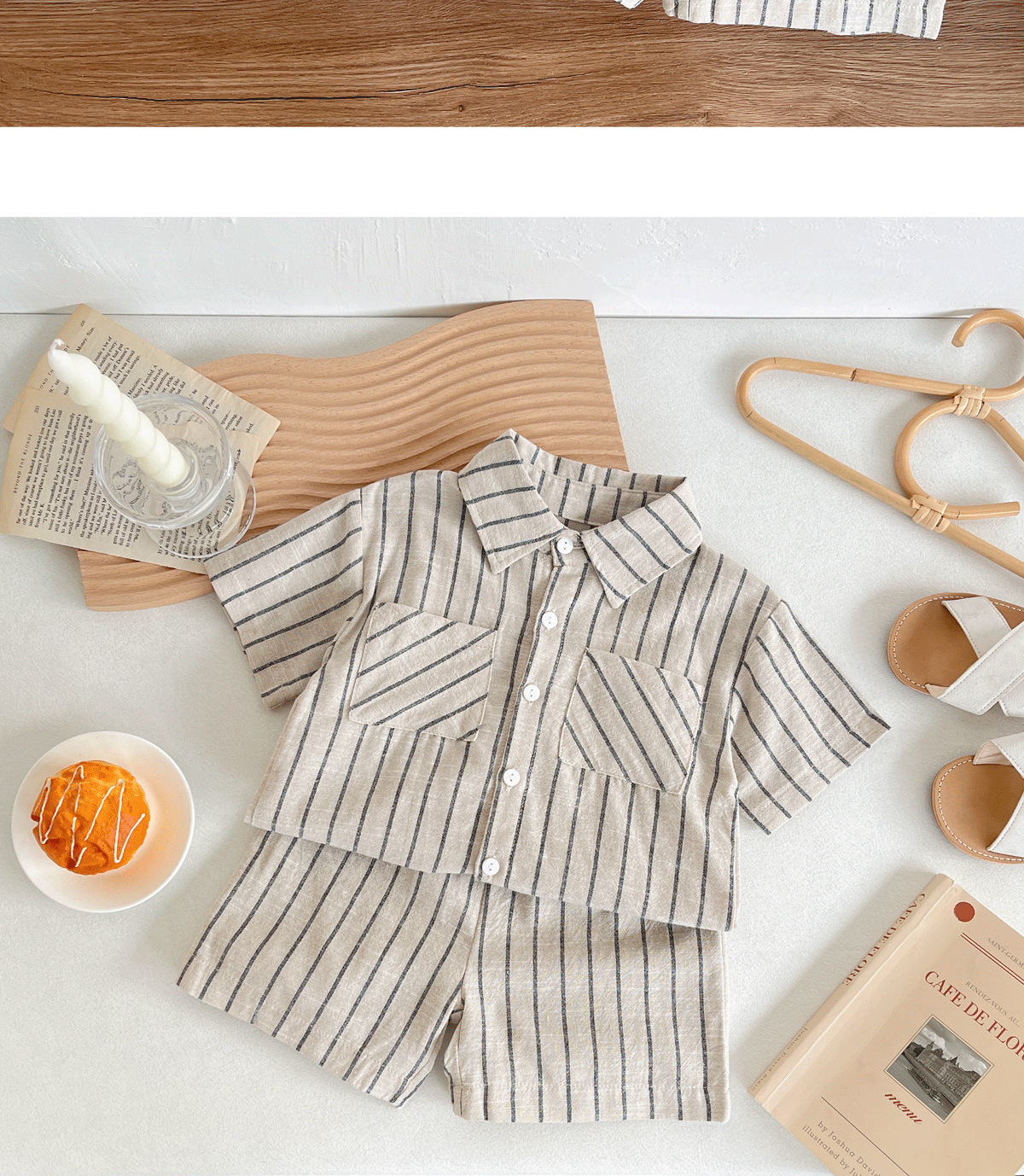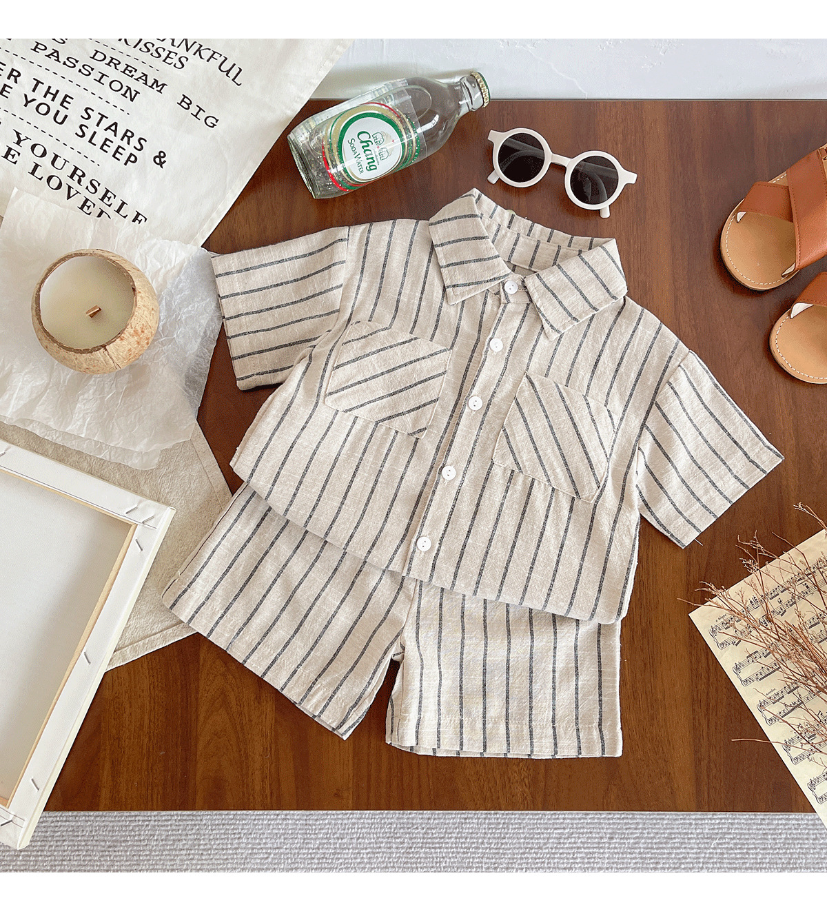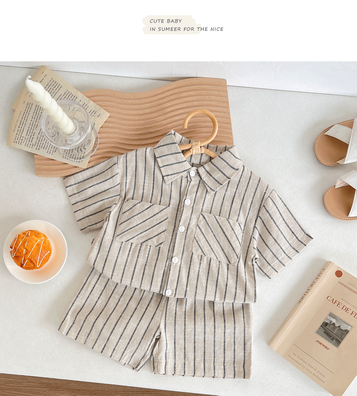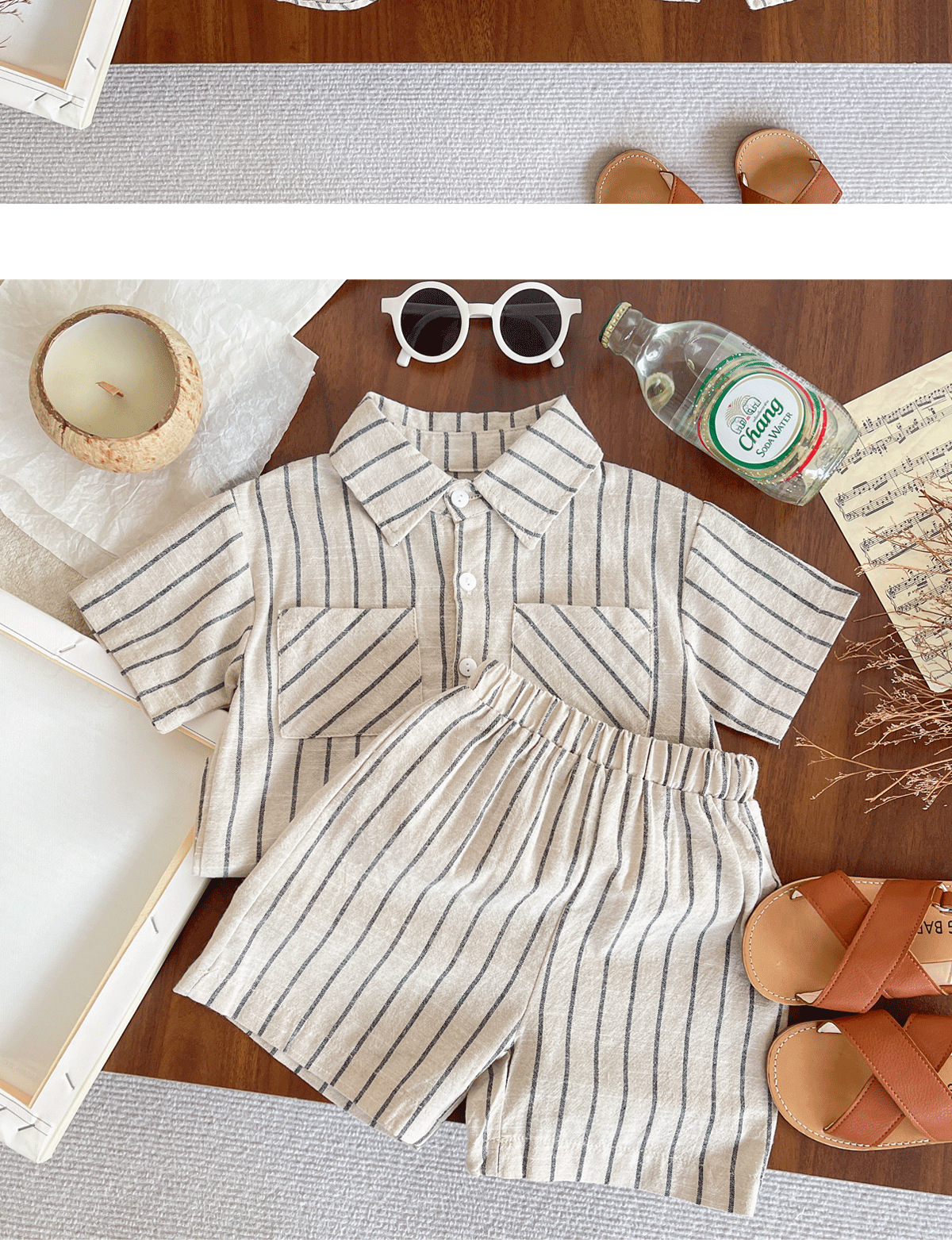 세트 한국식 Ins Baby와 유아복 올매치 스트라이프 편안한 여름 쿨 뉴 캐주얼 반팔 세트 코튼 투피스 세트스토어 가기