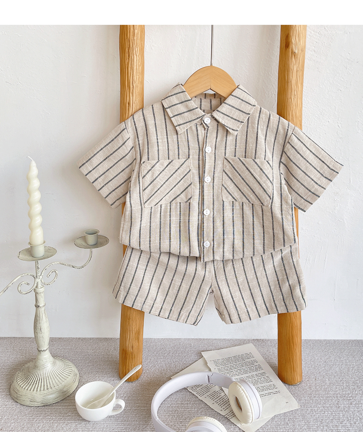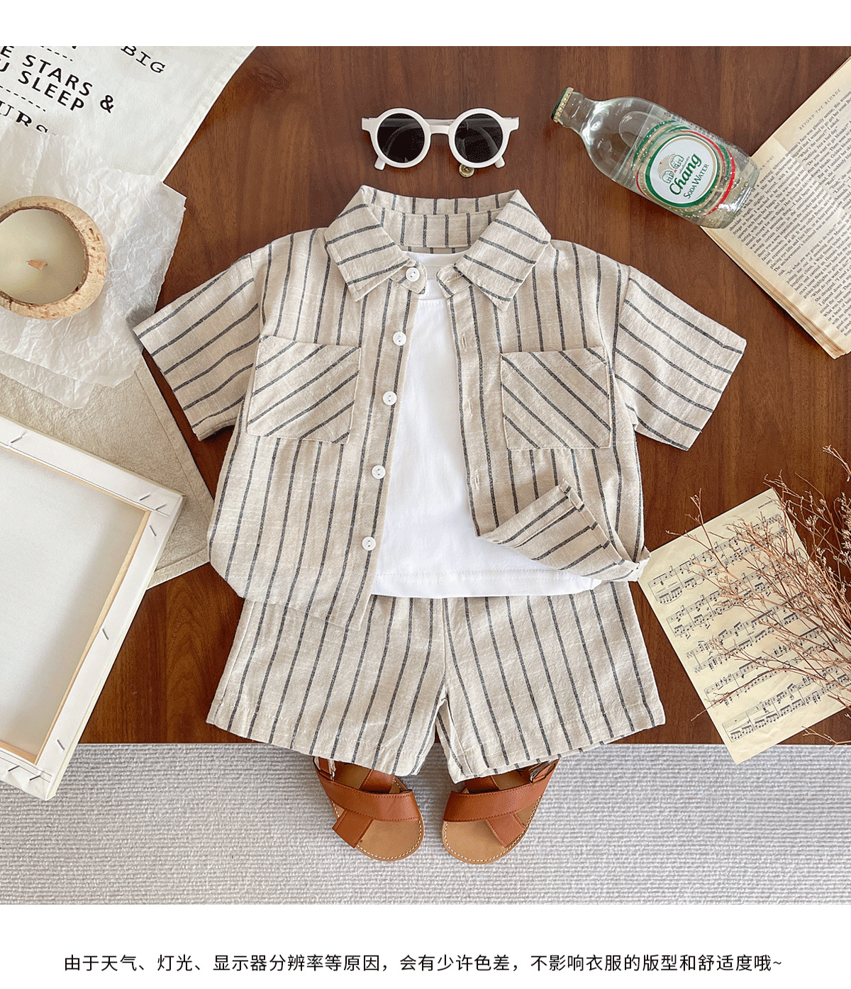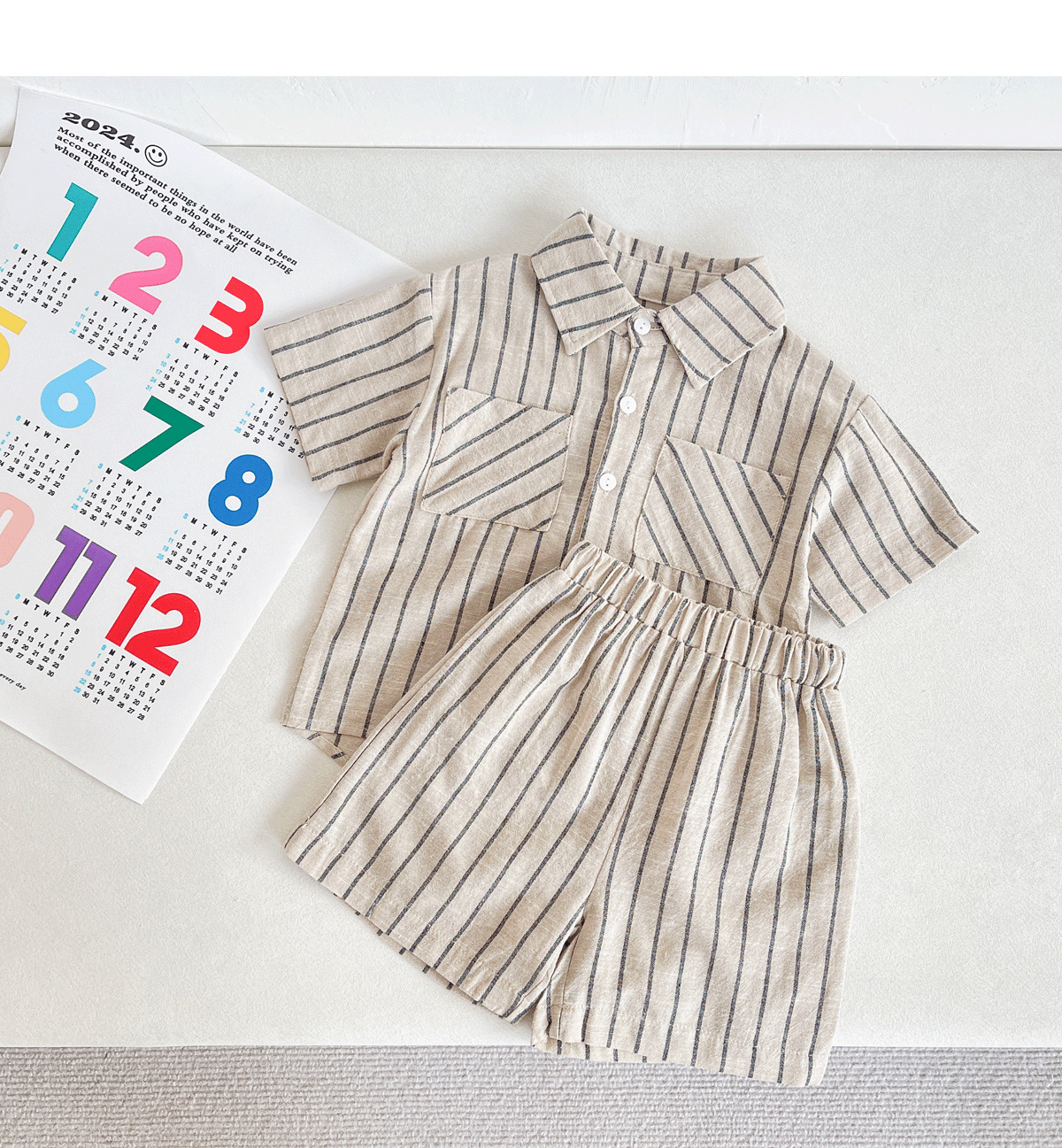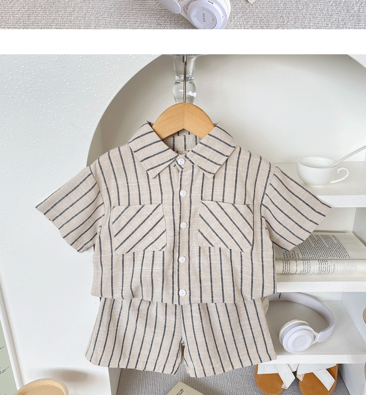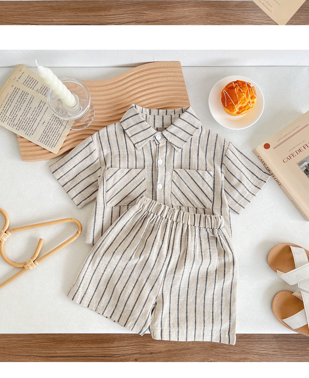 세트 한국식 Ins Baby와 유아복 올매치 스트라이프 편안한 여름 쿨 뉴 캐주얼 반팔 세트 코튼 투피스 세트스토어 가기