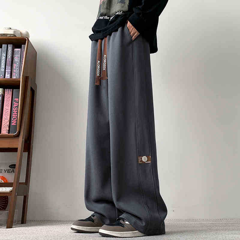 NASA 캐주얼 바지 남자 아메리칸 스타일 하이 스트리트 트렌디 브랜드 루즈 스트레이트 바지 봄과 가을을위한 모든 경기 잘 생긴 와이드 레그 바지