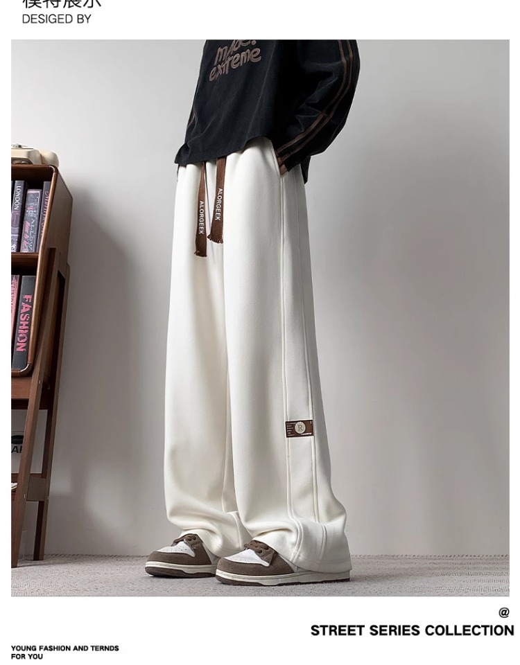 NASA 캐주얼 바지 남자 아메리칸 스타일 하이 스트리트 트렌디 브랜드 루즈 스트레이트 바지 봄과 가을을위한 모든 경기 잘 생긴 와이드 레그 바지스토어 가기