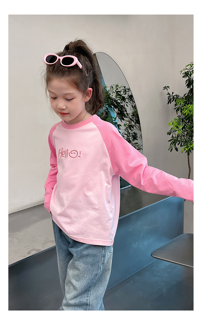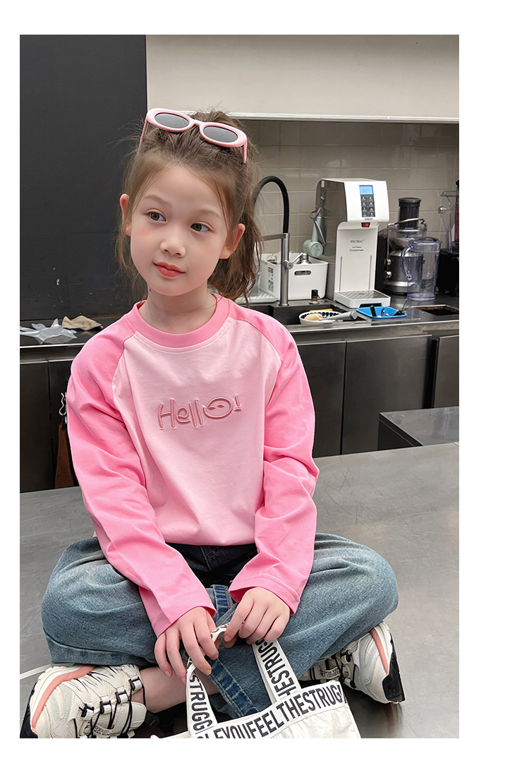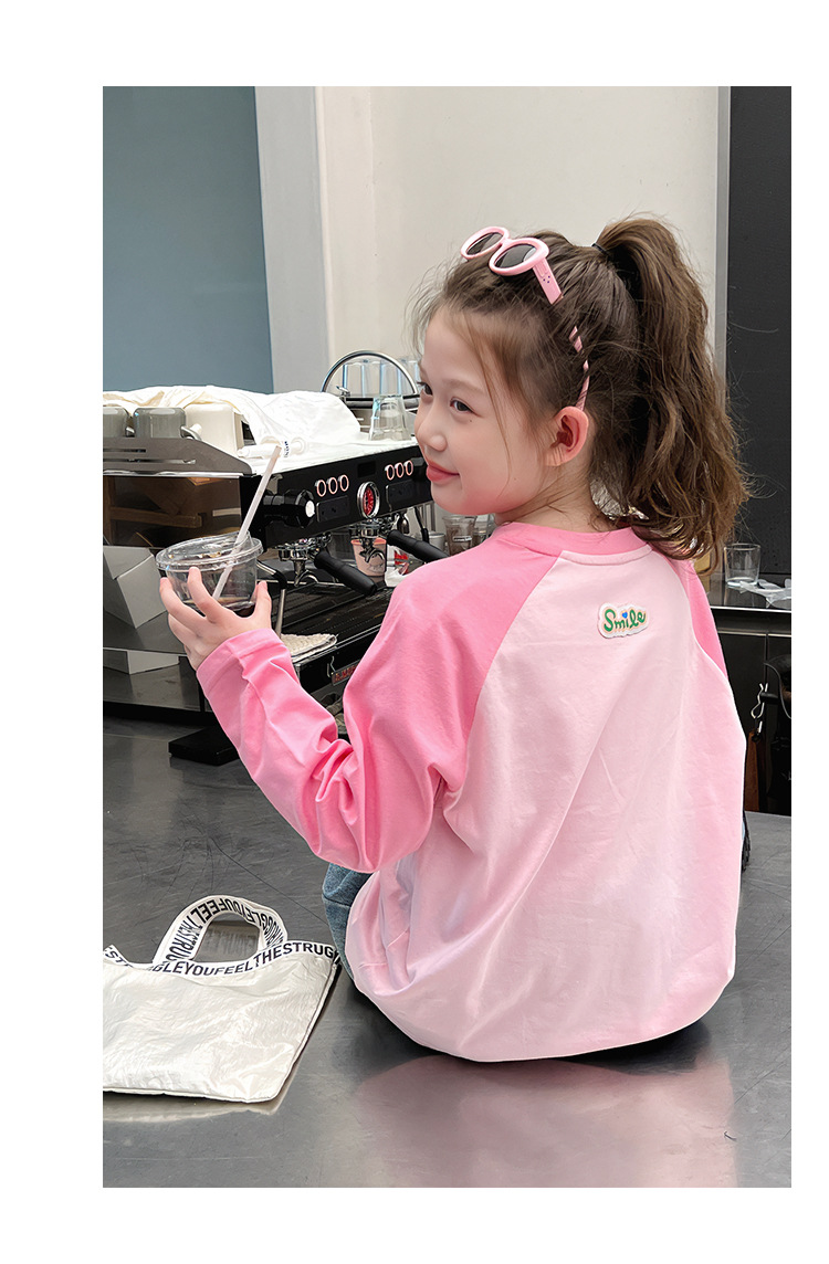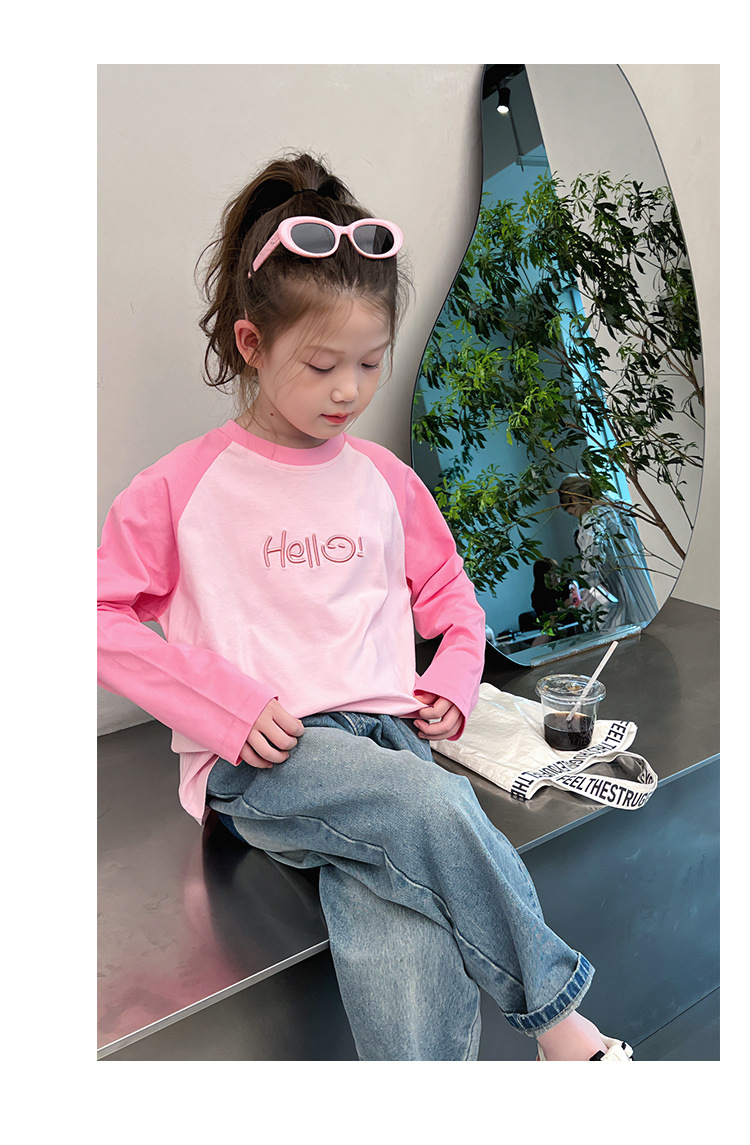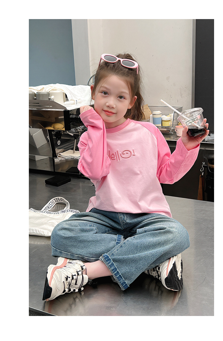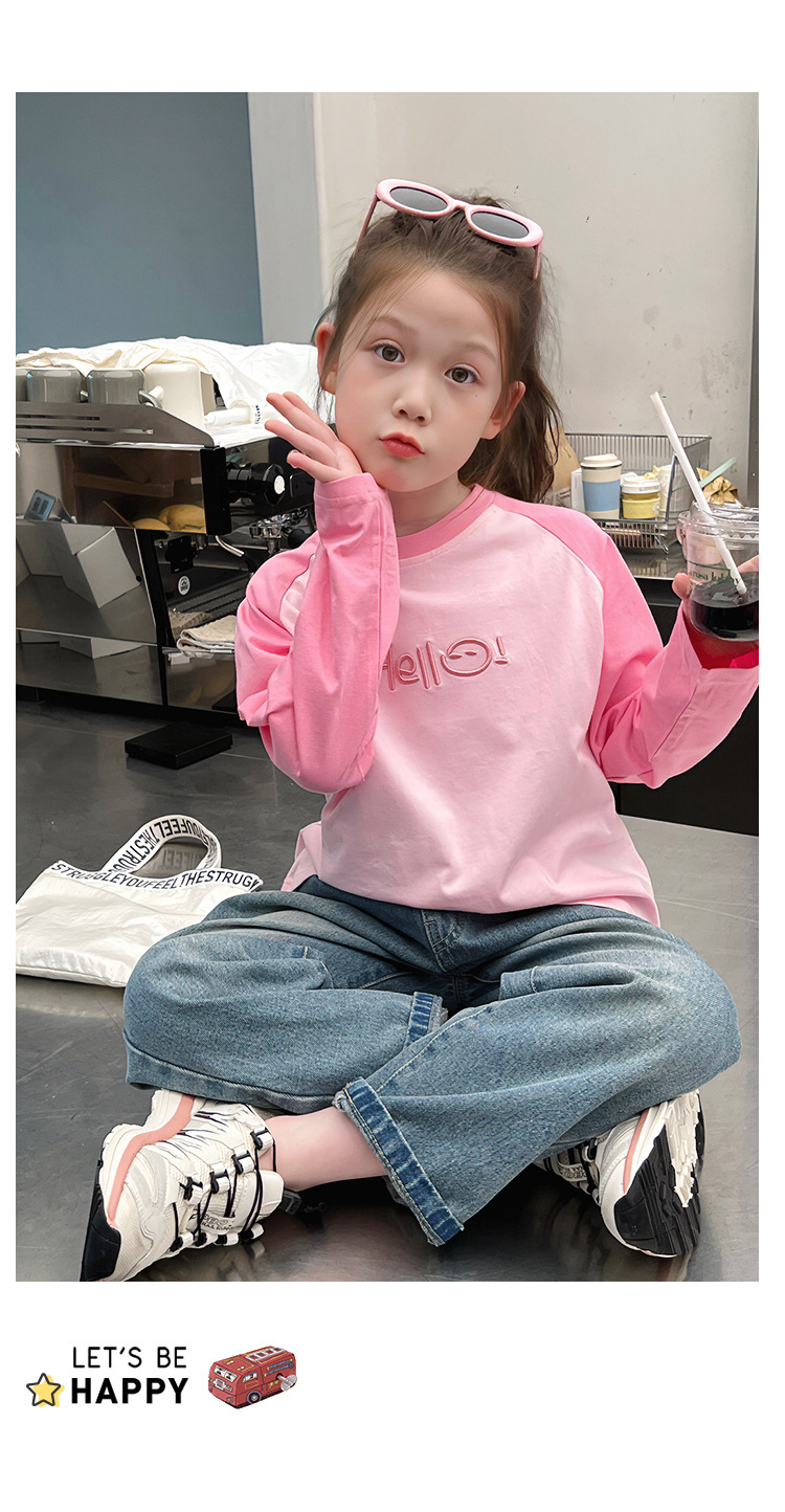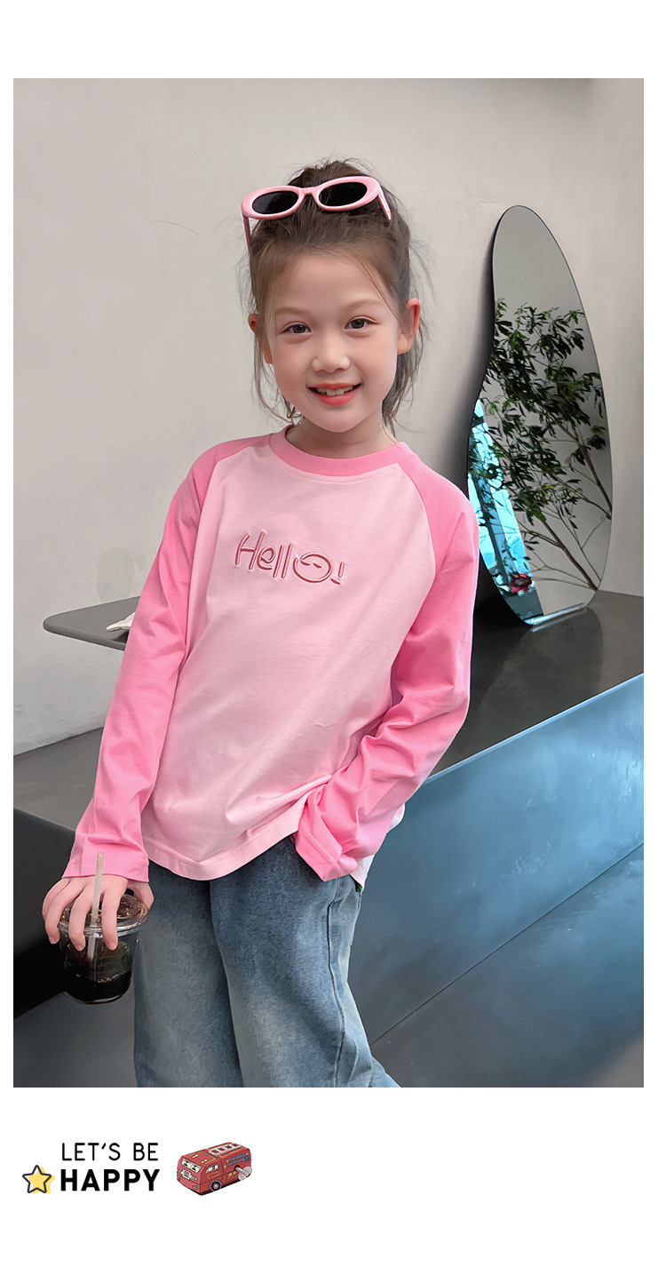 퓨어 코튼 긴팔 티셔츠 걸스 라글란 슬리브 탑 어린이 서양식 베이스 셔츠 대형 아동복 2025 봄과 가을 뉴스토어 가기