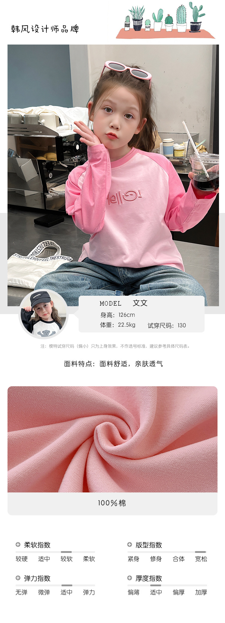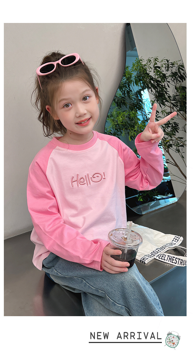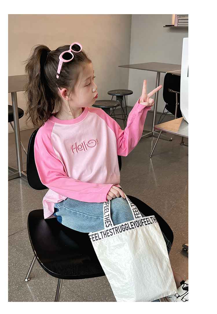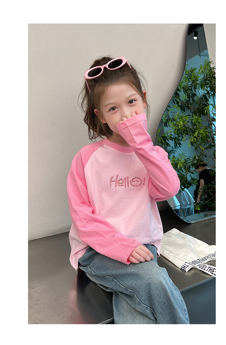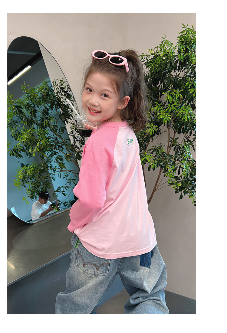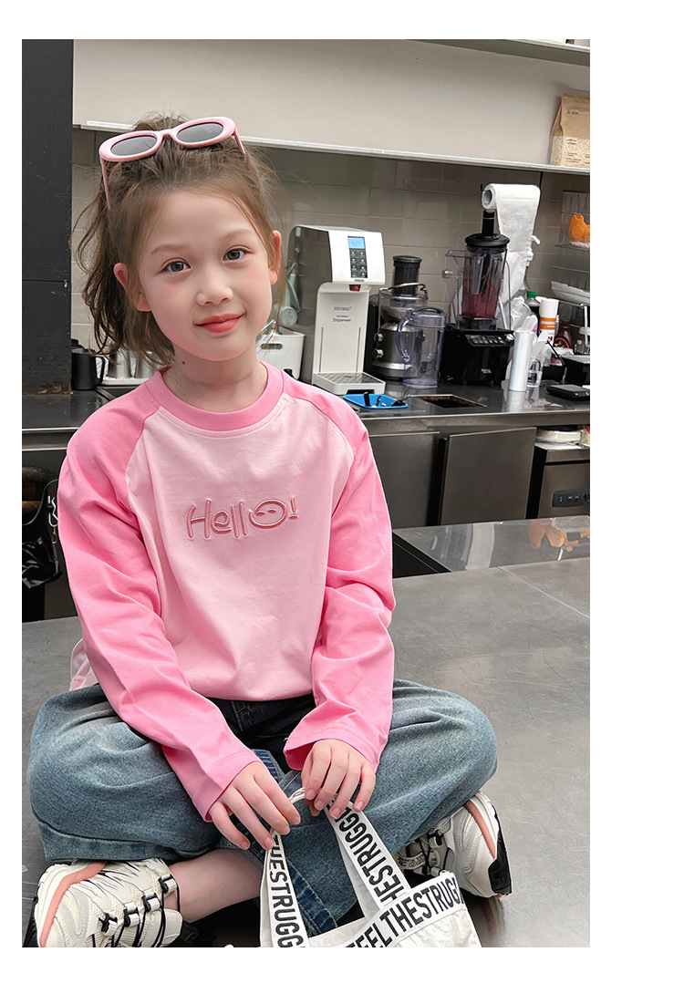 퓨어 코튼 긴팔 티셔츠 걸스 라글란 슬리브 탑 어린이 서양식 베이스 셔츠 대형 아동복 2025 봄과 가을 뉴스토어 가기