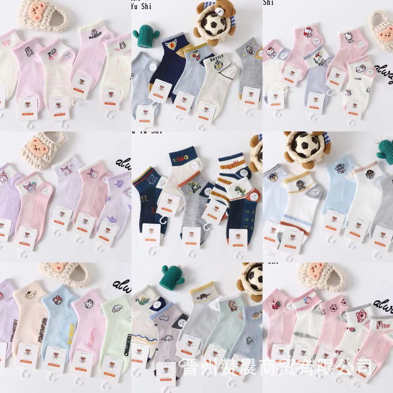 어린이 메쉬 보트 양말 봄과 여름 나무 돌 물고기 어린이 만화 양말 통기성 땀 흡수 스포츠 양말