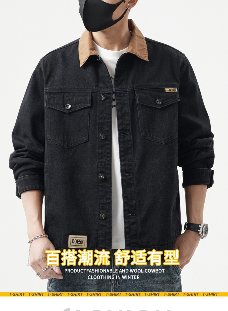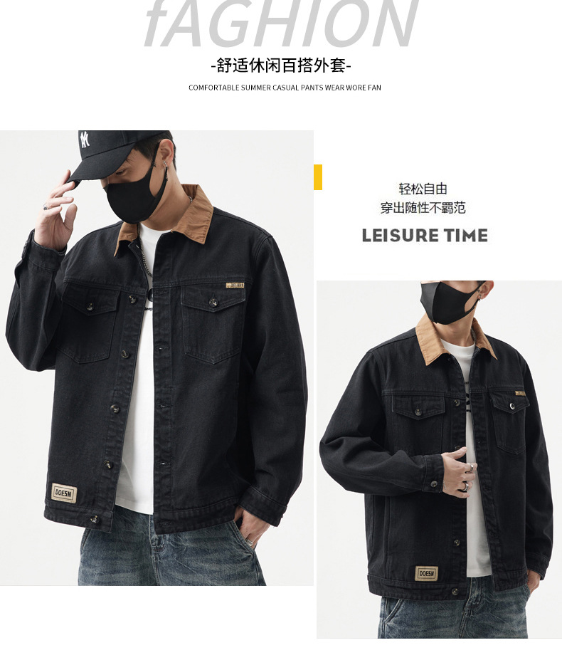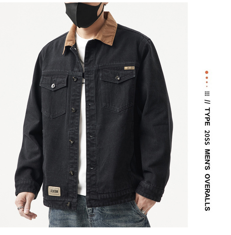 C215 | 플러스 사이즈 남성 봄 새로운 빈티지 컬러 블록 데님 재킷 코트 느슨한 플러스 사이즈 캐주얼 탑스토어 가기
