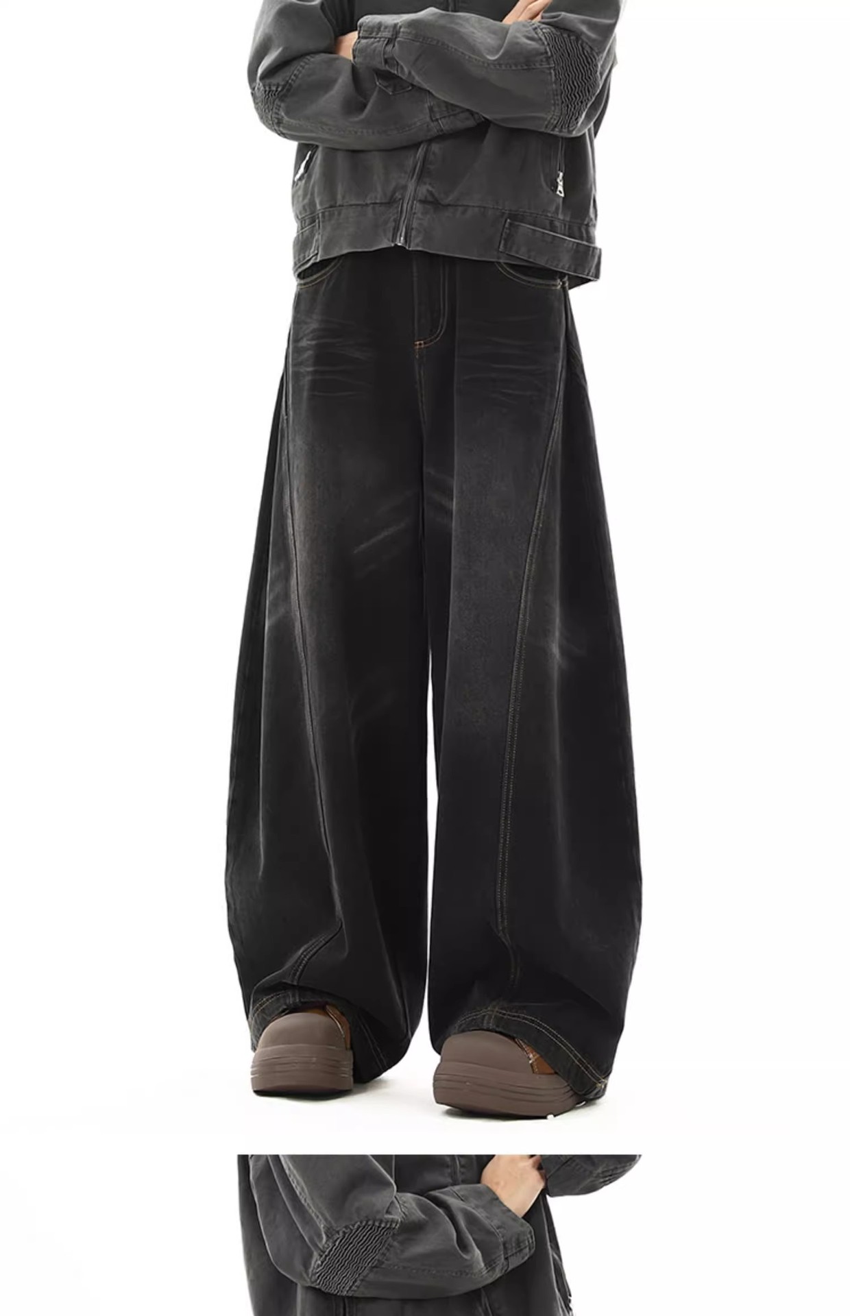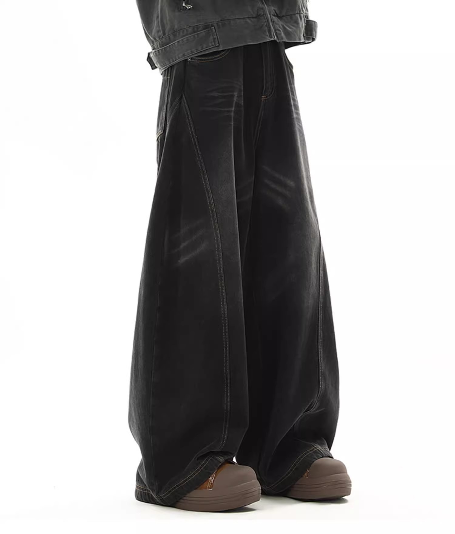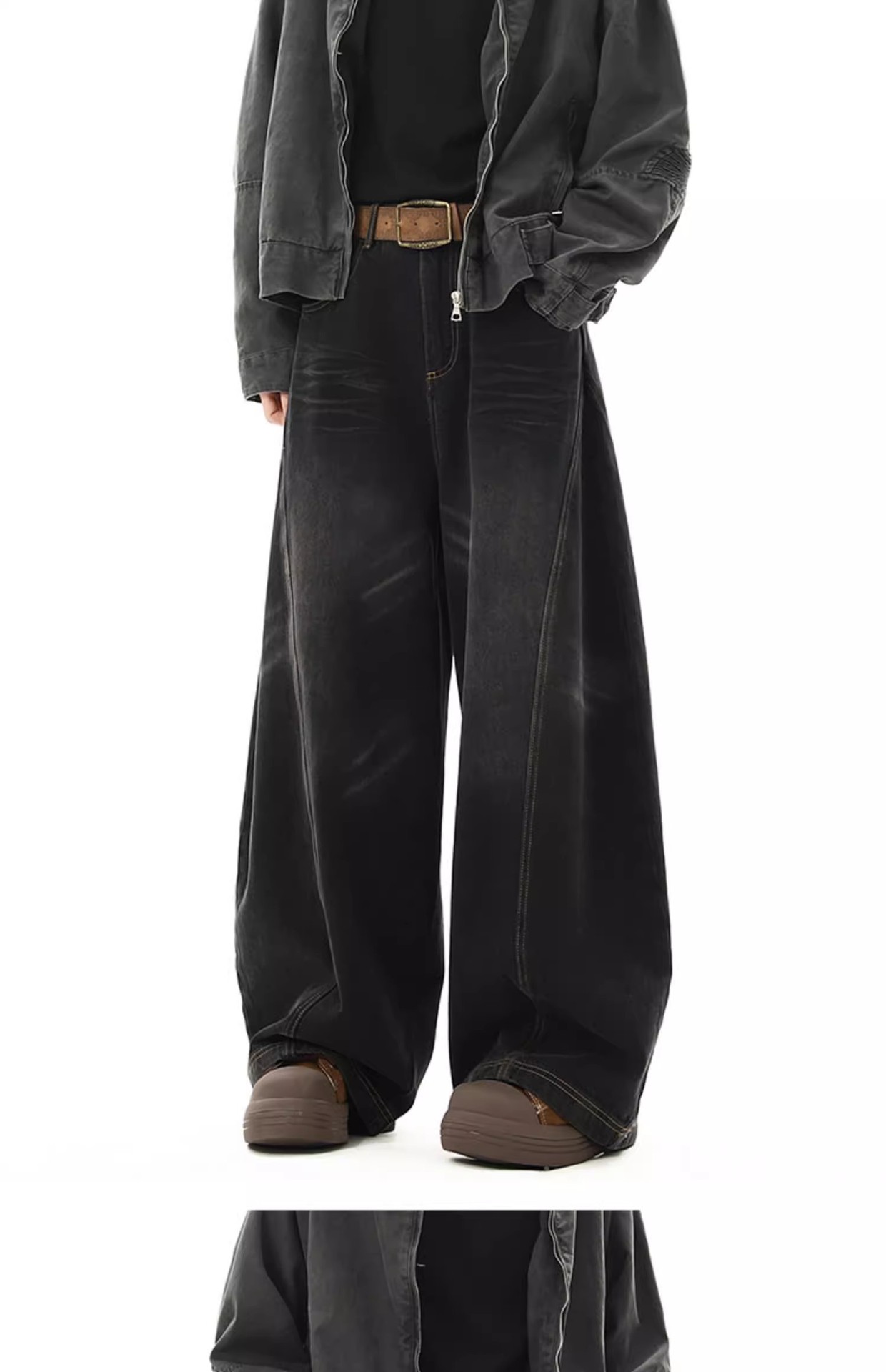 아메리칸 스타일 레트로 고양이 수염 Machete 청바지 남성 하이 스트리트 루즈 디자인 센스 클린 핏 스트레이트 레그 와이드 레그 롱 팬츠스토어 가기