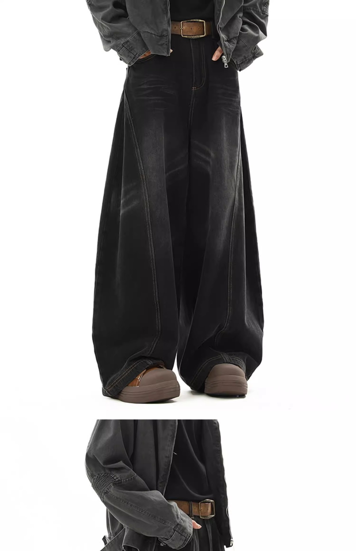 아메리칸 스타일 레트로 고양이 수염 Machete 청바지 남성 하이 스트리트 루즈 디자인 센스 클린 핏 스트레이트 레그 와이드 레그 롱 팬츠