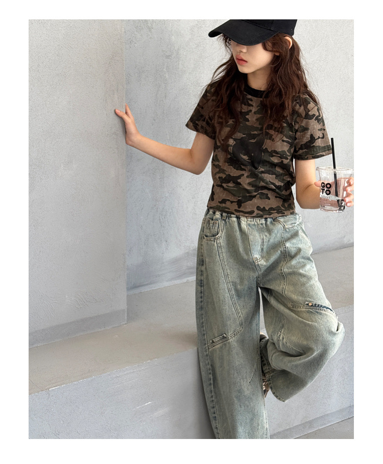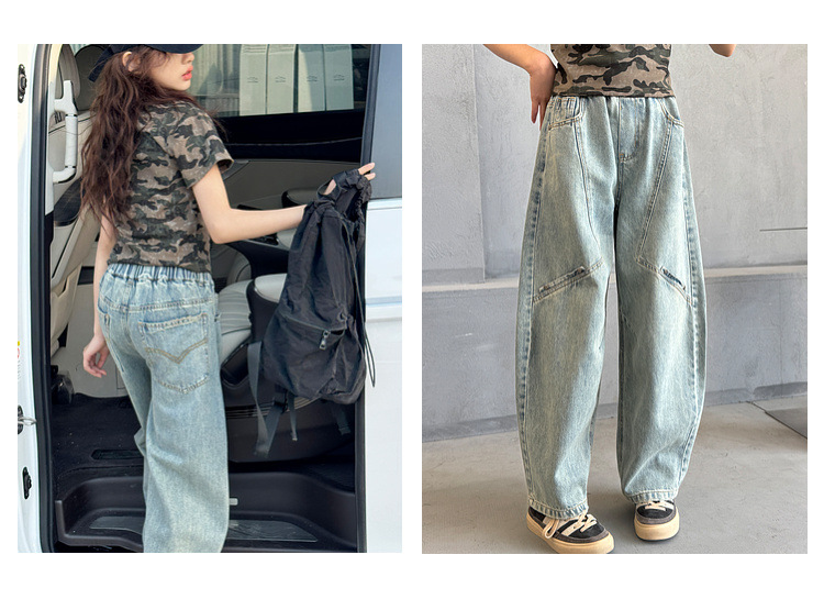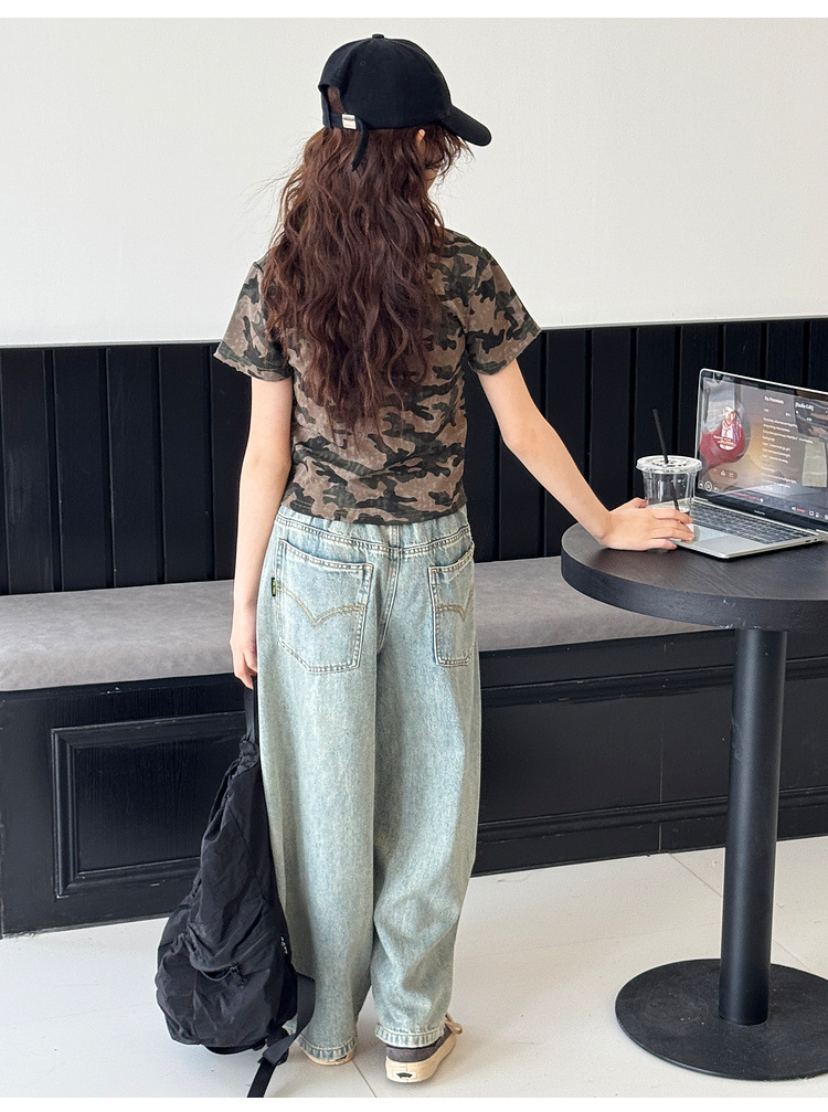 소녀 청바지 봄 2025 새로운 어린이 느슨한 세탁 데님 마체 테 바지 큰 어린이 올 매치 캐주얼 바지스토어 가기