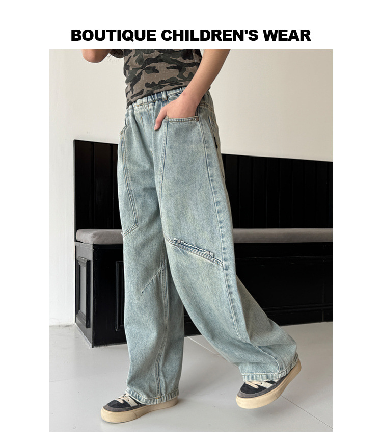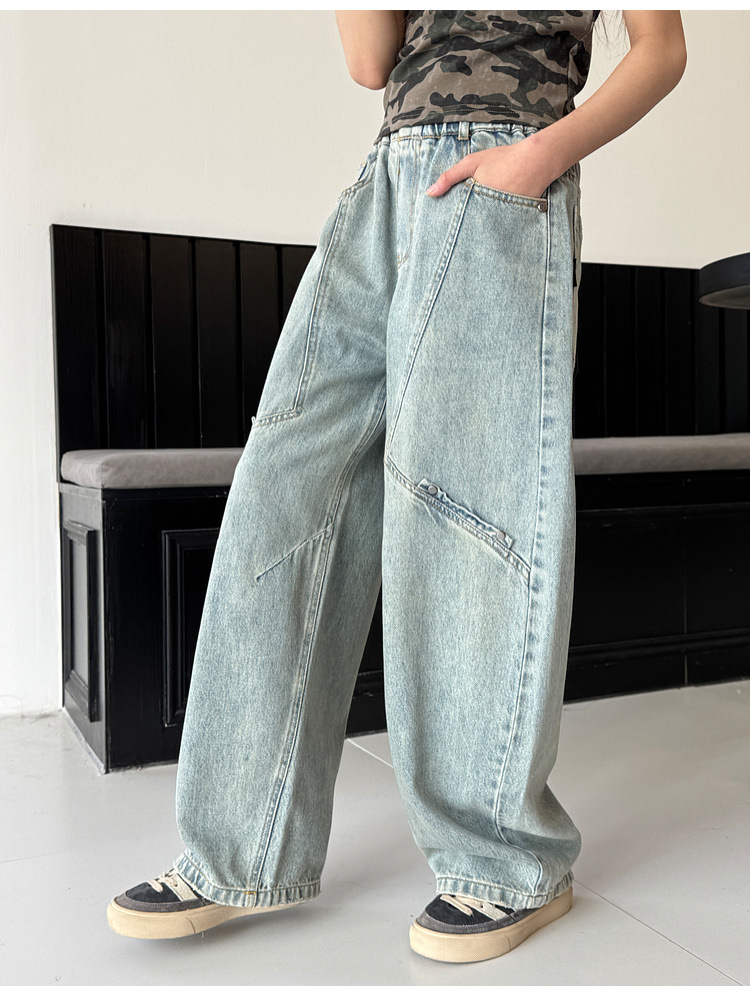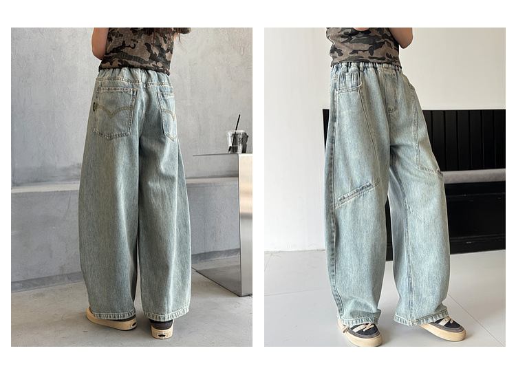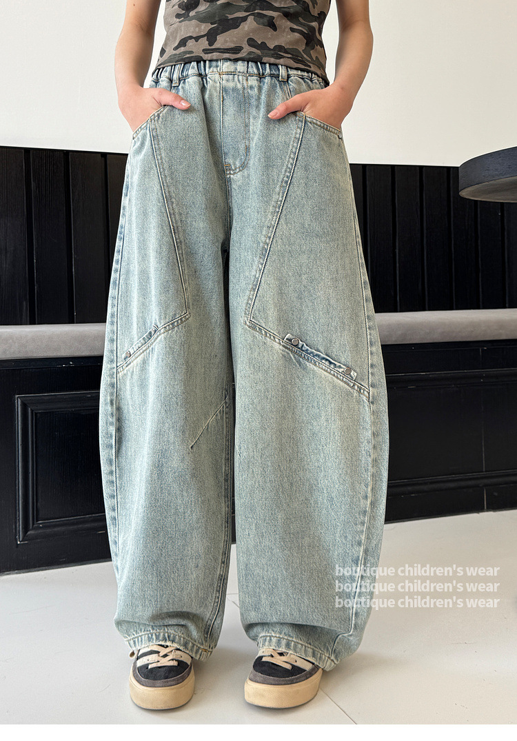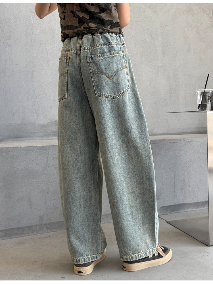 소녀 청바지 봄 2025 새로운 어린이 느슨한 세탁 데님 마체 테 바지 큰 어린이 올 매치 캐주얼 바지