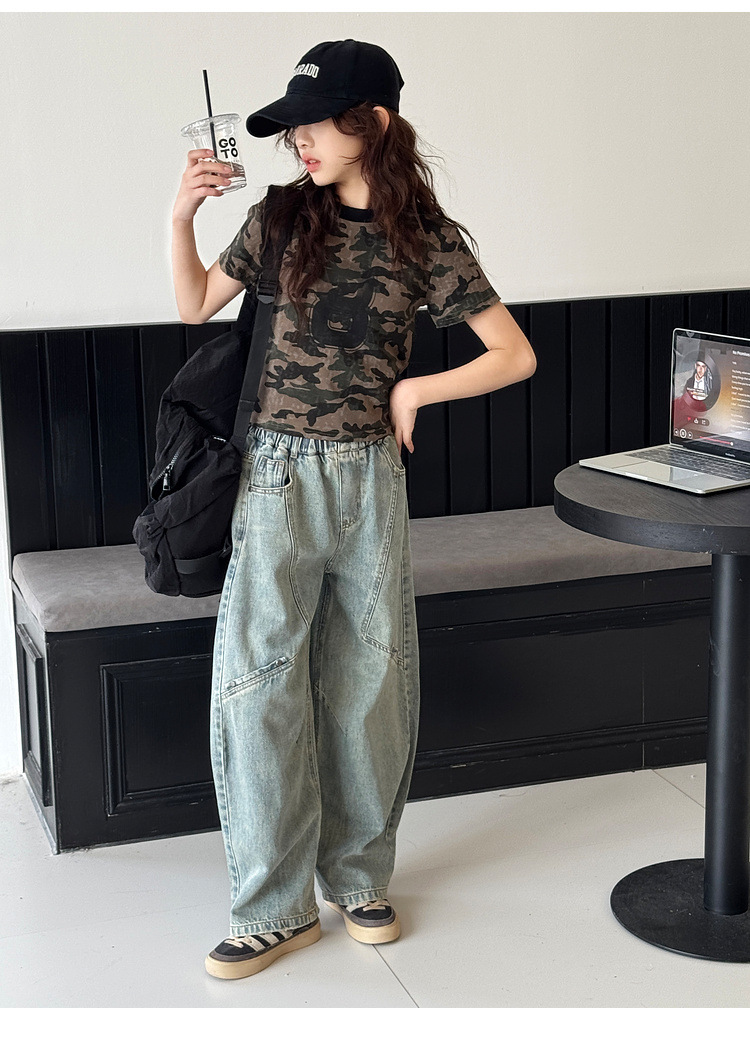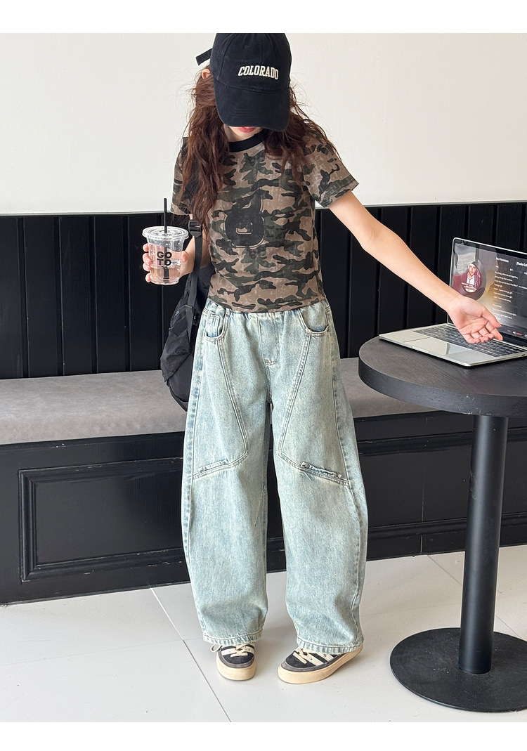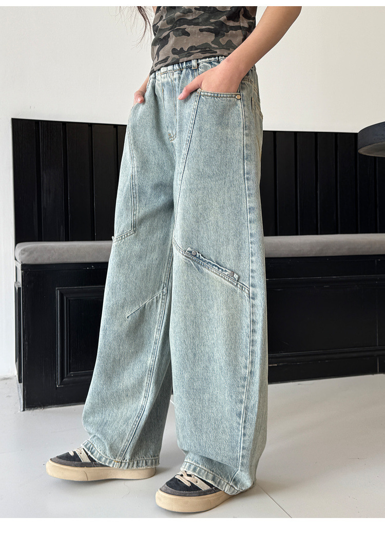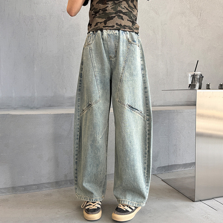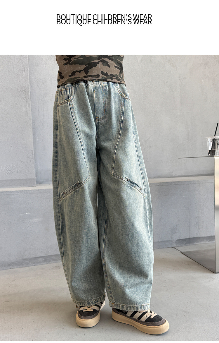 소녀 청바지 봄 2025 새로운 어린이 느슨한 세탁 데님 마체 테 바지 큰 어린이 올 매치 캐주얼 바지