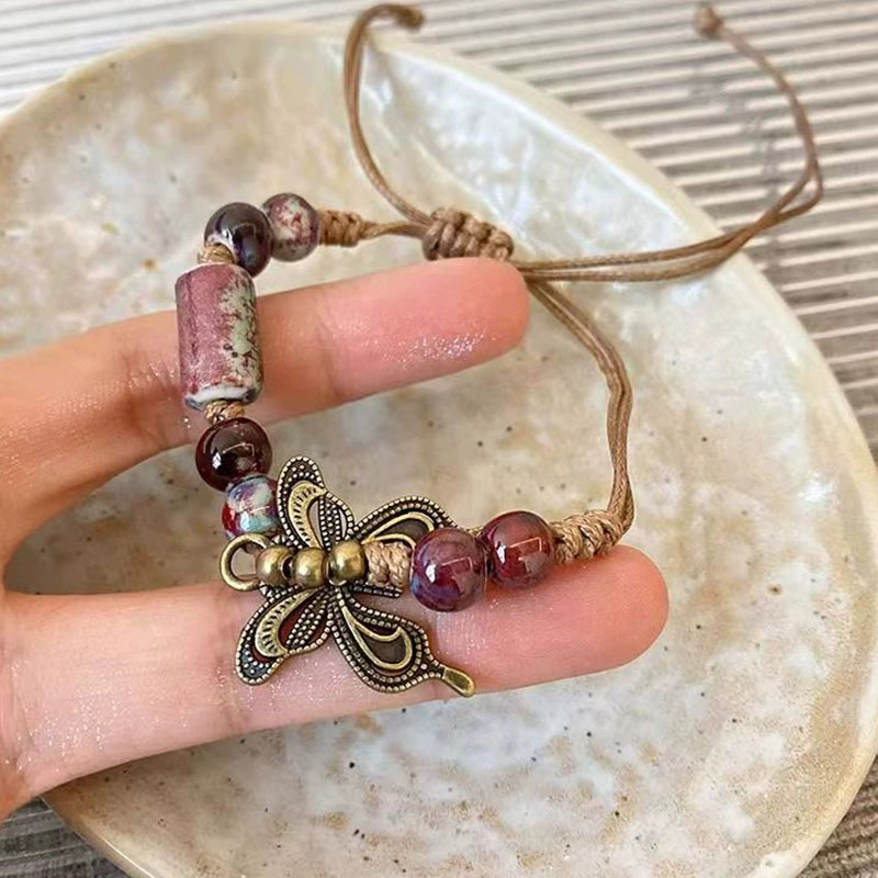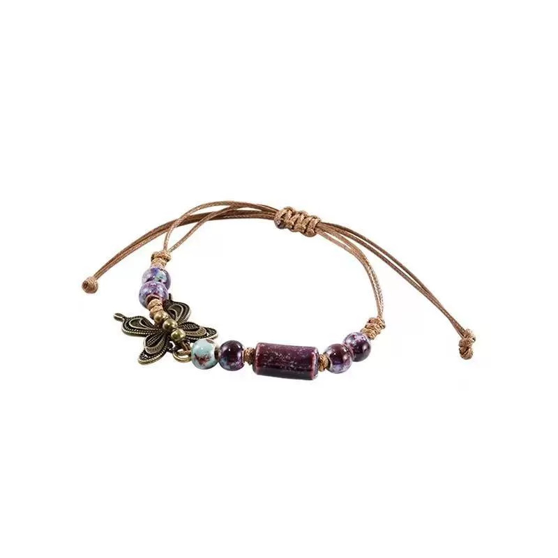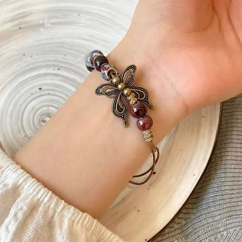 티베트 민족 스타일 나비 구슬 팔찌 여성의 새로운 중국 스타일 복고풍 세라믹 팔찌 조커 손 보석 도매
