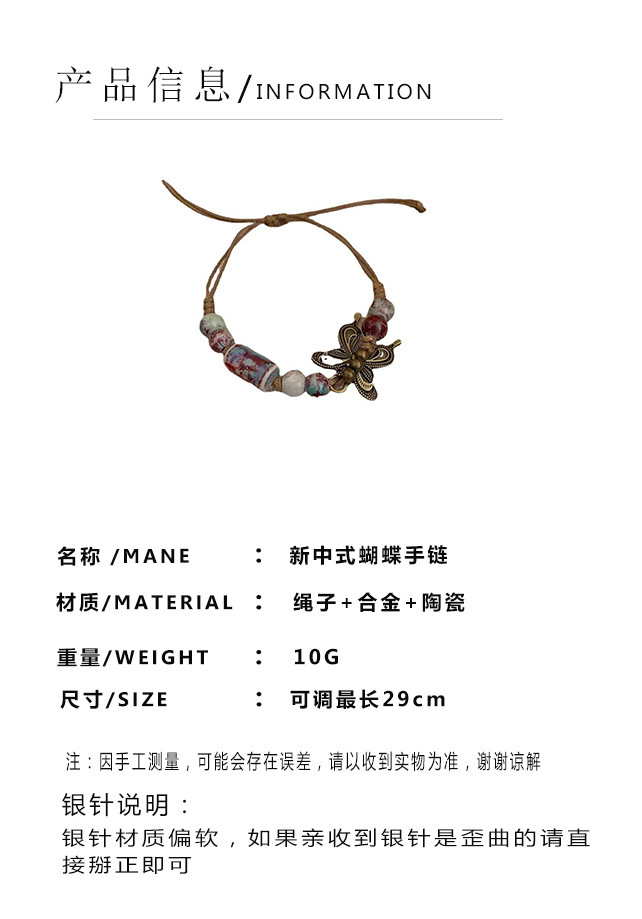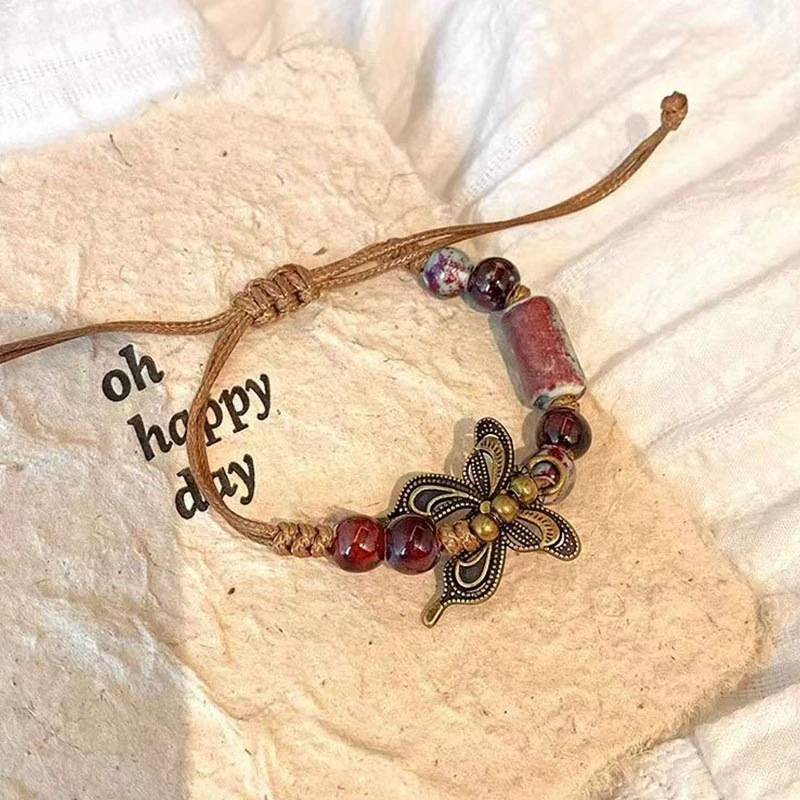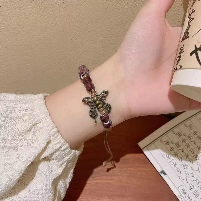 티베트 민족 스타일 나비 구슬 팔찌 여성의 새로운 중국 스타일 복고풍 세라믹 팔찌 조커 손 보석 도매스토어 가기