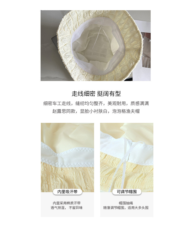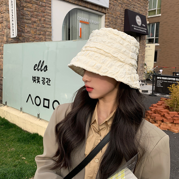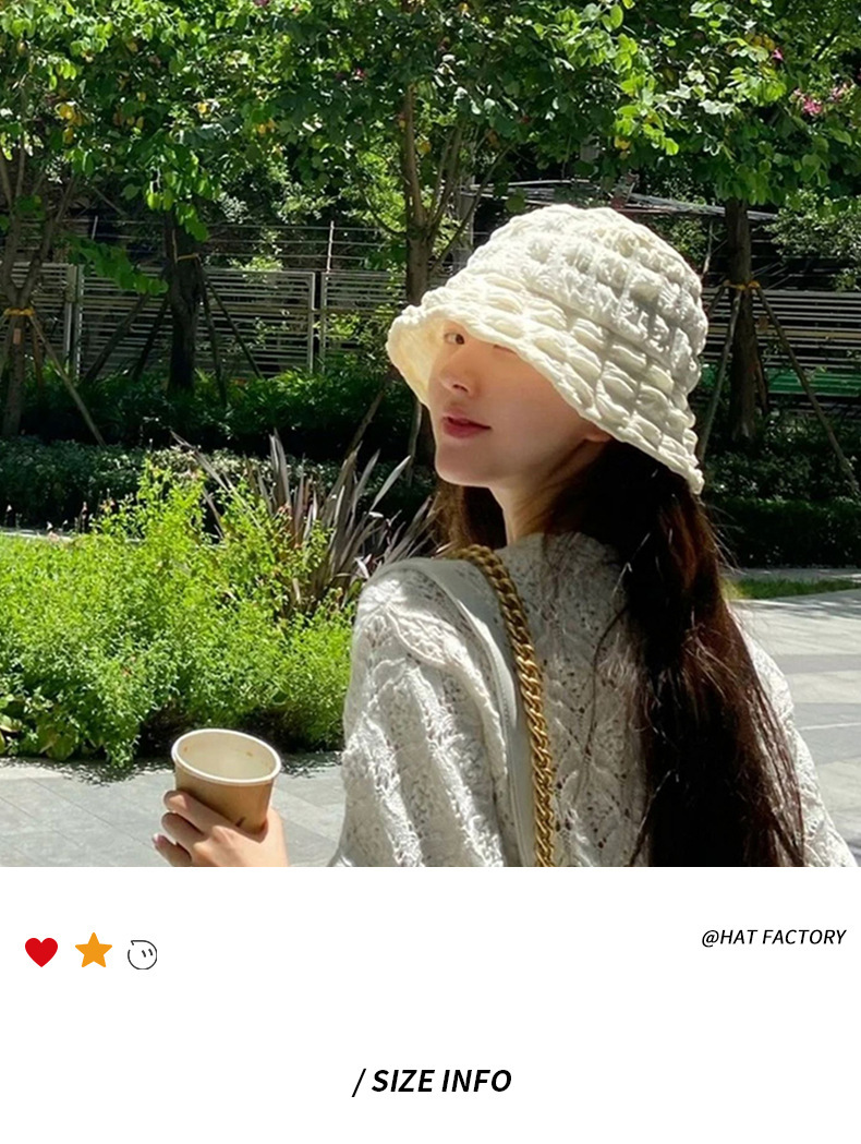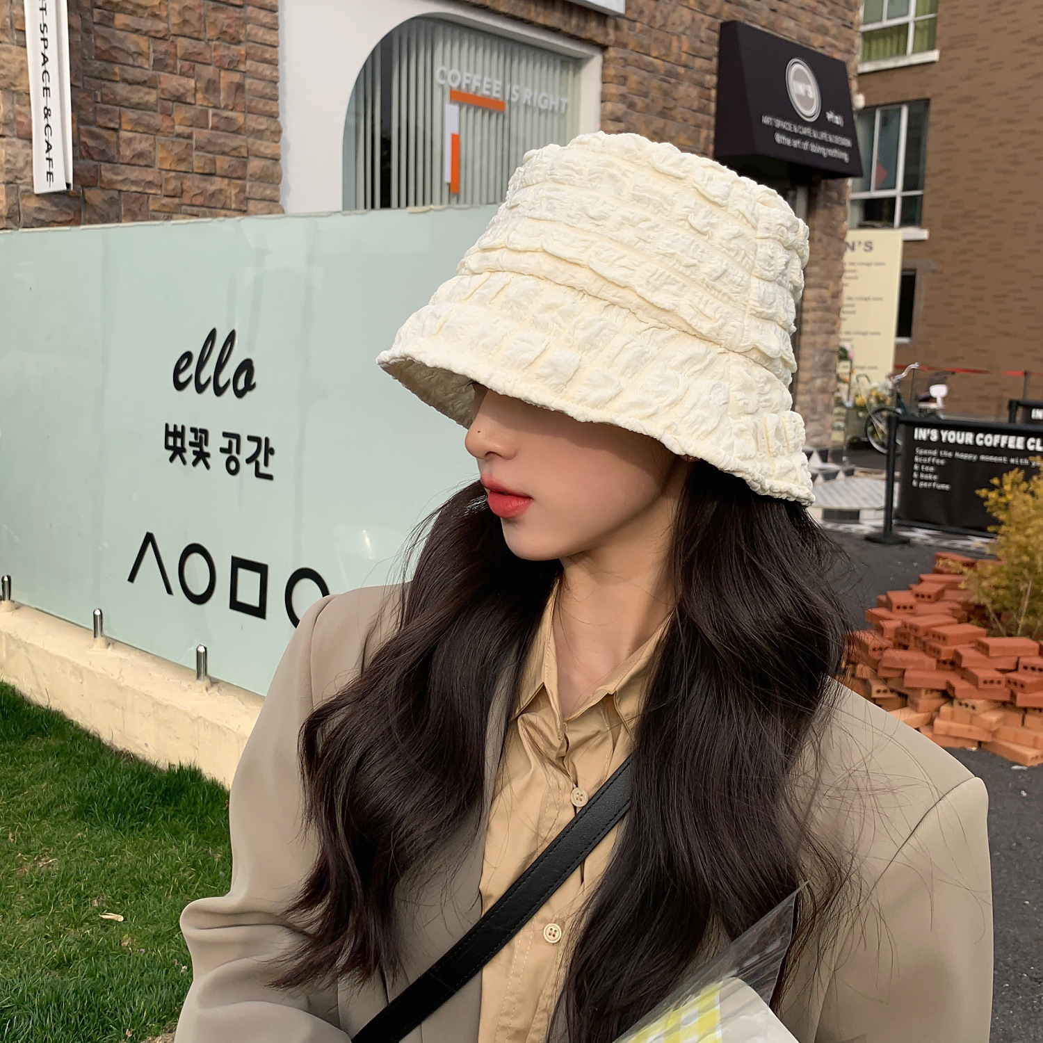Ruth Gentle Puff Fisherman 모자 봄과 가을 얇은 주름 Seersucker 분지 모자 양산 양동이 모자스토어 가기