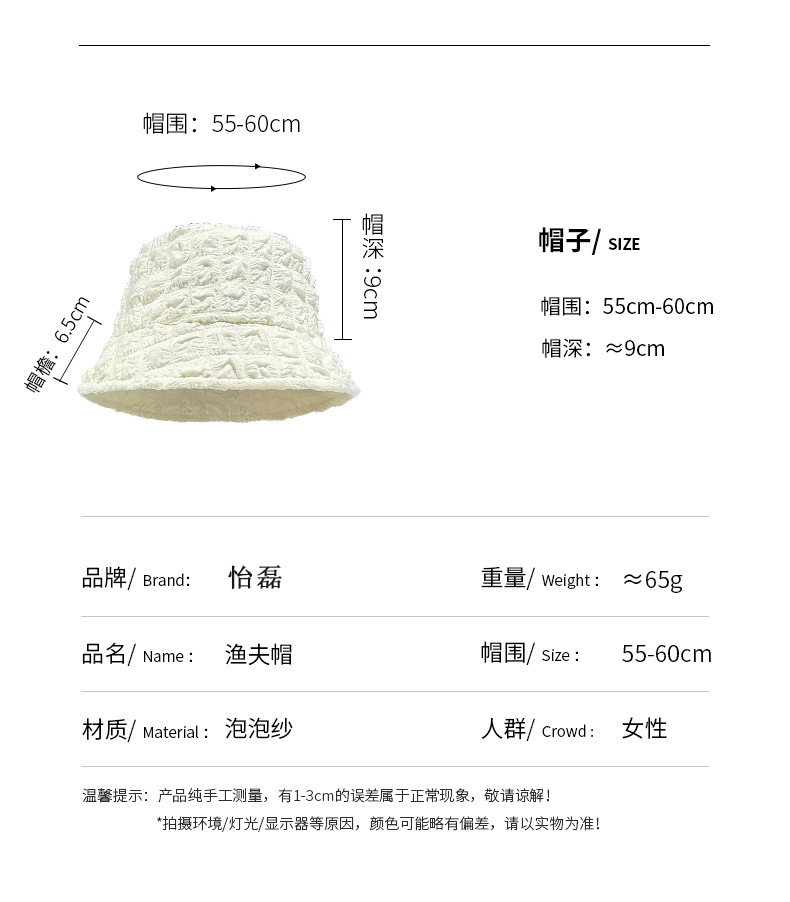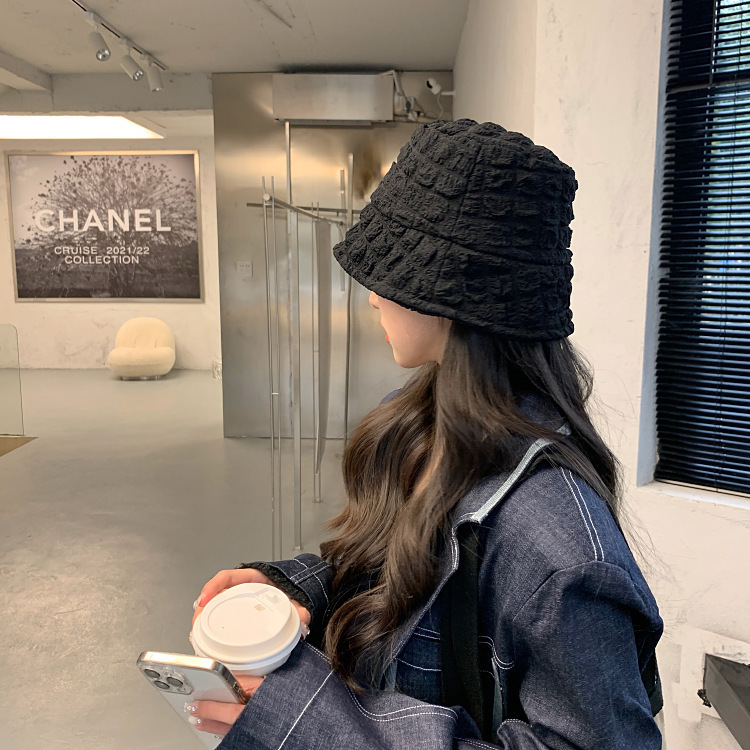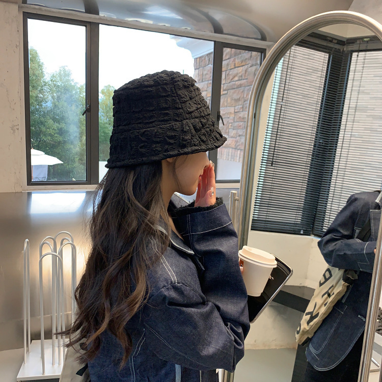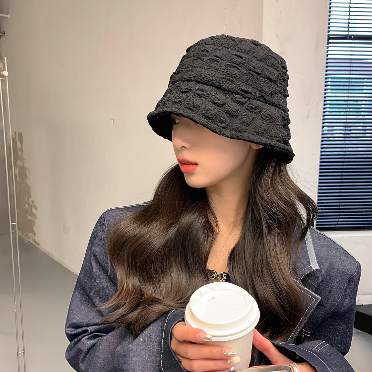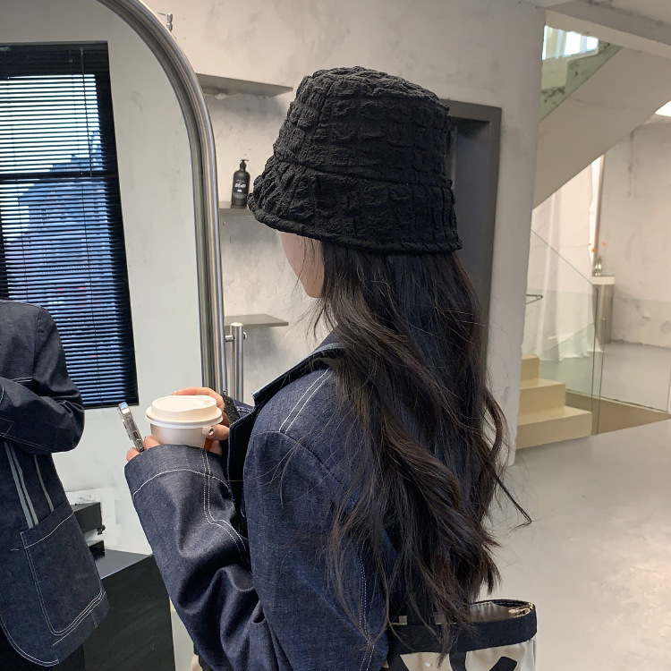 Ruth Gentle Puff Fisherman 모자 봄과 가을 얇은 주름 Seersucker 분지 모자 양산 양동이 모자스토어 가기