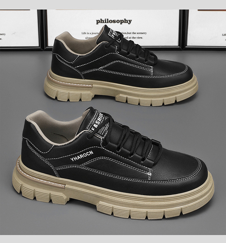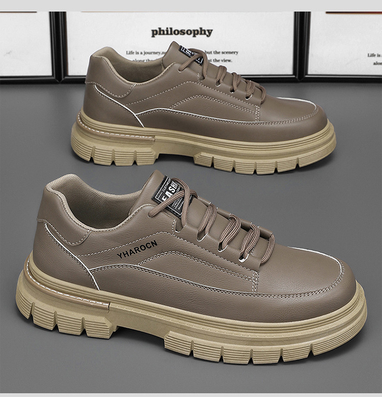 2025 봄 남성 신발 새로운 통기성 작업 신발 남성 유행 다목적 두꺼운 밑창 운동화 캐주얼 운동화 가죽 신발스토어 가기