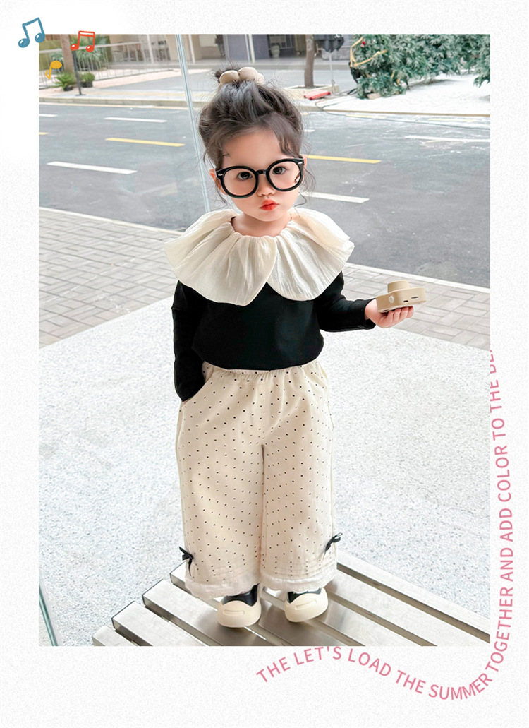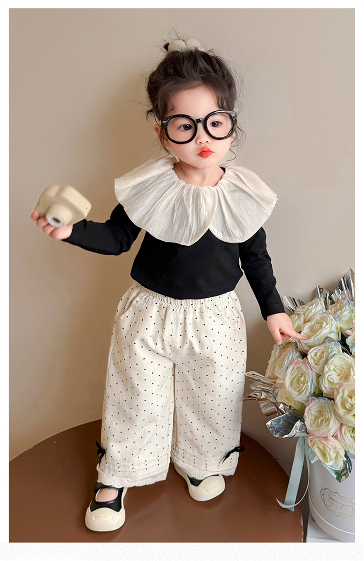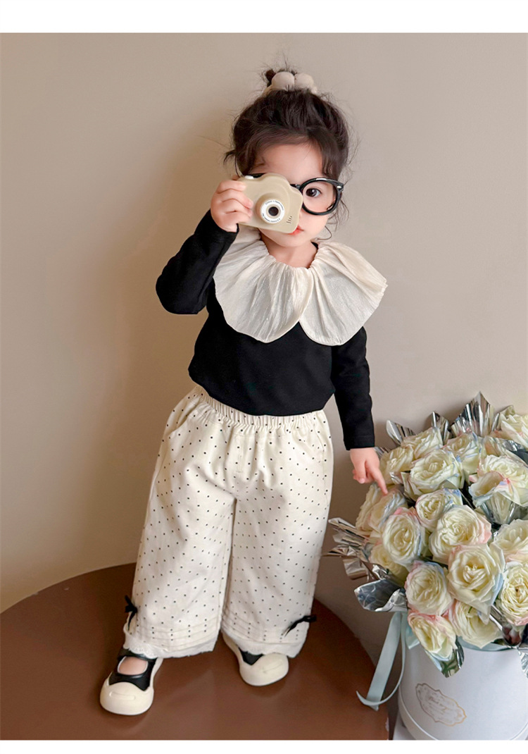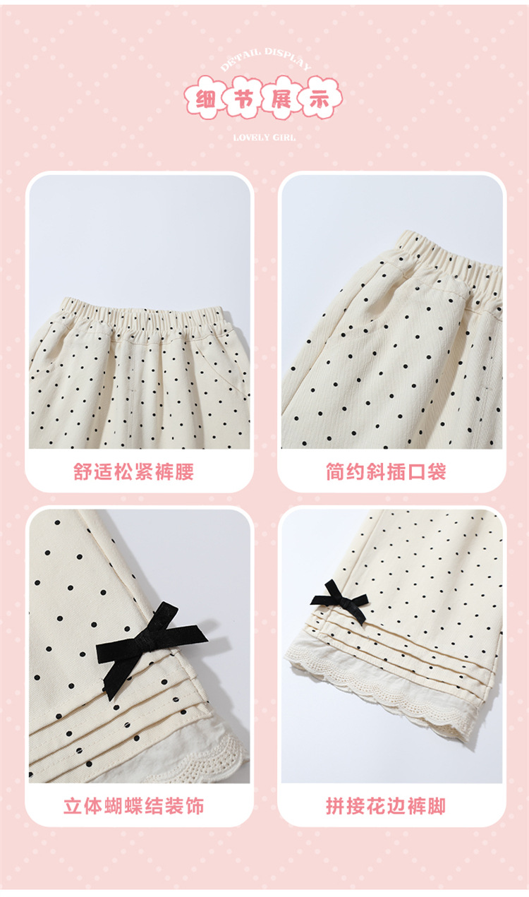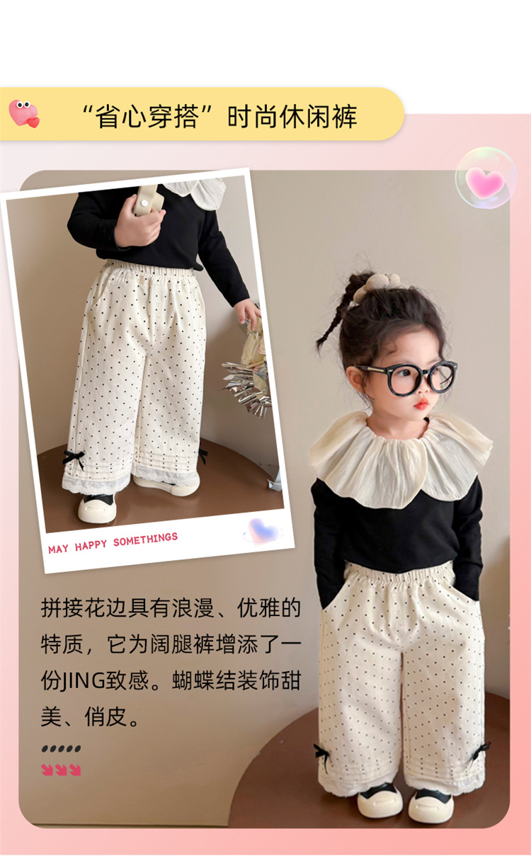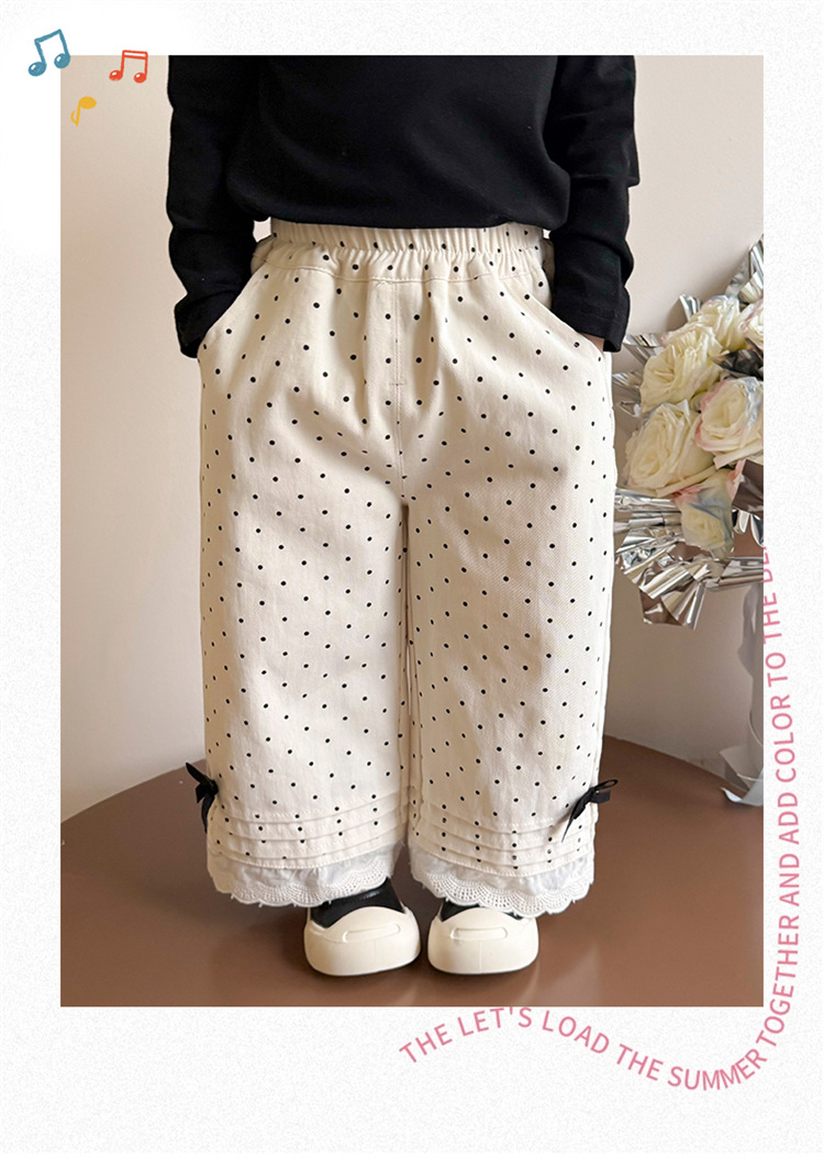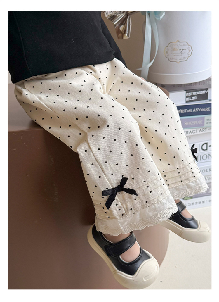 소녀 바지 2025 새로운 봄과 가을 스트레이트 다리 바지 어린이 도트 보우 발 레이스 와이드 다리 캐주얼 바지스토어 가기