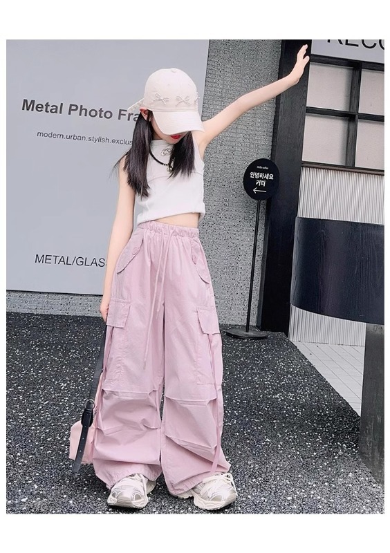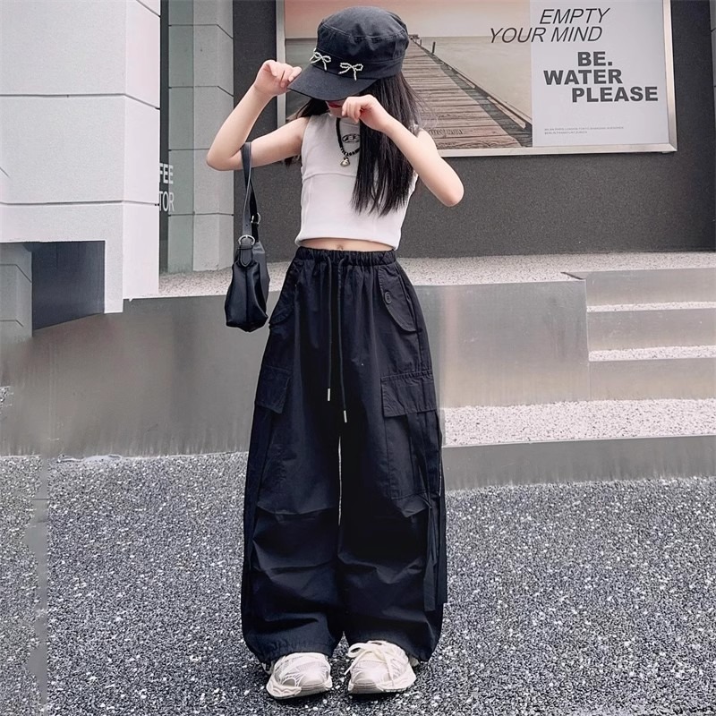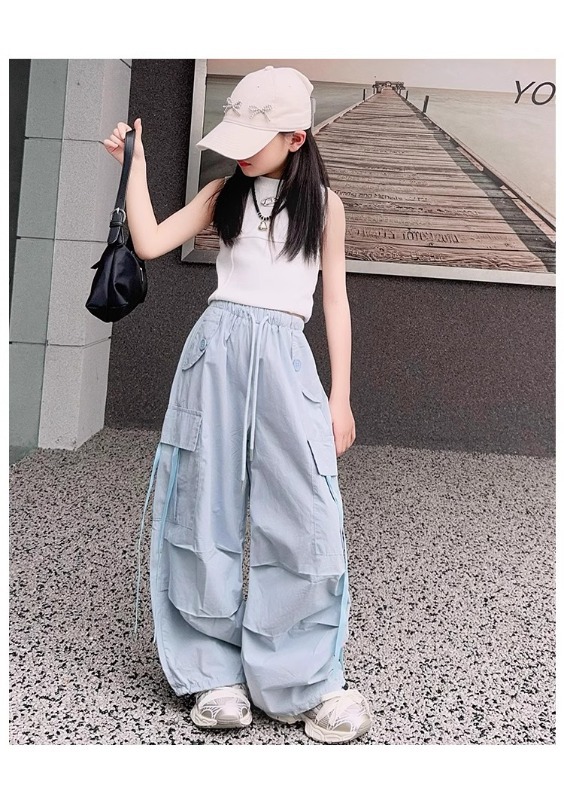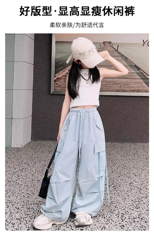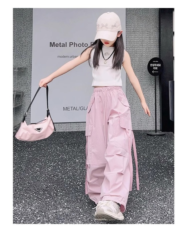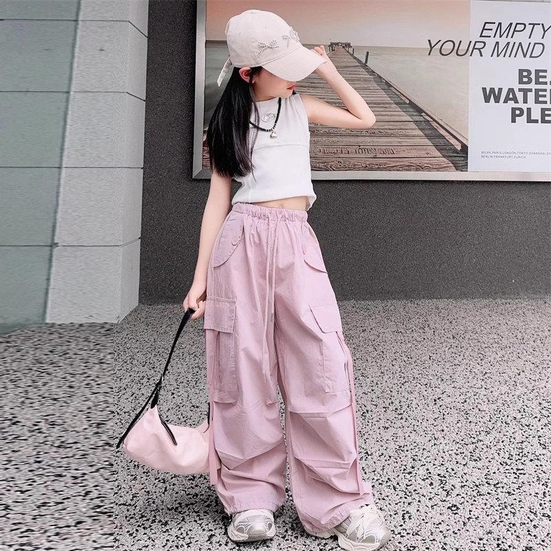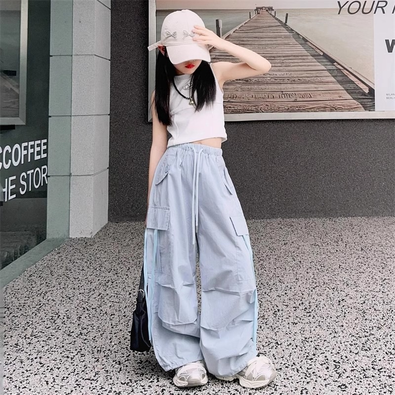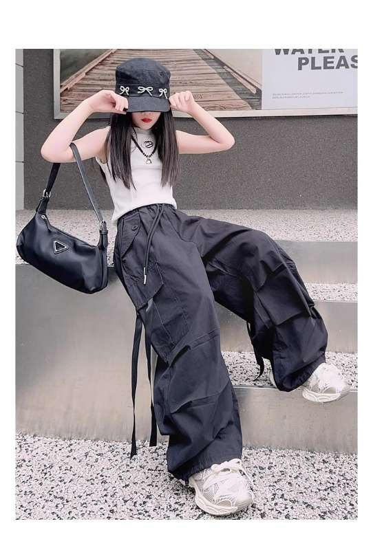 소녀 여름 작업복 달콤한 쿨 프라이드 스트리트 소녀 패션 느슨한 넓은 다리 바지 한국 스타일 큰 소년 얇은 봄과 가을 바지