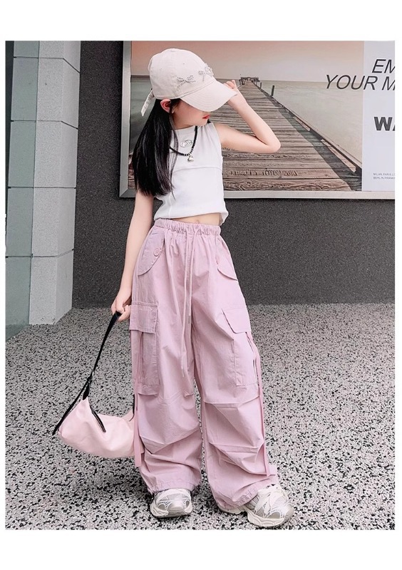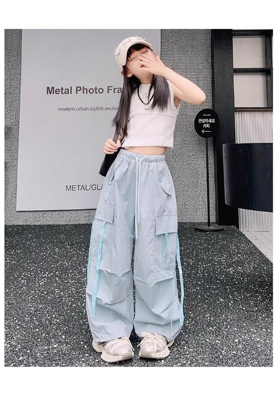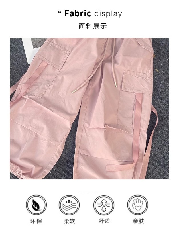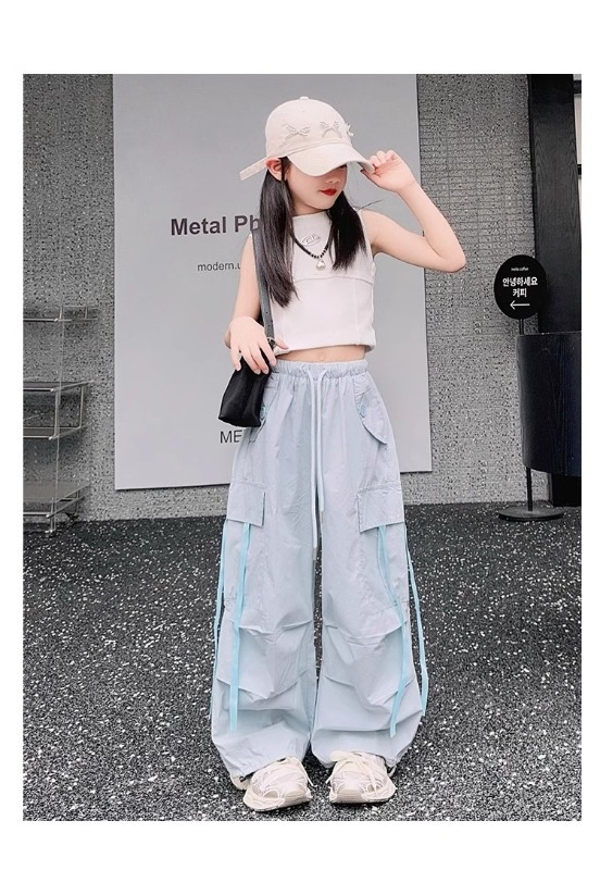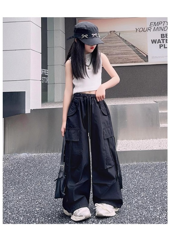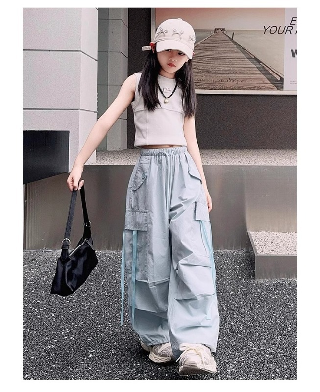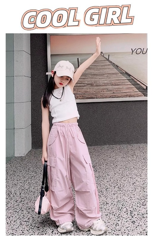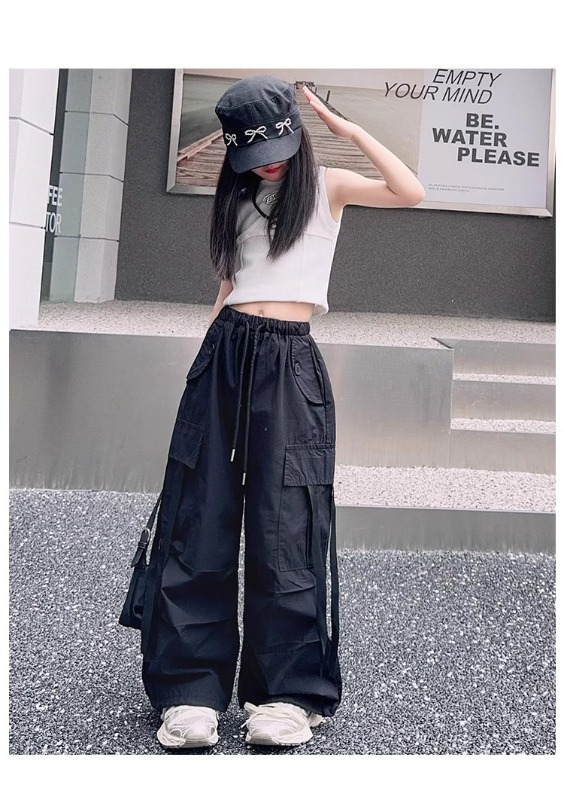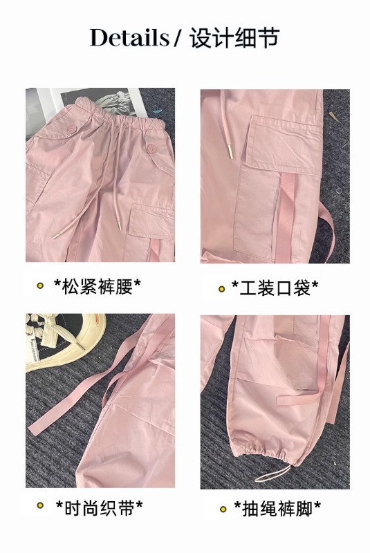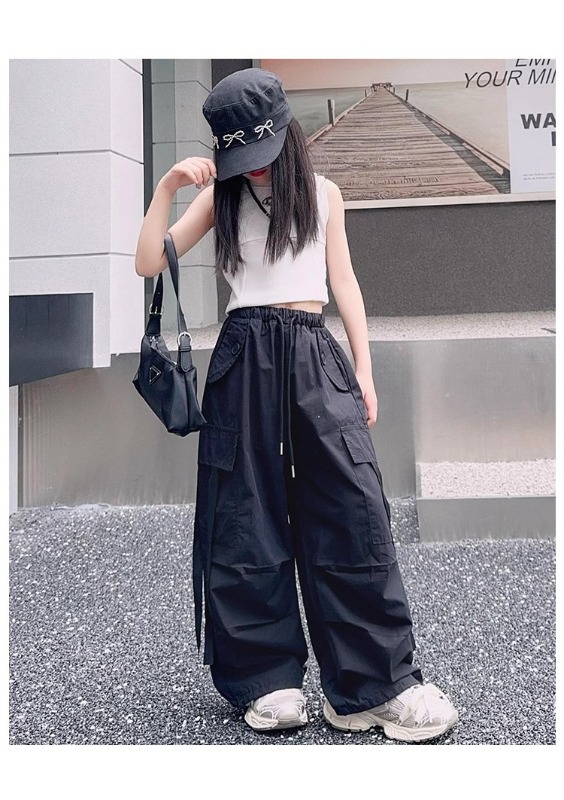소녀 여름 작업복 달콤한 쿨 프라이드 스트리트 소녀 패션 느슨한 넓은 다리 바지 한국 스타일 큰 소년 얇은 봄과 가을 바지