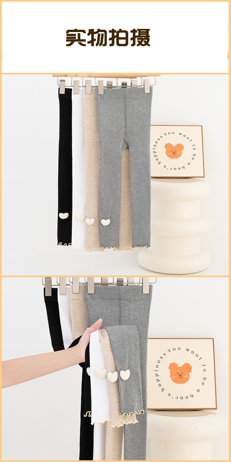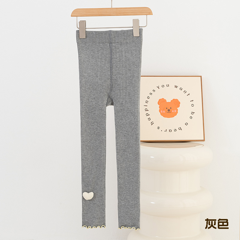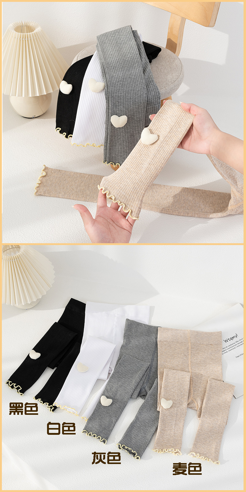 여아용 봄가을 신축성 있는 팬티스타킹 아기 어린이용 외출용 긴바지 9부 레깅스 다용도 하트 무늬