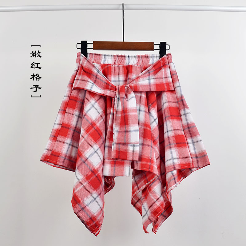 핫 스타일 격자 무늬 스커트 2024 대학 스타일 격자 무늬 불규칙한 댄스 스커트 캐주얼 학생 4 코너 댄싱 새로운 스타일스토어 가기