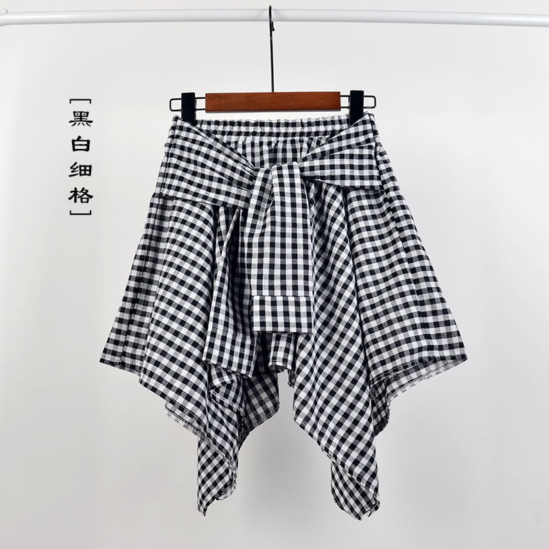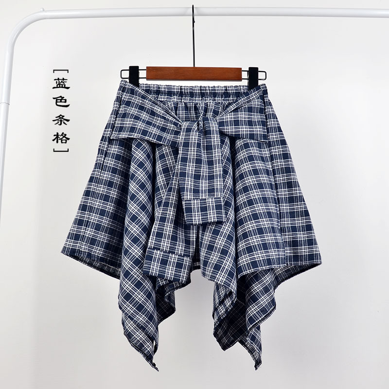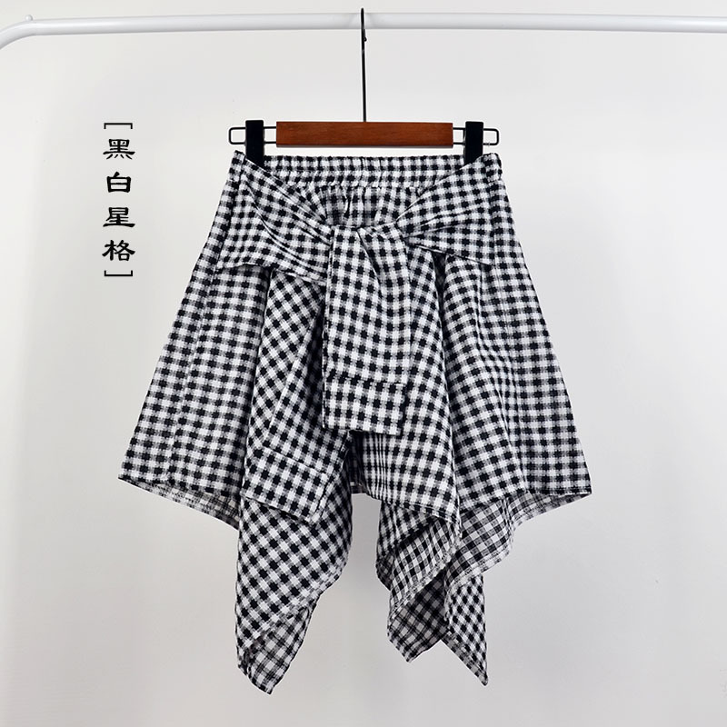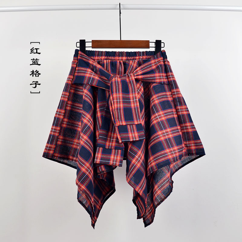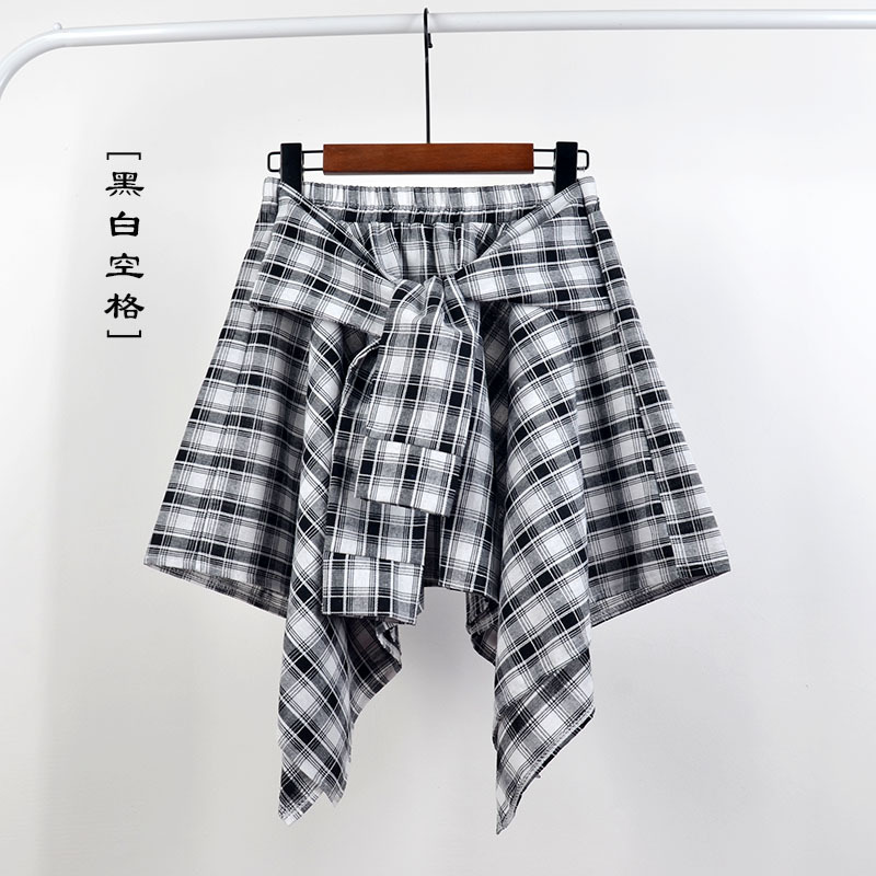 핫 스타일 격자 무늬 스커트 2024 대학 스타일 격자 무늬 불규칙한 댄스 스커트 캐주얼 학생 4 코너 댄싱 새로운 스타일