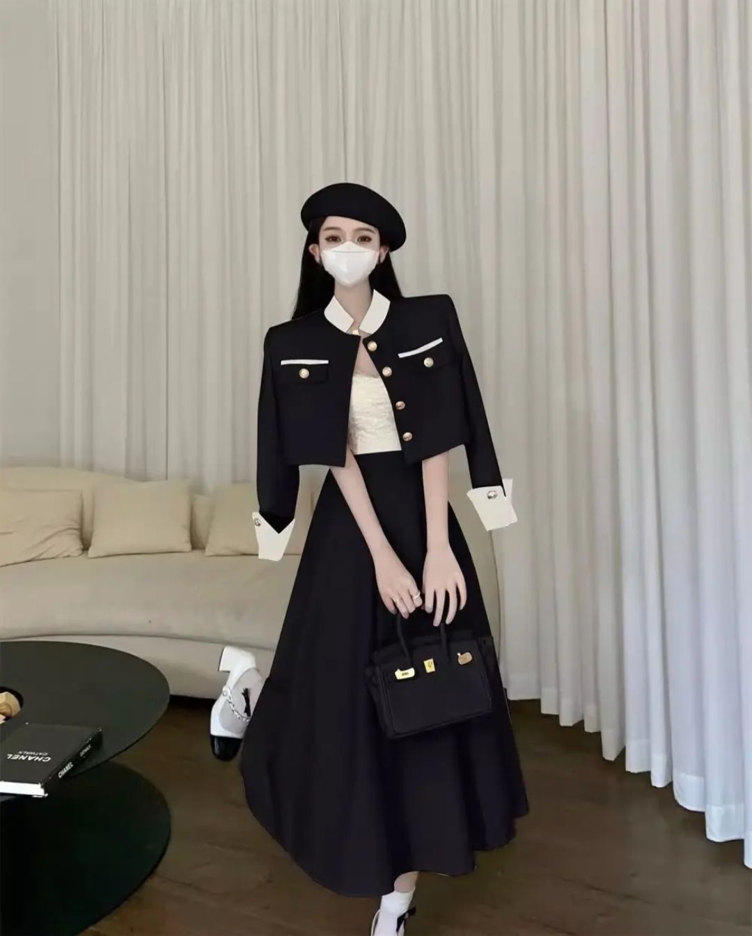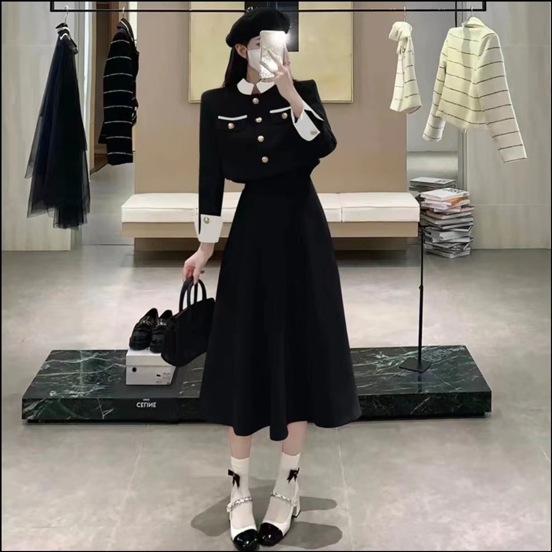 2025 새로운 봄과 가을 명암 칼라 짧은 외부 착용 작은 샤넬 스타일 세트 원피스 투피스 우아한 성숙한 왕실 자매스토어 가기