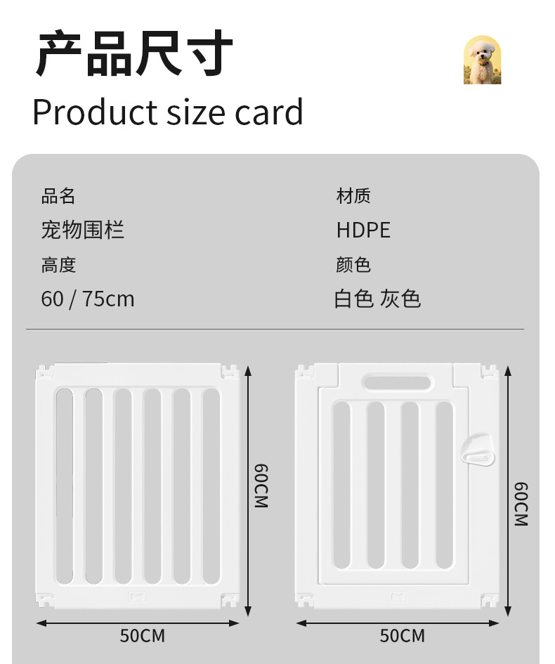 간단한 회색 흰색 애완 동물 울타리 높은 60cm 강아지 울타리 실내 가구 작은 개 울타리 발코니 개 케이지스토어 가기