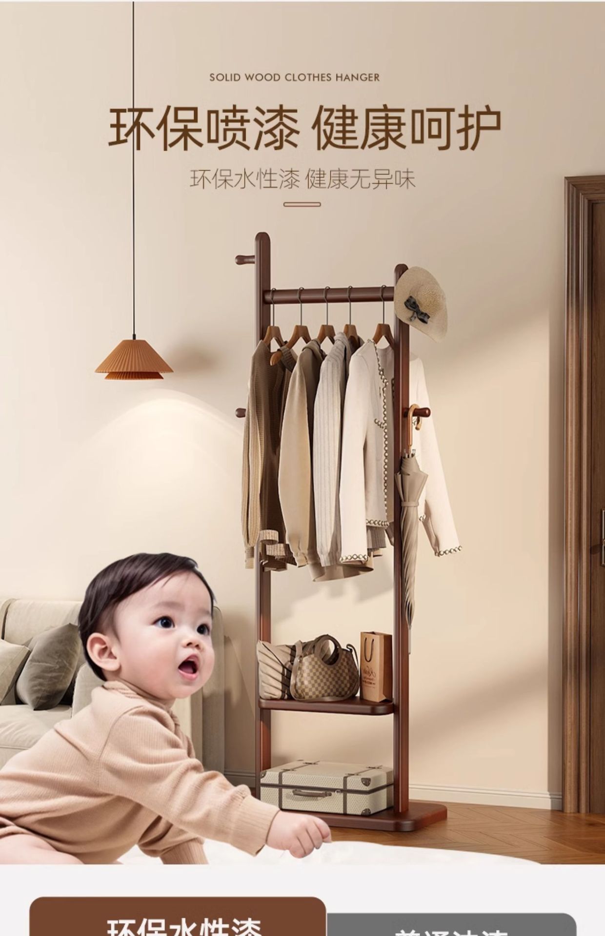 다기능 단단한 나무 옷걸이, 가정용 바닥 옷걸이, 간단한 조립, 이동식 소형 아파트 보관 유물스토어 가기