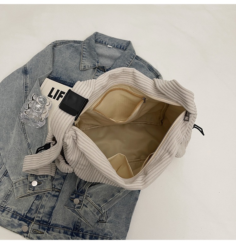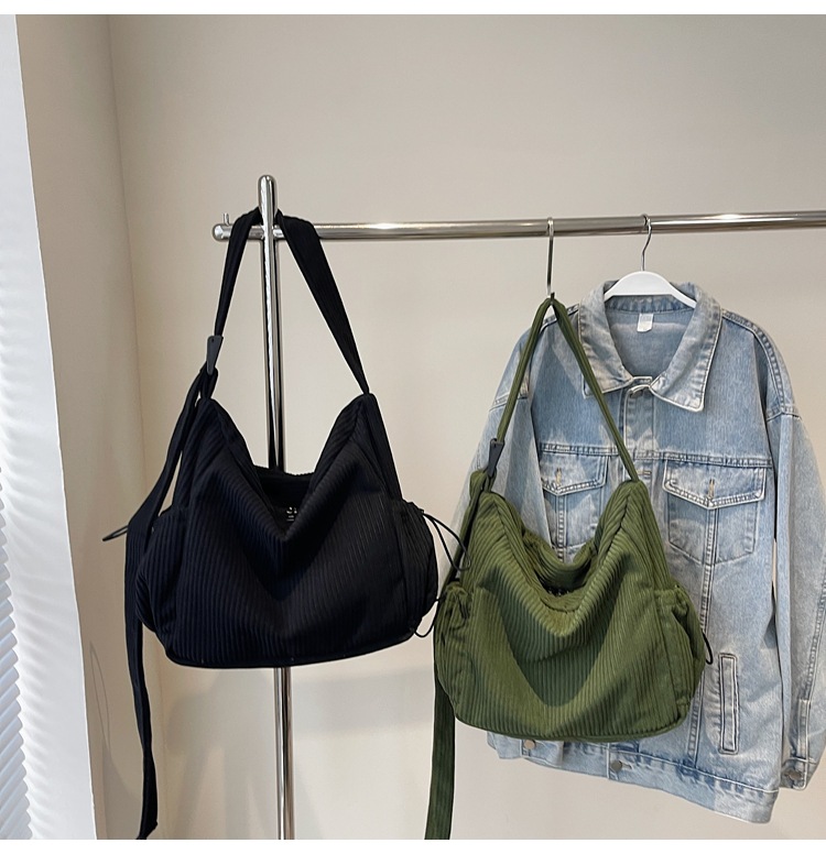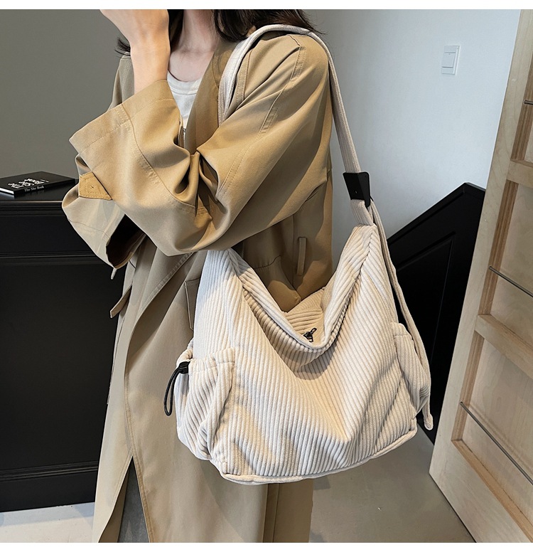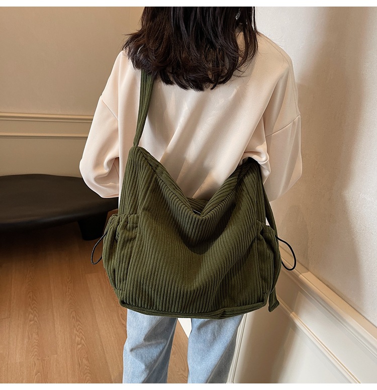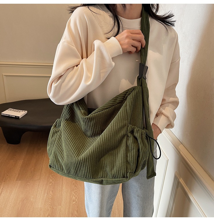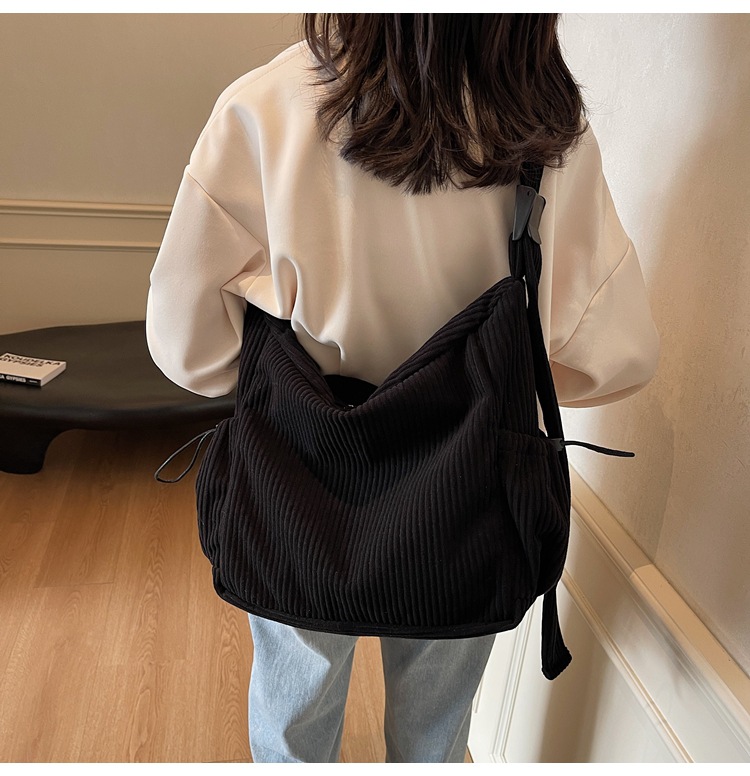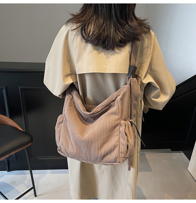 코듀로이 토트 백 여성 2024 겨울 새 한국 스타일 간단한 벨벳 크로스 백 대용량 작업 가방
