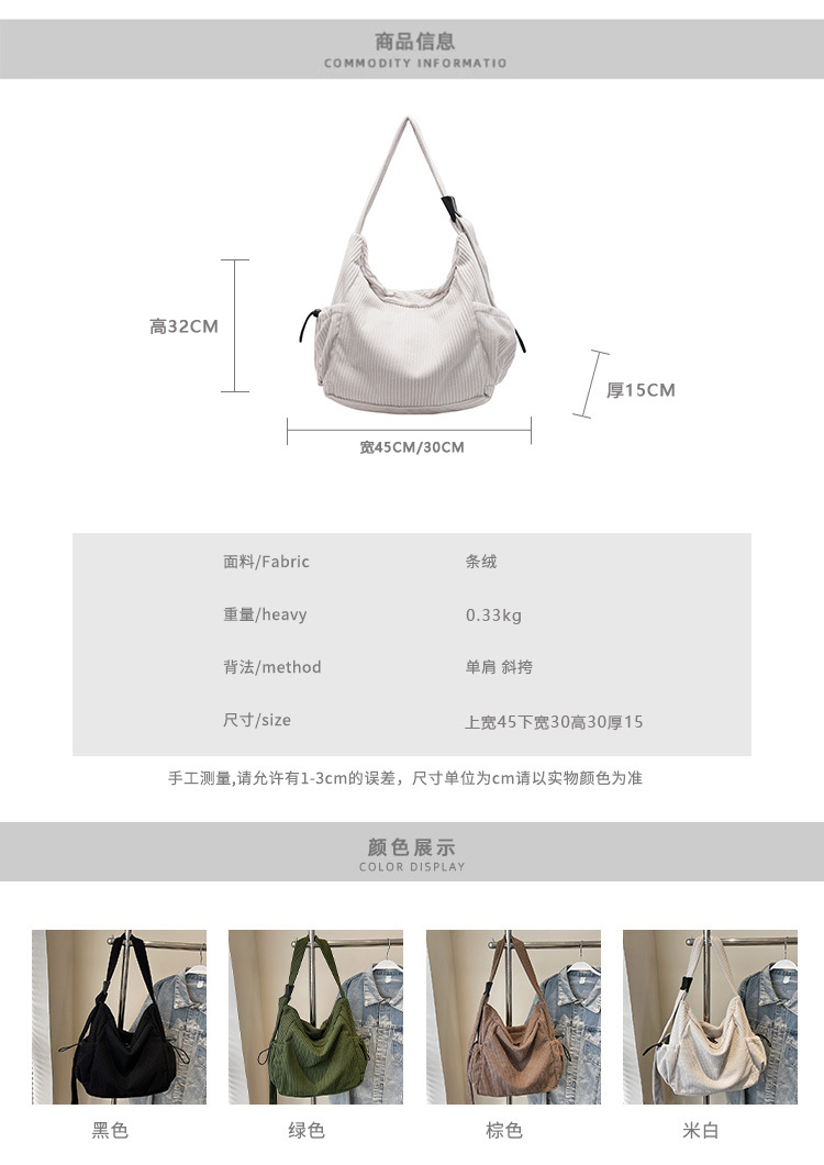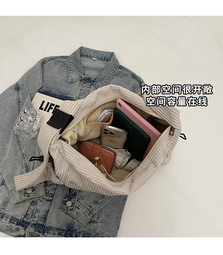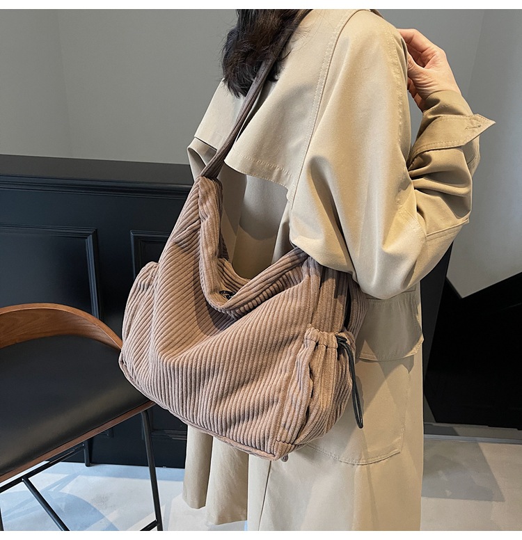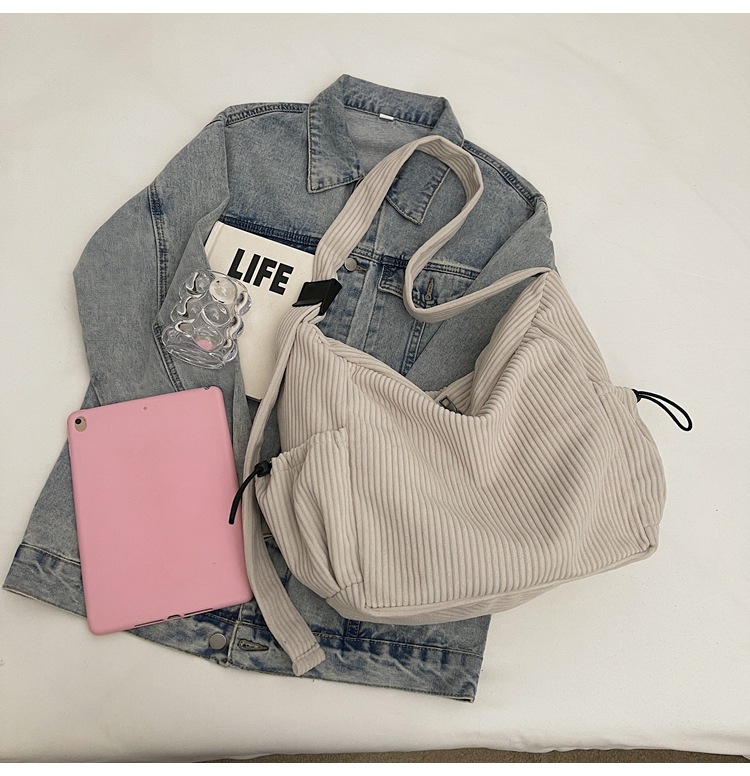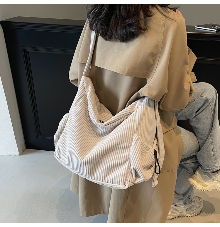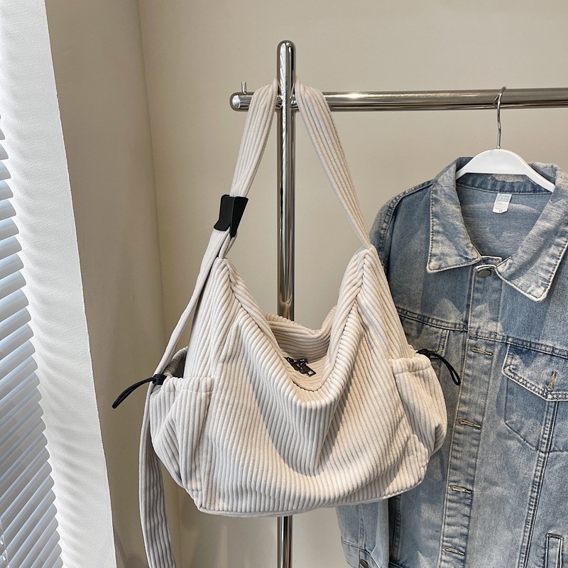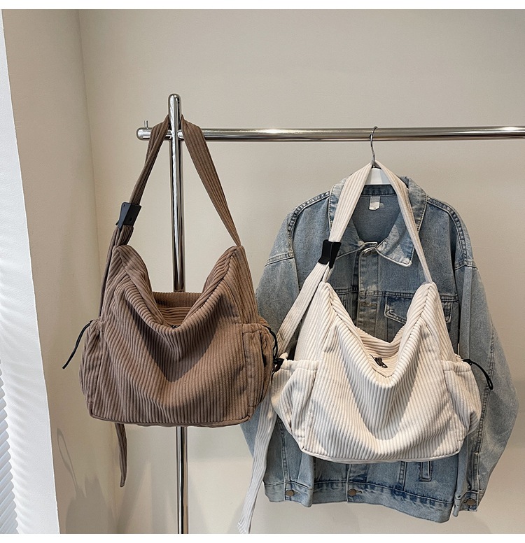 코듀로이 토트 백 여성 2024 겨울 새 한국 스타일 간단한 벨벳 크로스 백 대용량 작업 가방스토어 가기