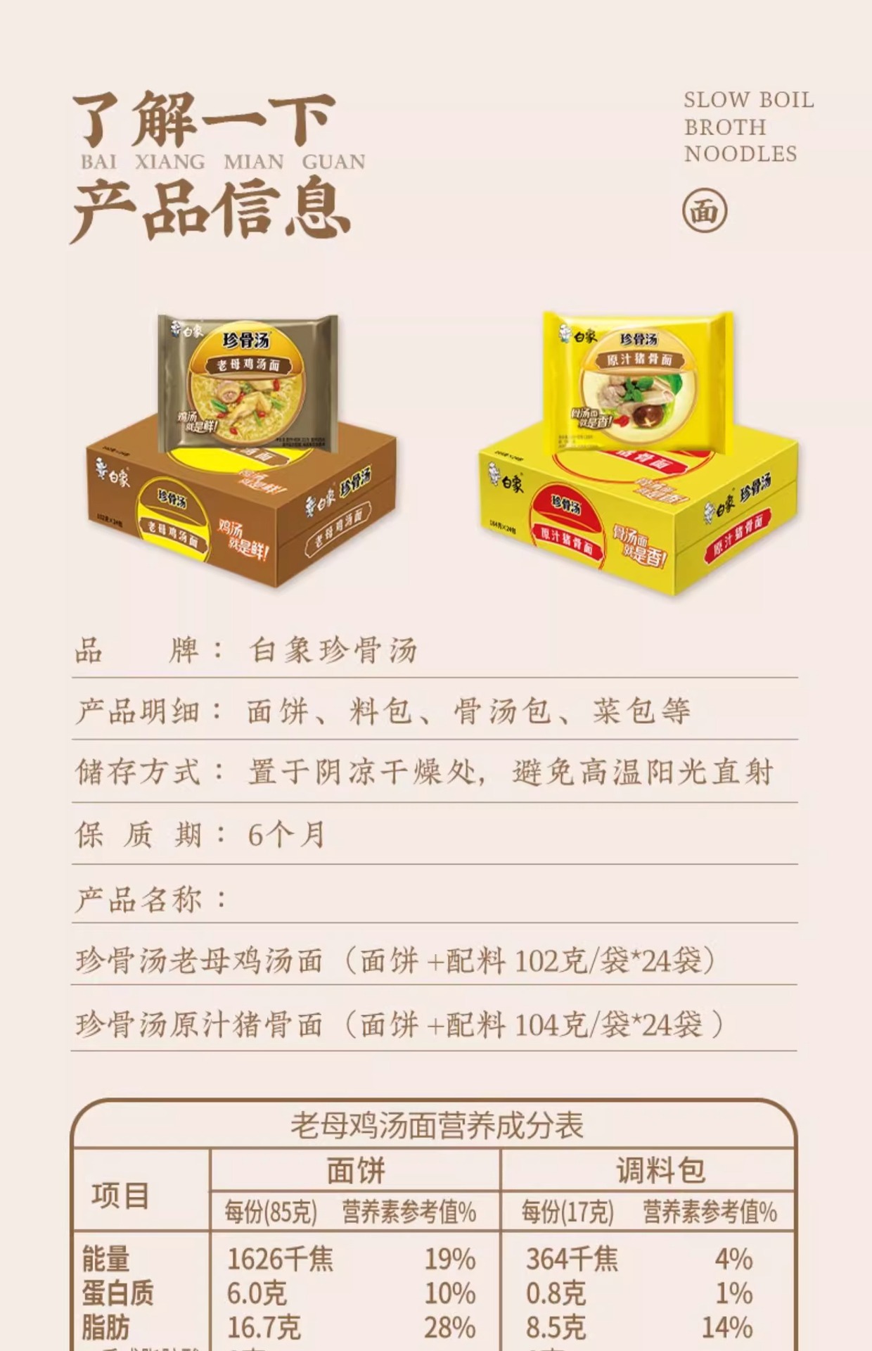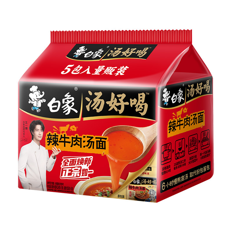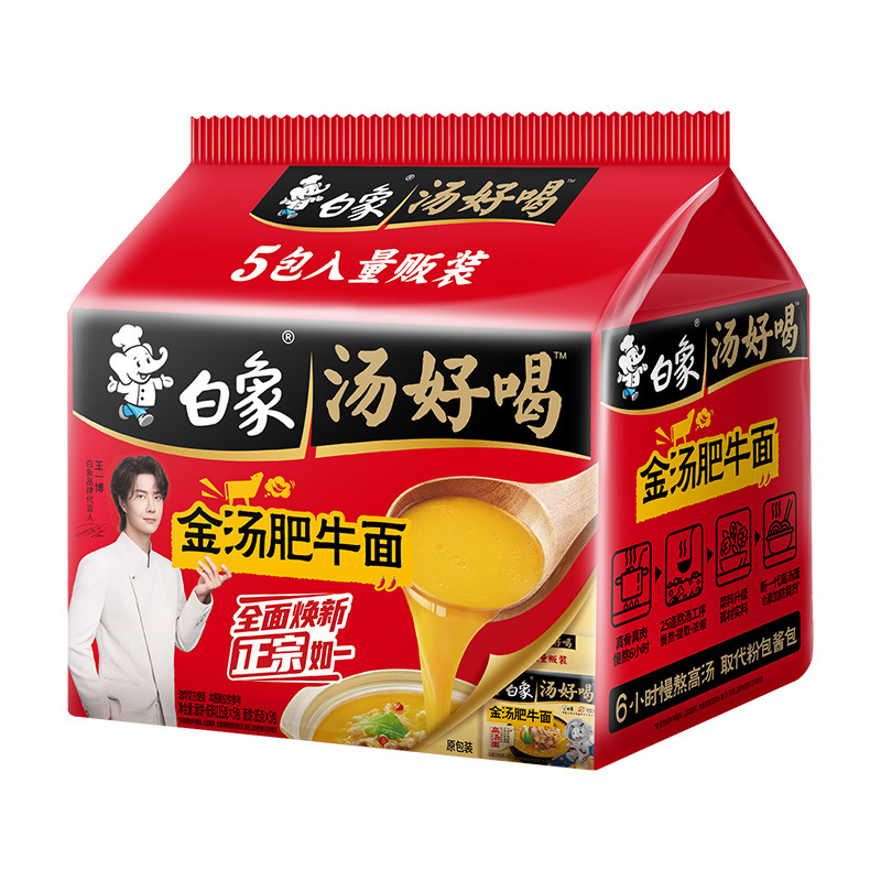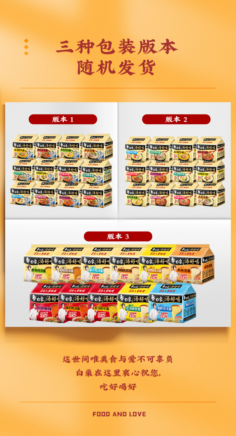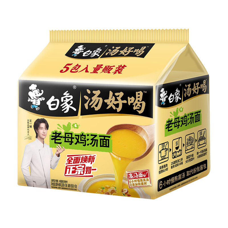 흰 코끼리 인스턴트 국수 전체 상자 도매 수프 좋은 음료 가방 수프 국수 쇠고기 오래 된 암탉 24 가방 인스턴트 국수