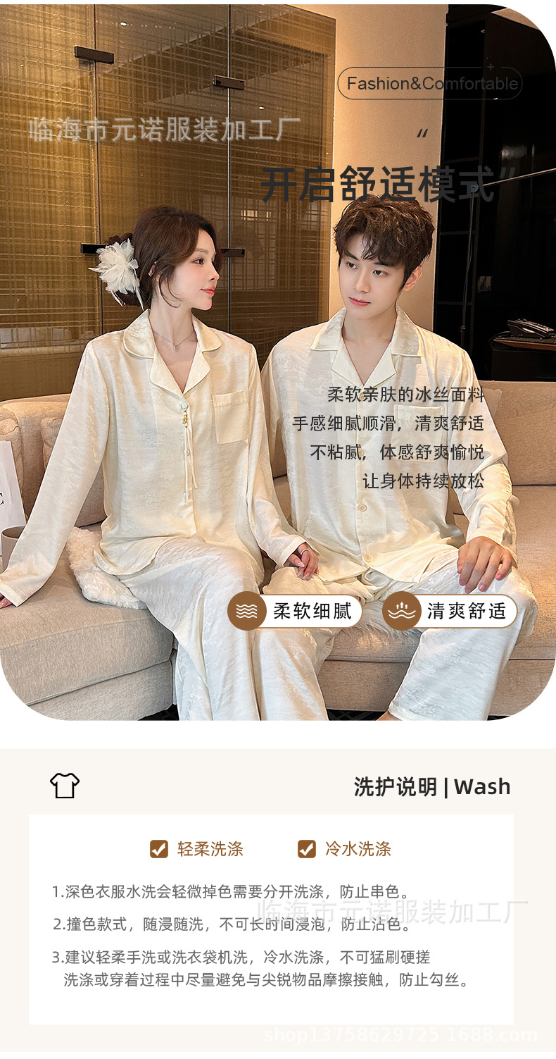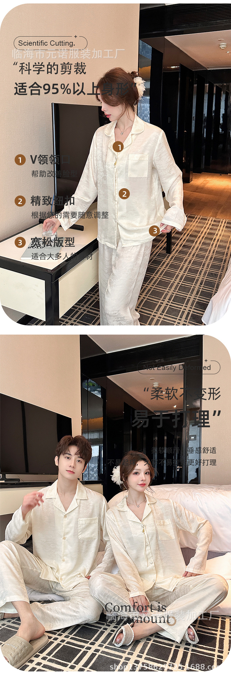 Guofeng 커플 잠옷 아이스 실크 2025 자카드 잠옷 봄과 가을 긴 소매 바지 중국 남성 커플 홈 옷스토어 가기