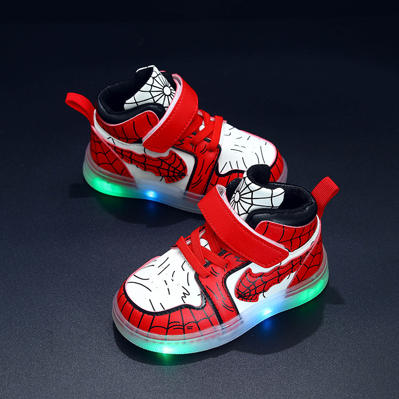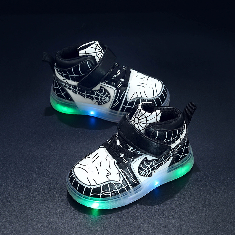 2025 봄과 가을 새로운 어린이 소년 운동화 가죽 LED 빛나는 어린이 신발 1-6 세 소녀 스포츠 캐주얼 신발스토어 가기