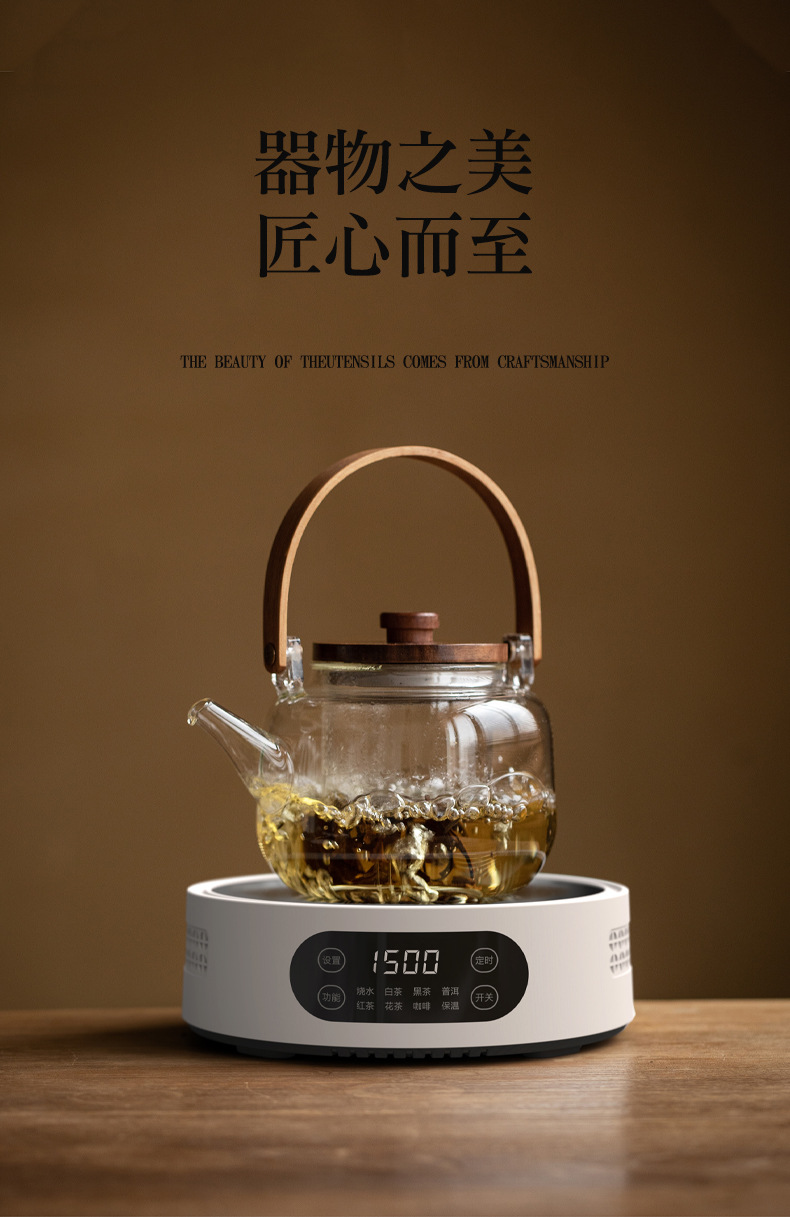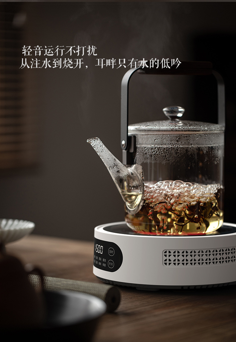 ⇡ Miku 전기 세라믹 스토브 1500W 팬 모델 그레이 별하늘 주전자 내열 유리 손잡이 주전자 Douyin 인기 차 끓이기 주전자스토어 가기