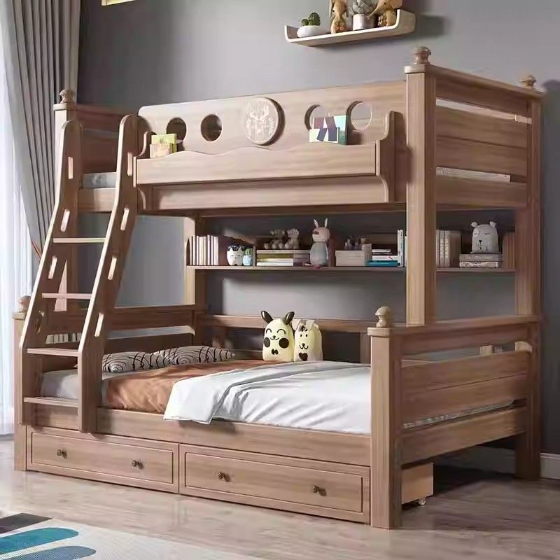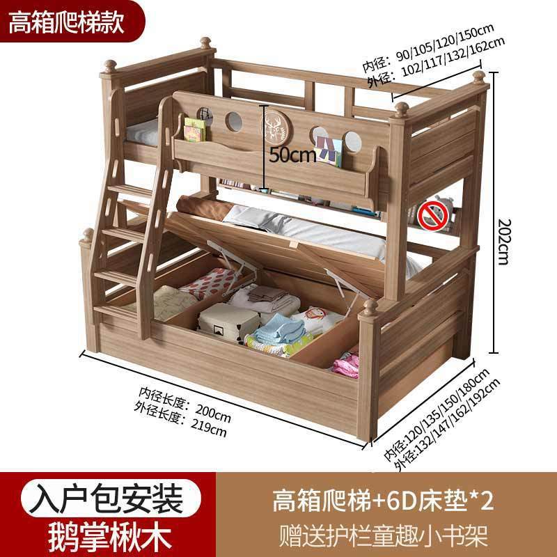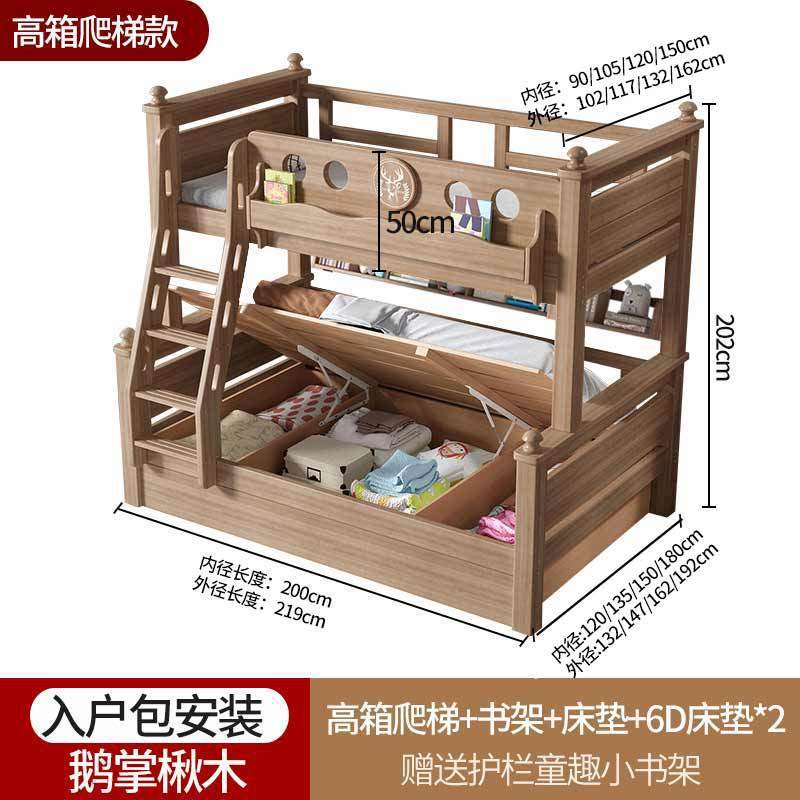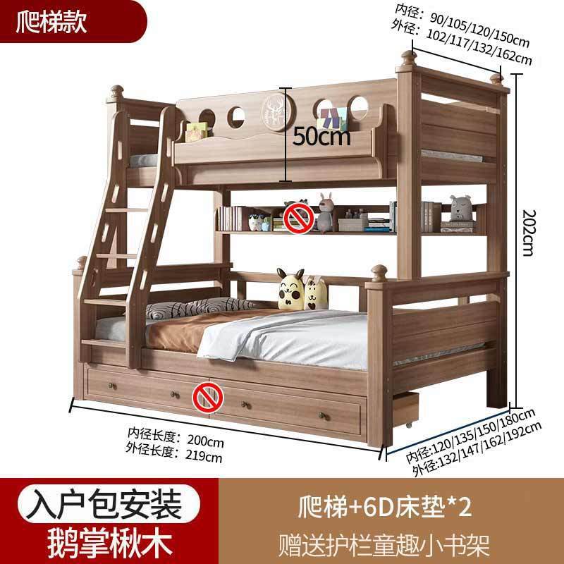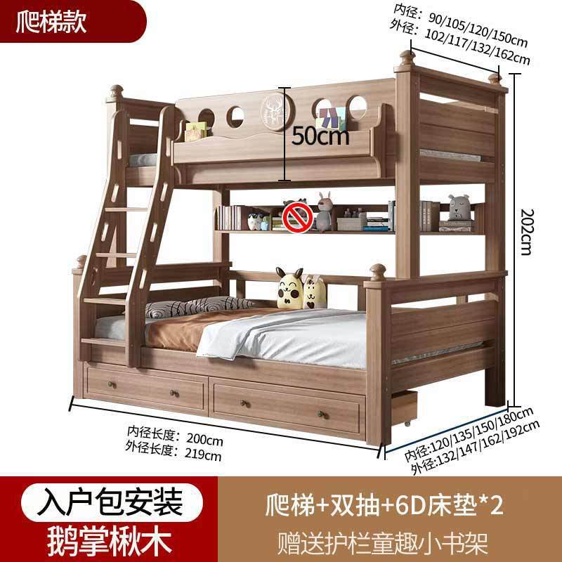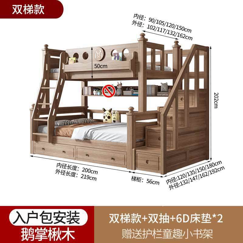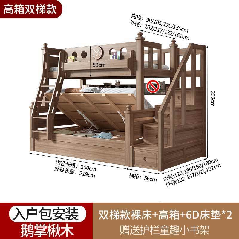 Liriodendron 솔리드 우드 침대 이층 2 층 높고 낮은 침대 더블 침대 침대 침대 이층 침대 어린이 침대 어린이 침대 침대 어머니 침대