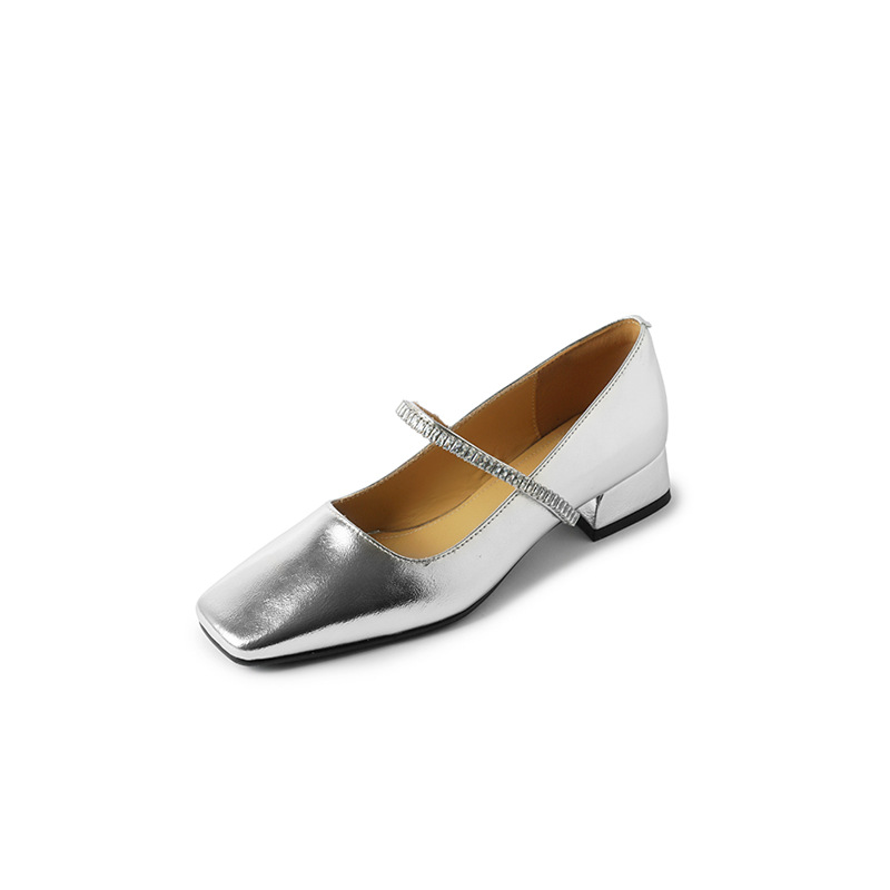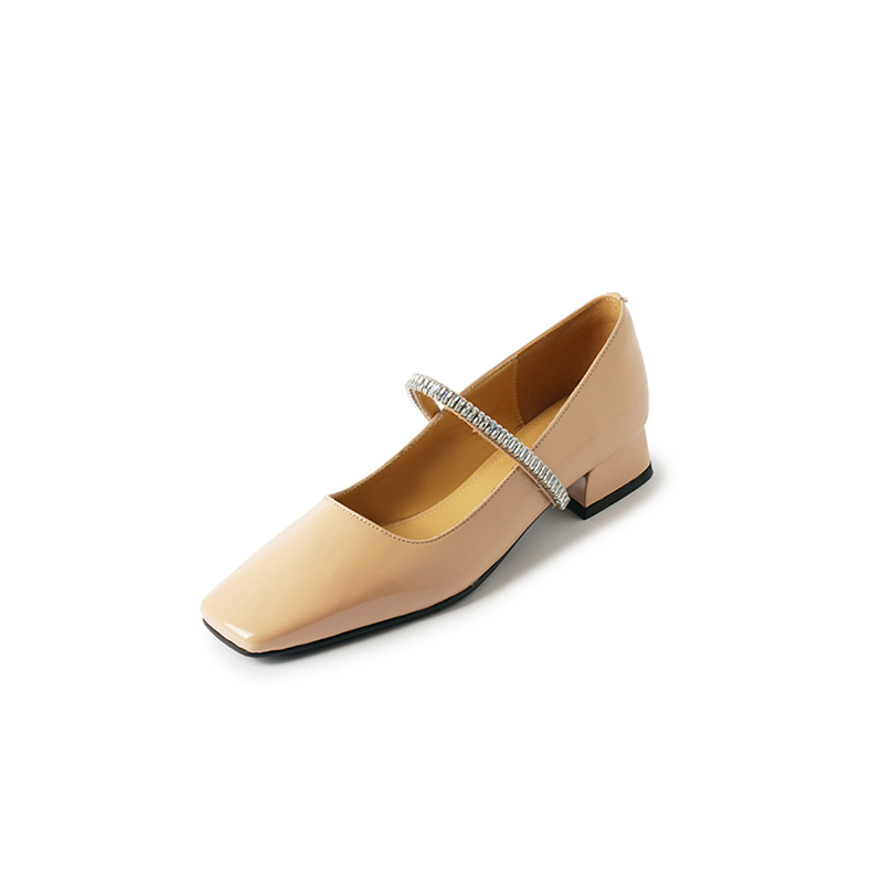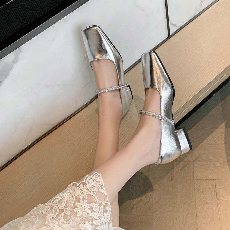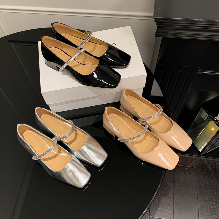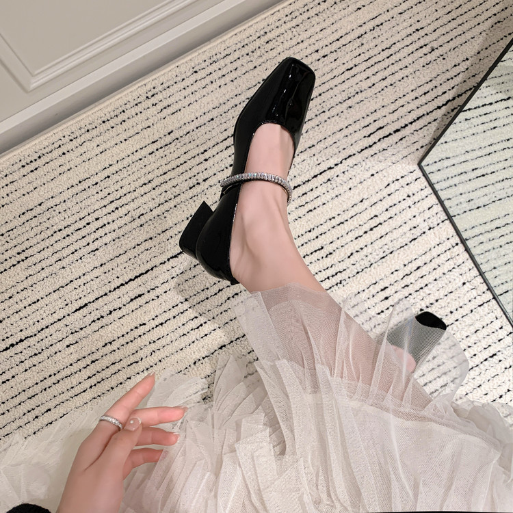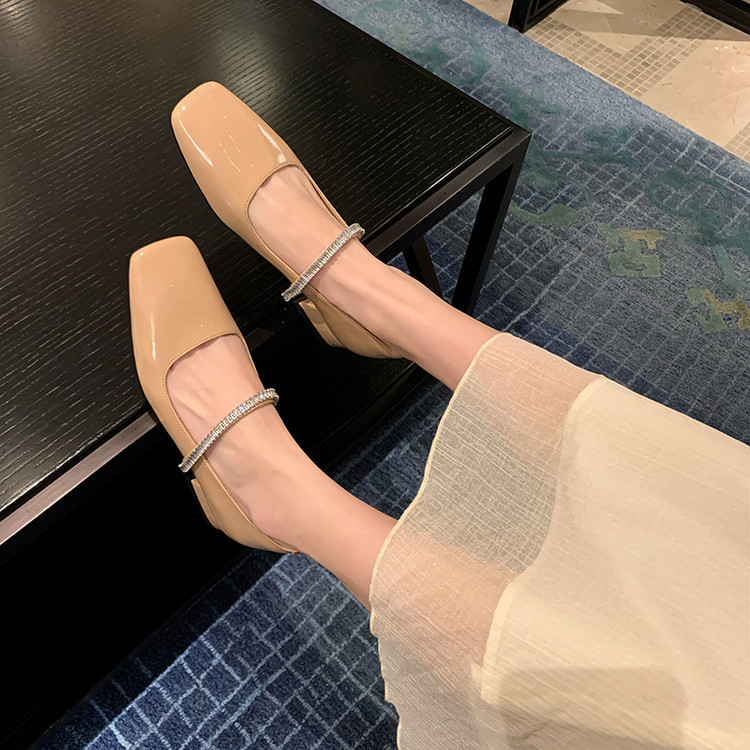 스퀘어 헤드 라인스톤 두꺼운 힐 메리 제인 신발 여성용 얕은 입 싱글 레이어 신발 미드 힐 로우 탑 풀 가죽 신발 여성용 신발스토어 가기