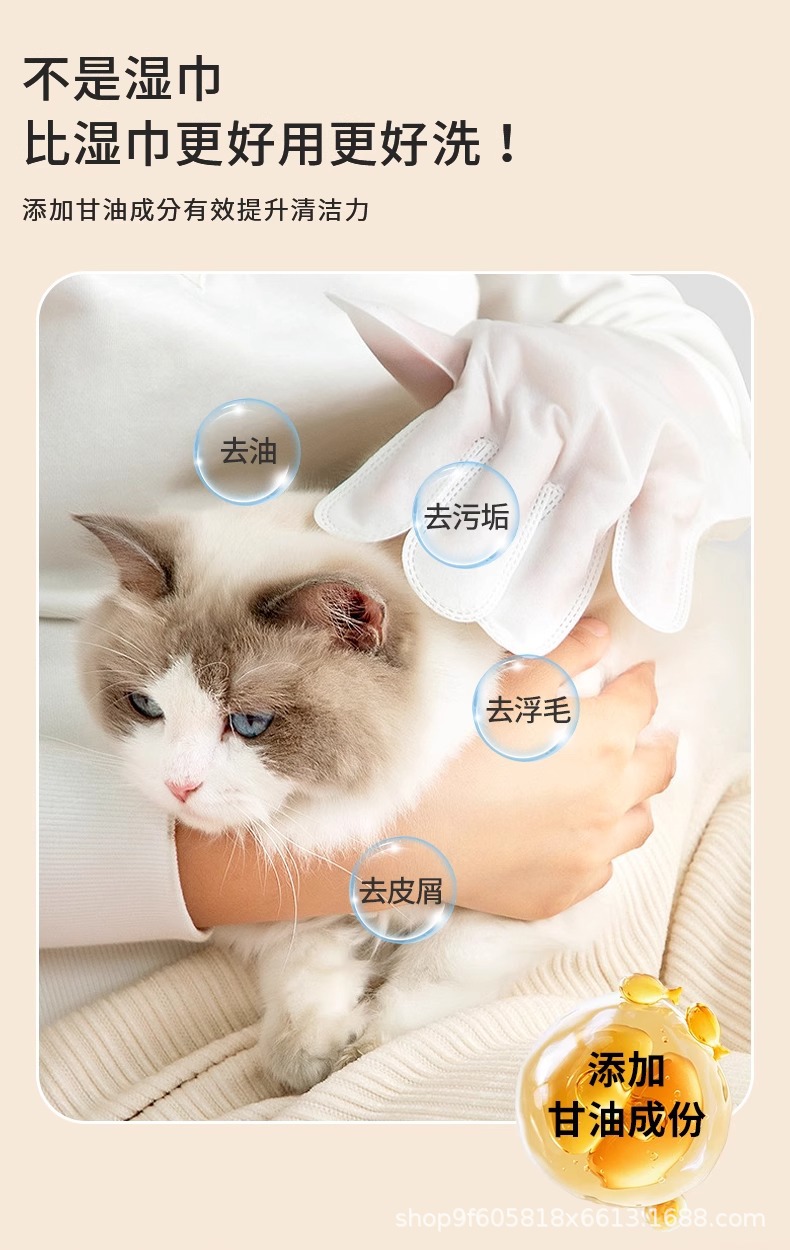 Whitley 애완 동물 워시 프리 장갑 개 고양이 살균 탈취 젖은 조직 드라이 클리닝 장갑 목욕 프리