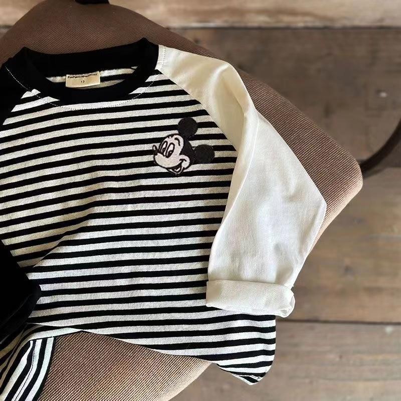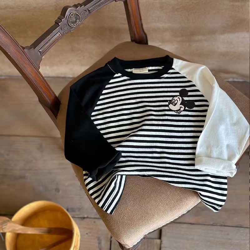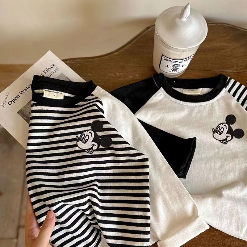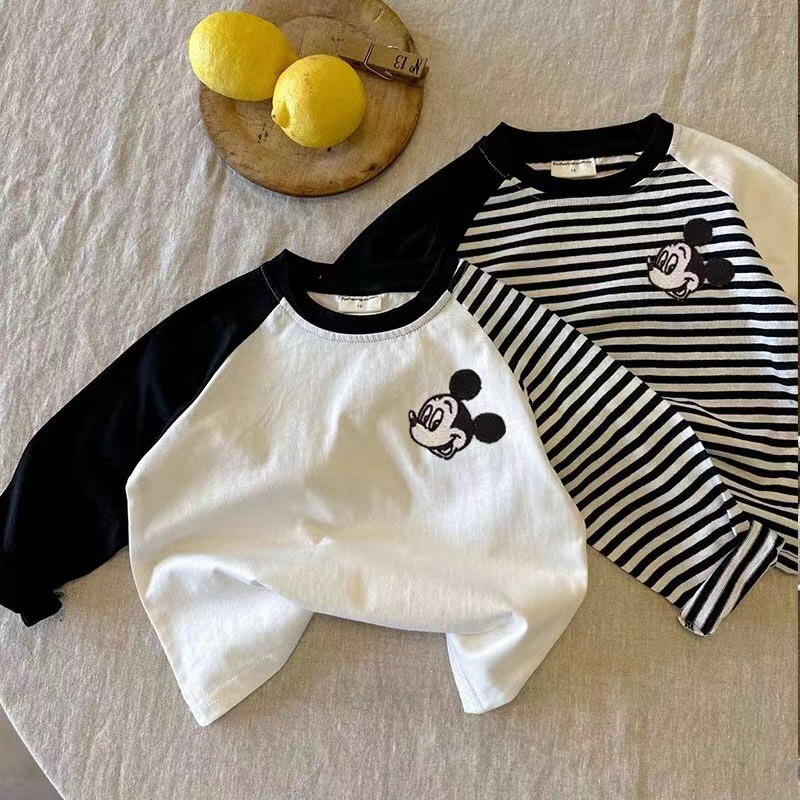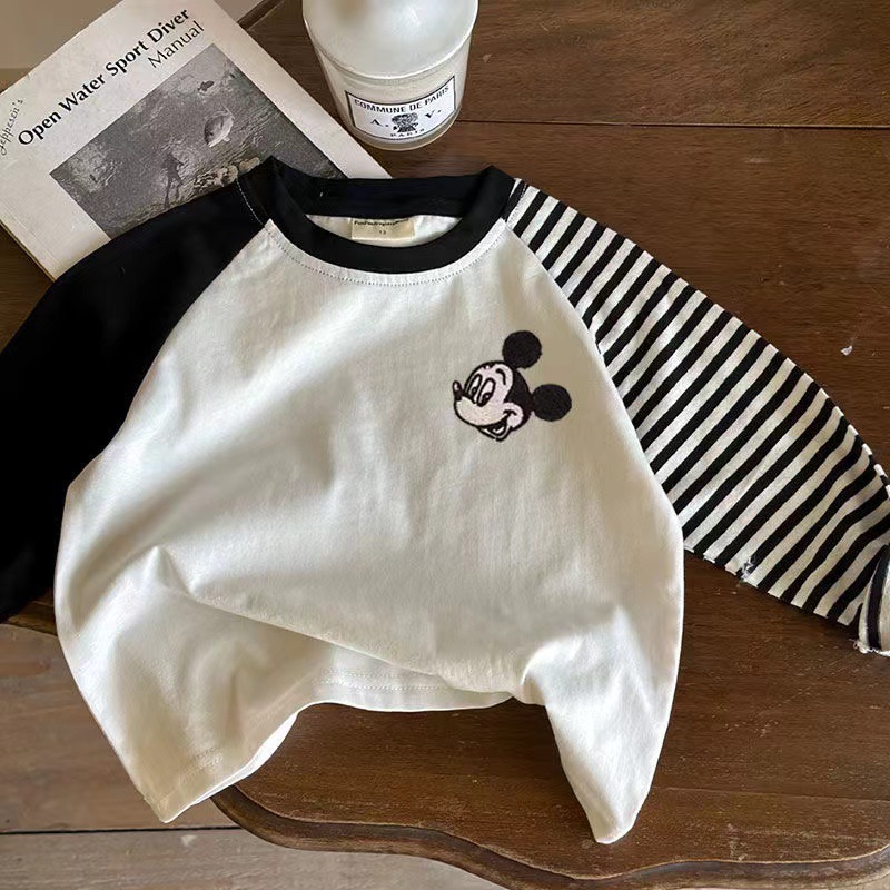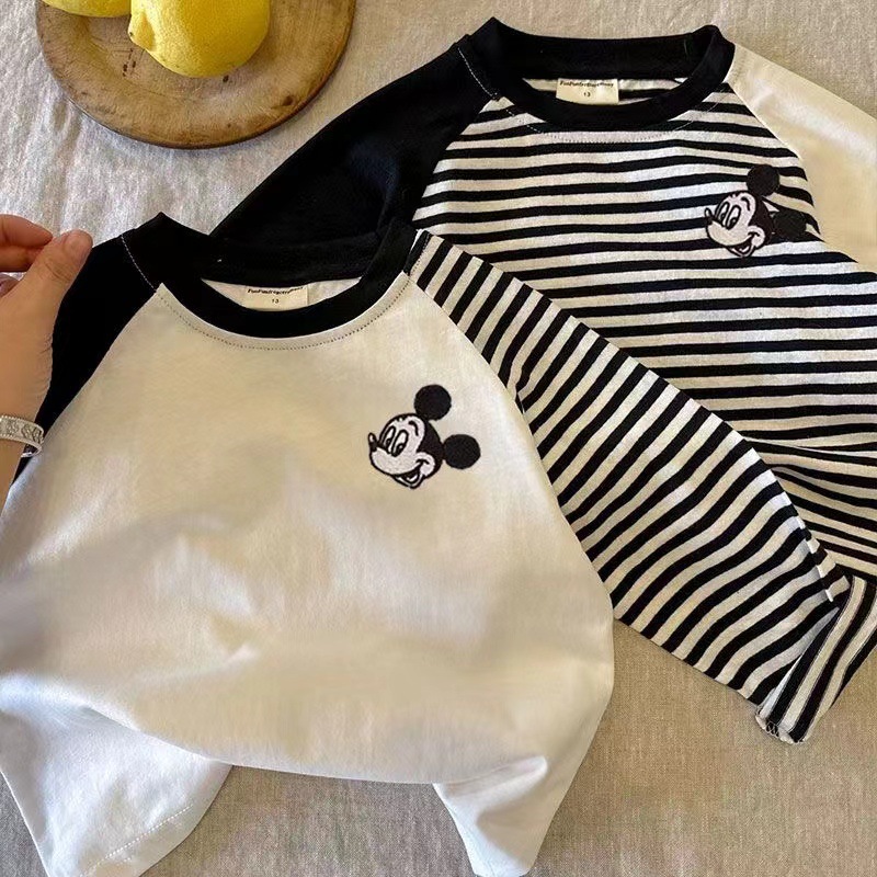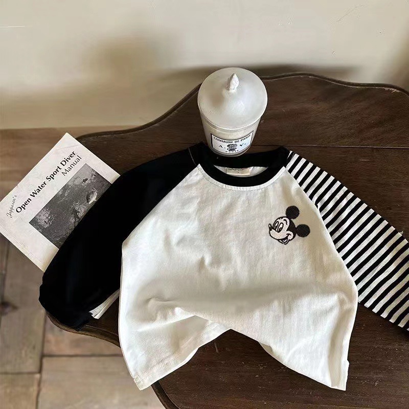 코튼 어린이 티셔츠 자수 미키 2025 아기 소년 소녀를위한 새로운 도착 한국식 언더 셔츠 탑