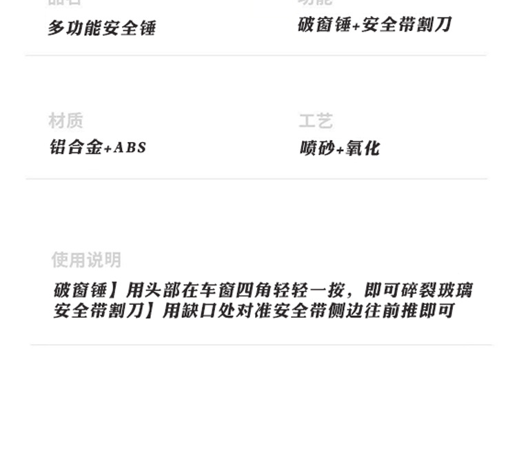 안전 해머 자동차 장착 창 깨는 인공물 다기능 래시 탈출 차량 1 초 비상 탈출