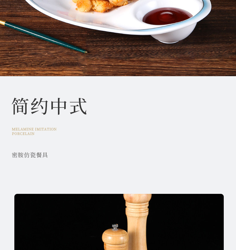 간단한 멜라민 식기 만두 플레이트 창조적 인 모조 도자기 특성 플레이트 호텔 레스토랑 차가운 요리 새우 접시 상업 식초스토어 가기