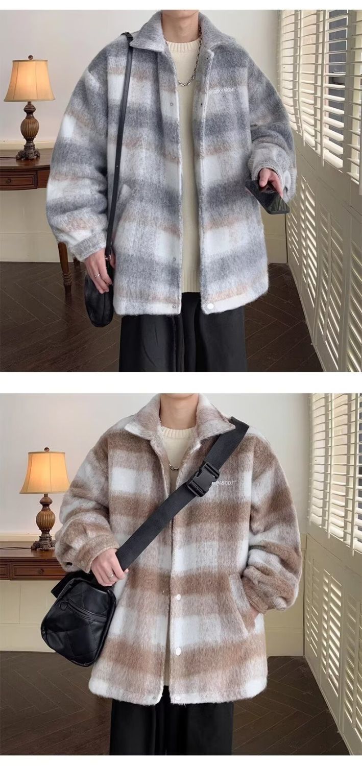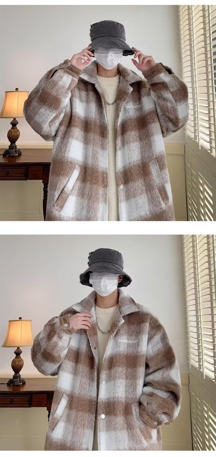 봄과 가을 격자 무늬 코트 오버 사이즈 울 루즈 모직 유행 남성 재킷 아메리칸 스타일 레트로 커플 재킷스토어 가기