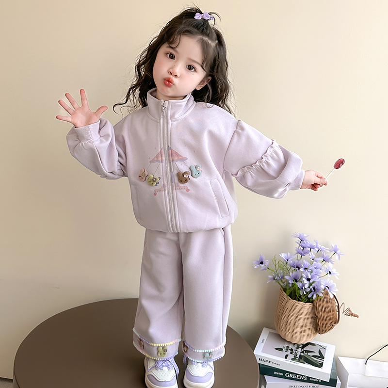 새로운 봄 세트 2025 새로운 서양 스타일 아기 소녀 봄과 가을 올 매치 스포츠 유행 Guofeng 투피스 세트스토어 가기