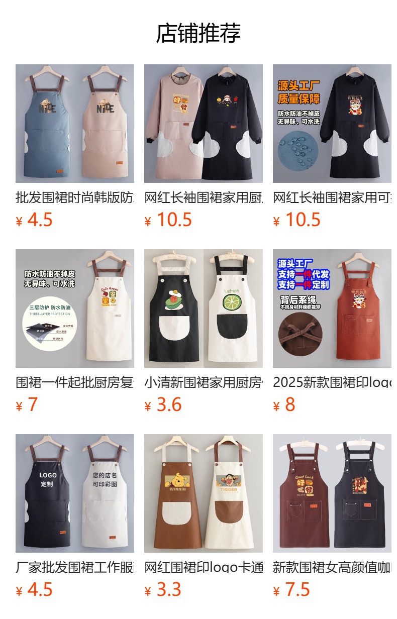 도매 인기 곰돌이 앞치마 한국 스타일 방수 방유 앞치마 맞춤 로고 고급스러운 외관 식당 전용 앞치마스토어 가기