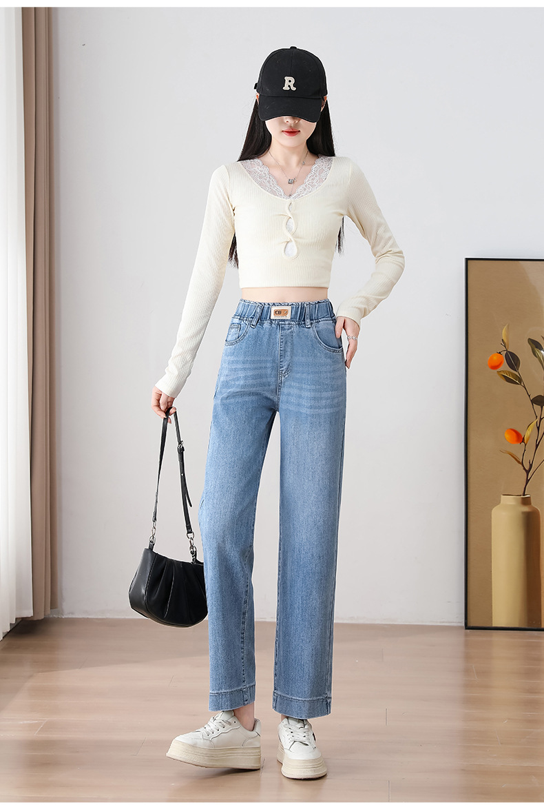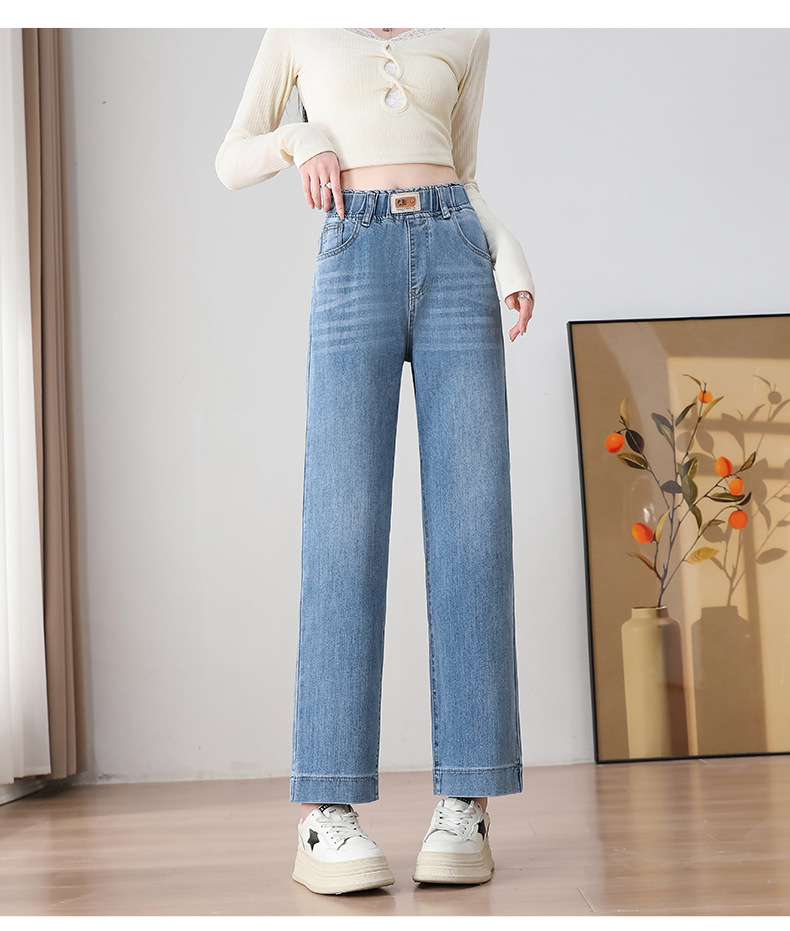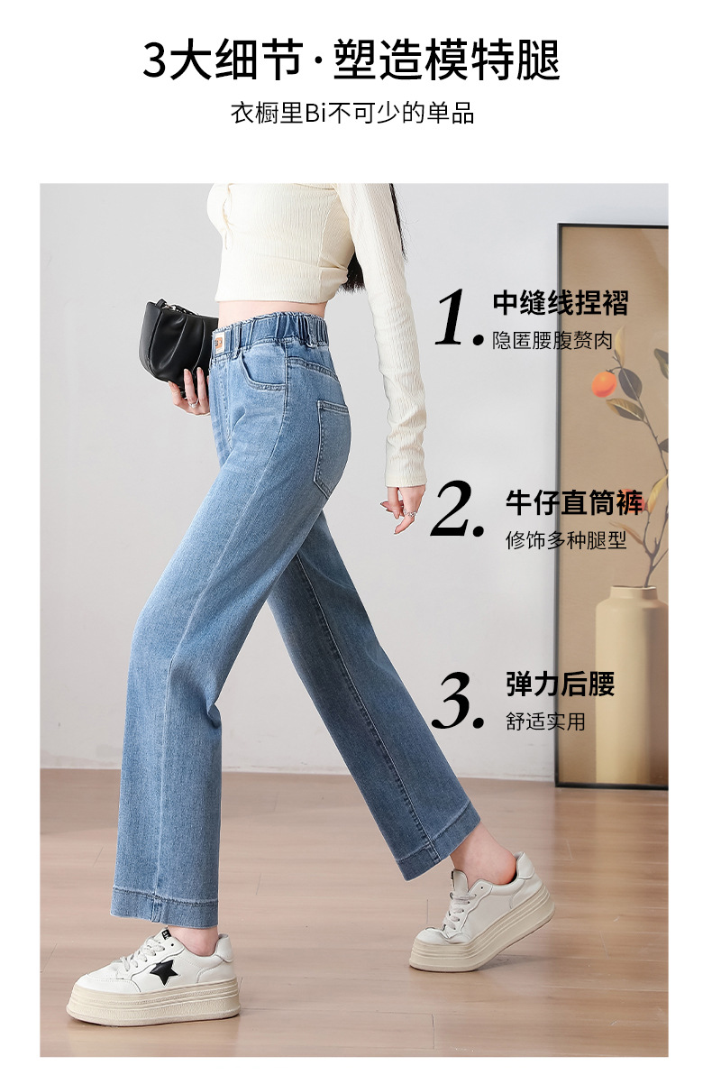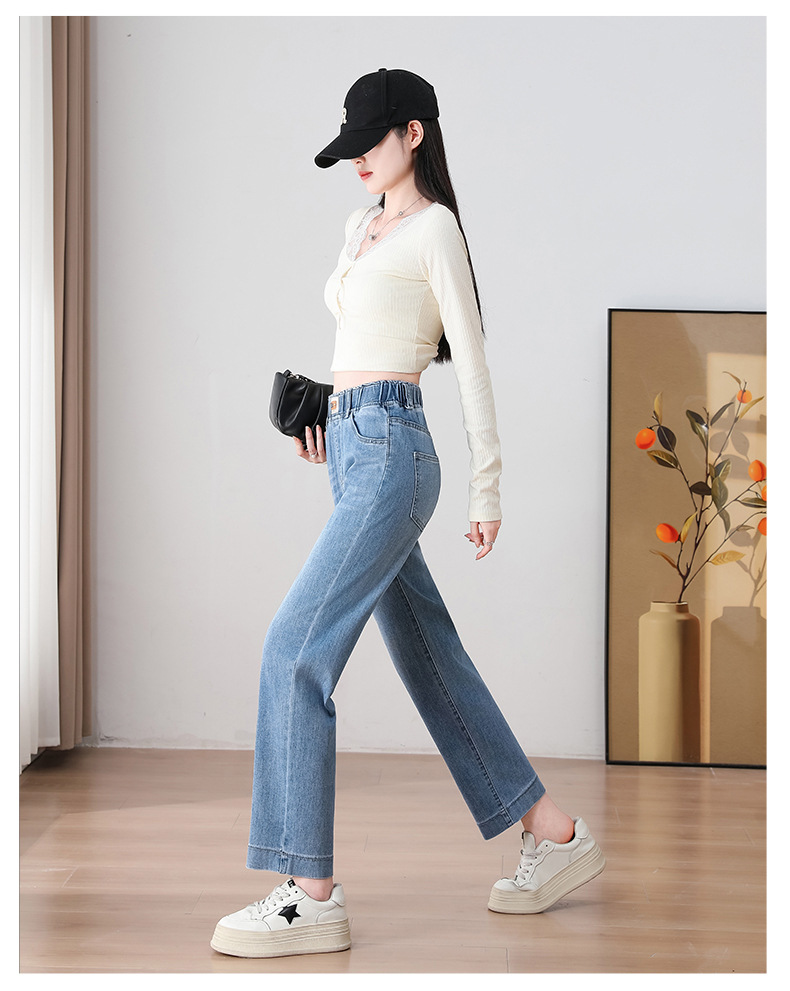 2025 고급 여성용 나인포인트 데님 팬츠 하이웨이스트 슬림핏 키높이 효과 작은 키에도 잘 어울리는 루즈핏 스모크 파이프 나인포인트 팬츠스토어 가기
