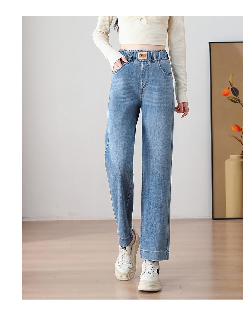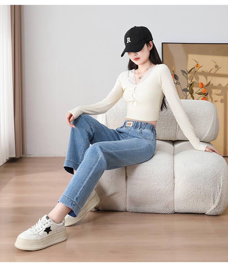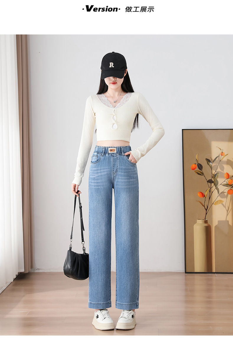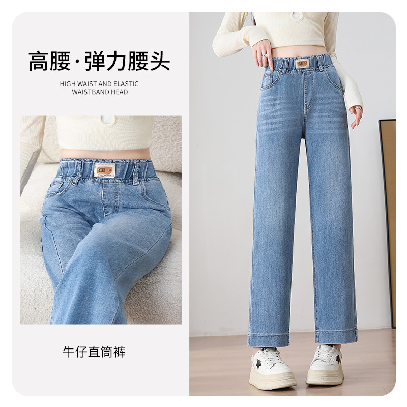 2025 고급 여성용 나인포인트 데님 팬츠 하이웨이스트 슬림핏 키높이 효과 작은 키에도 잘 어울리는 루즈핏 스모크 파이프 나인포인트 팬츠스토어 가기