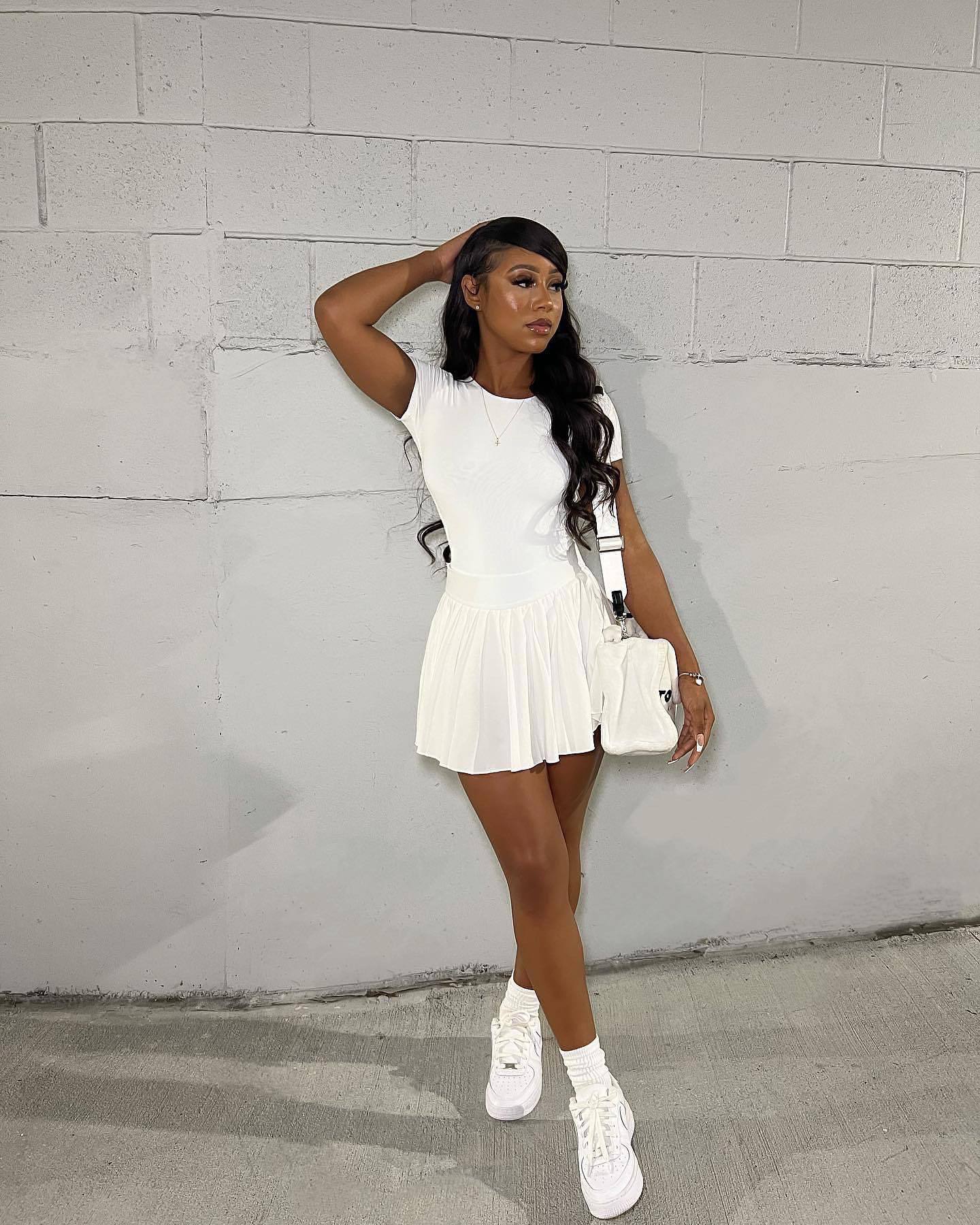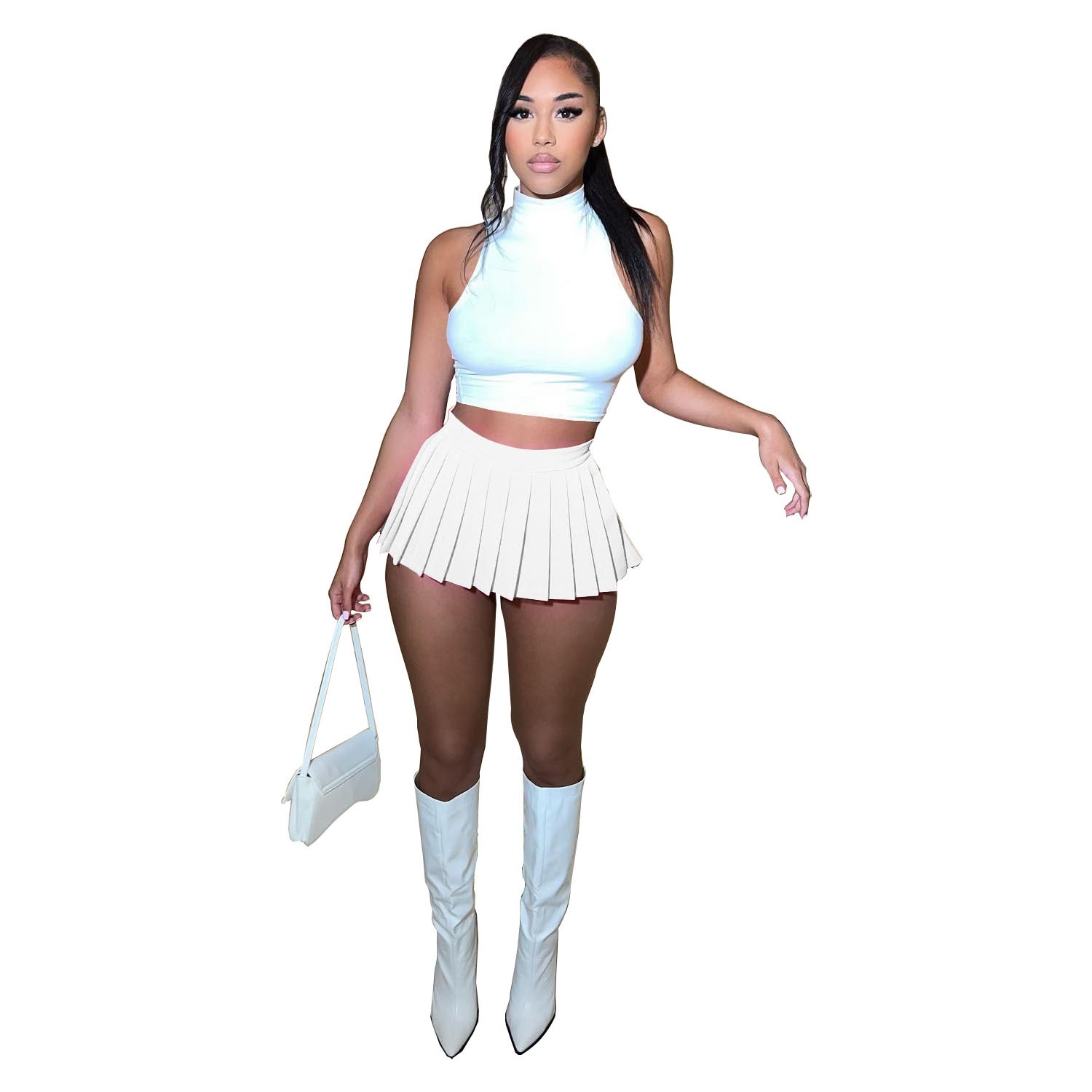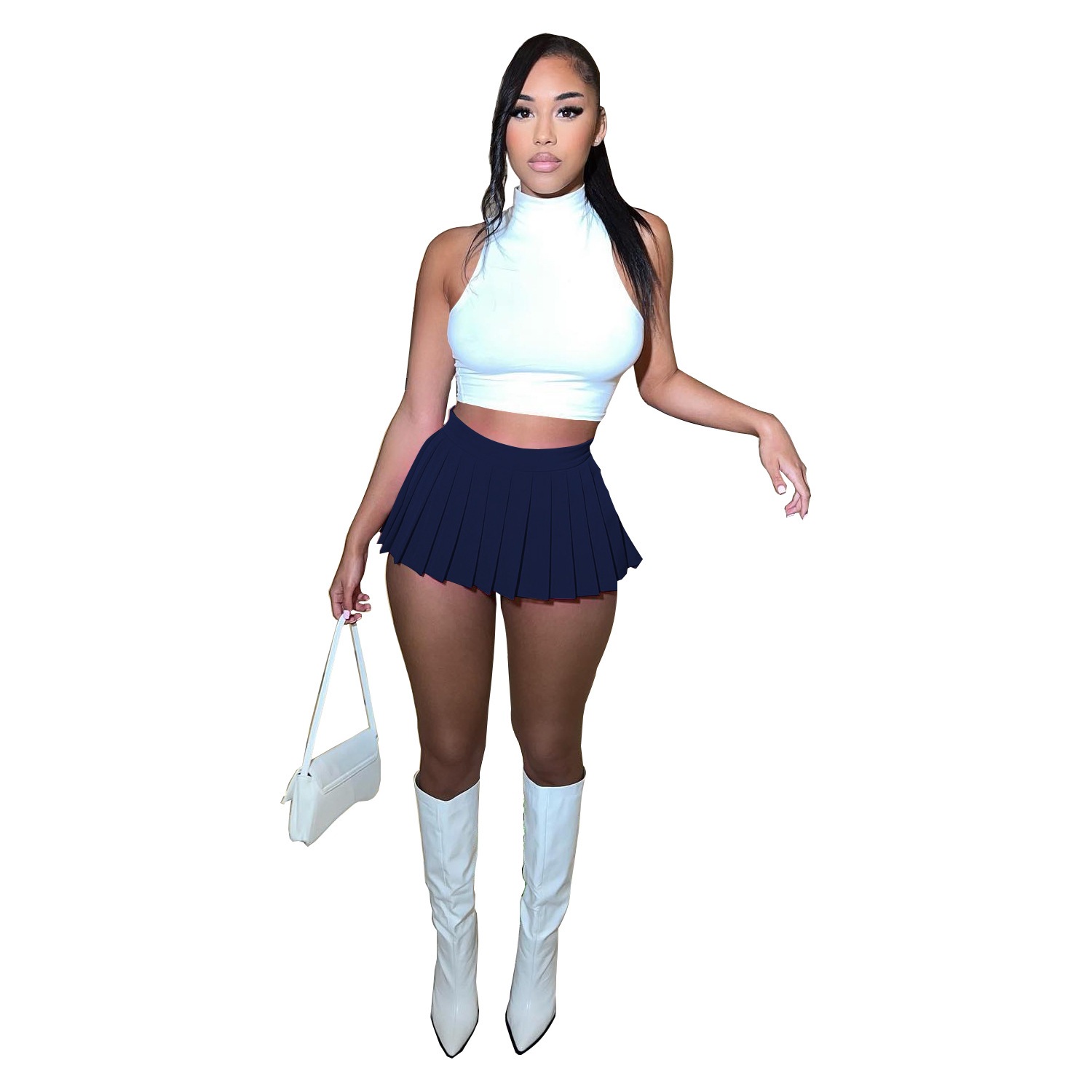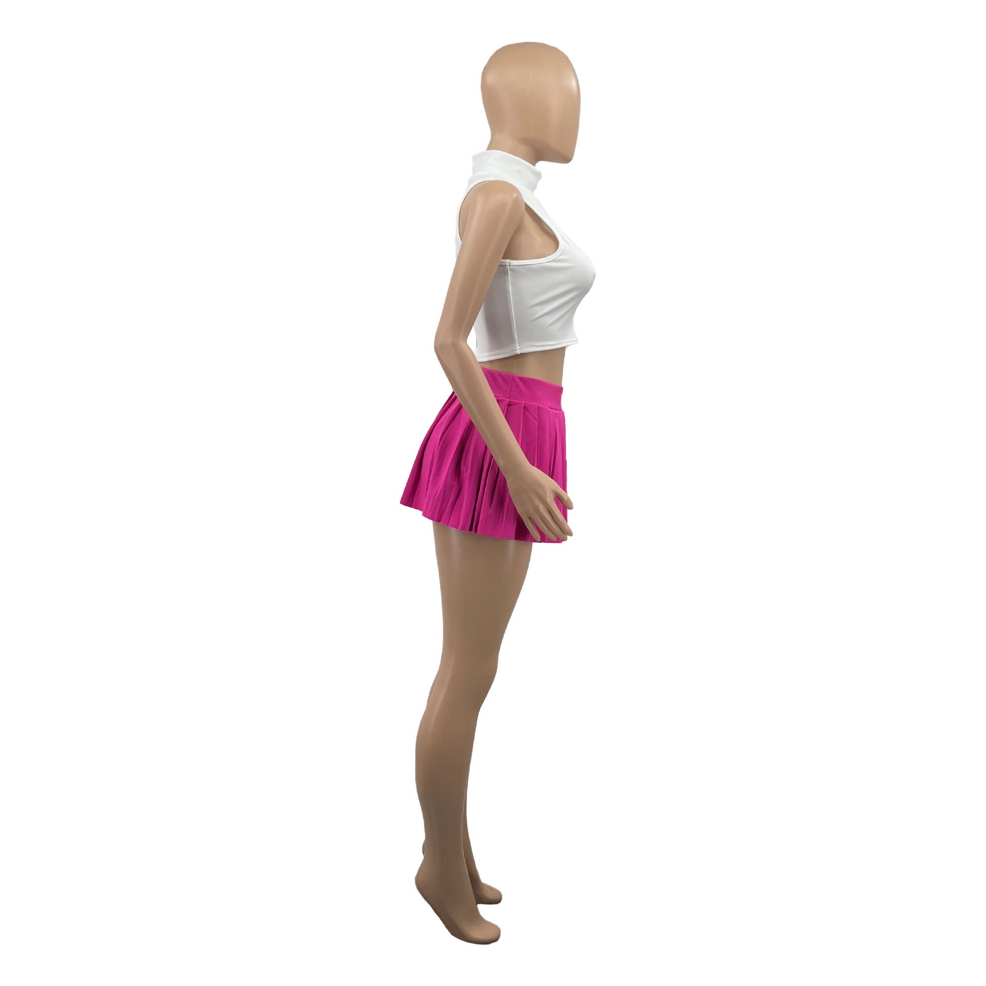 유럽과 미국의 여성 의류 아마존 2025 여름 핫 솔리드 컬러 섹시한 미니 주름 치마