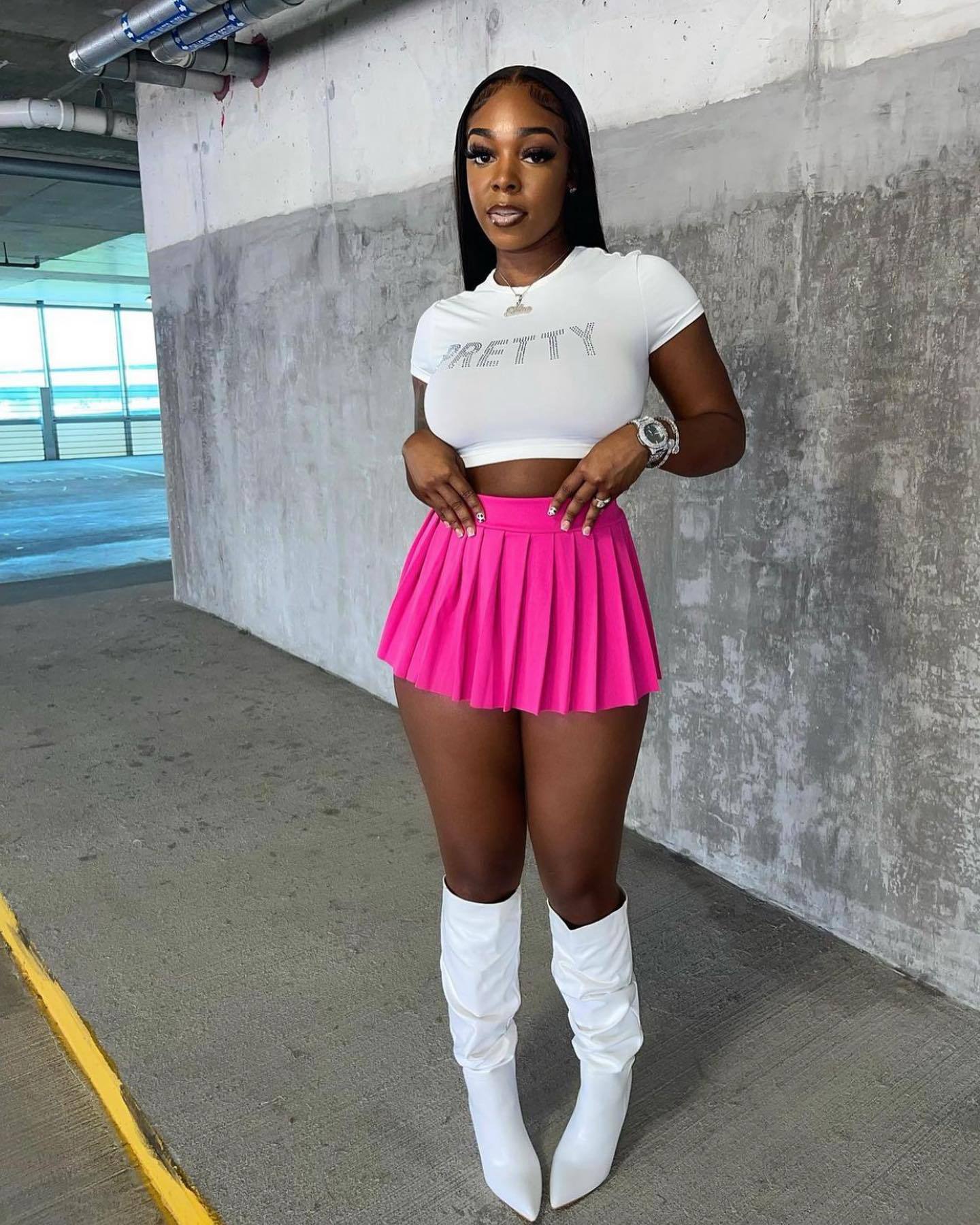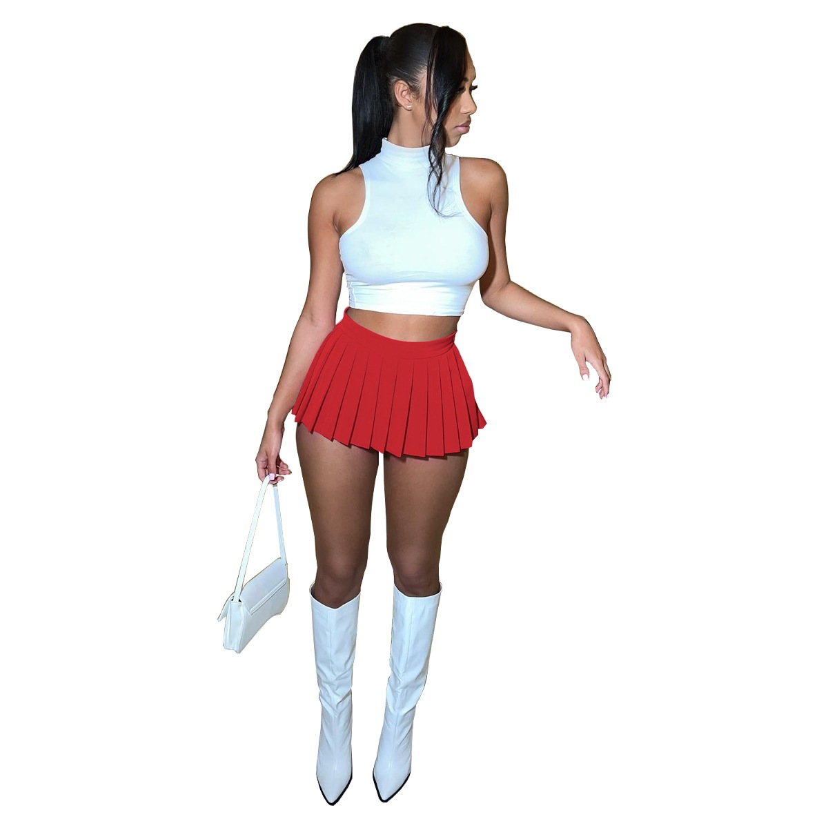 유럽과 미국의 여성 의류 아마존 2025 여름 핫 솔리드 컬러 섹시한 미니 주름 치마스토어 가기