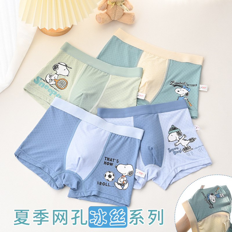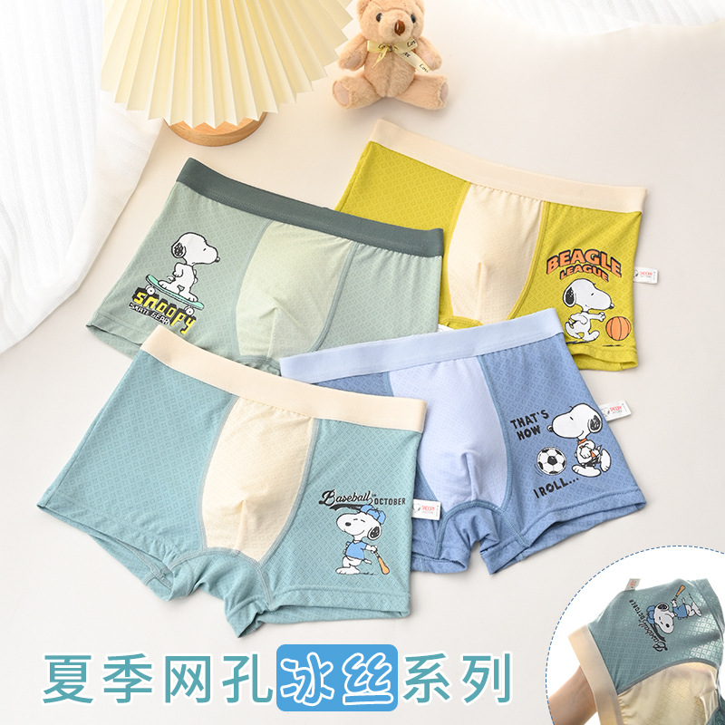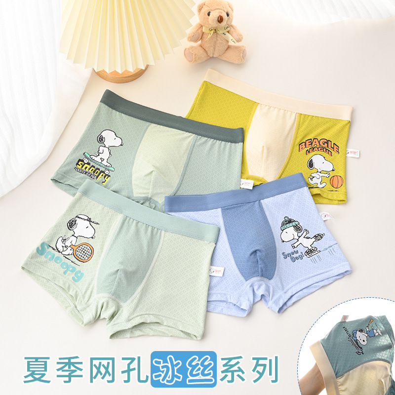 남학생 아이스 실크 속옷 여름 얇은 어린이 순수 코튼 복서 바지 메쉬 소년의 아기 중년 어린이 복서 반바지