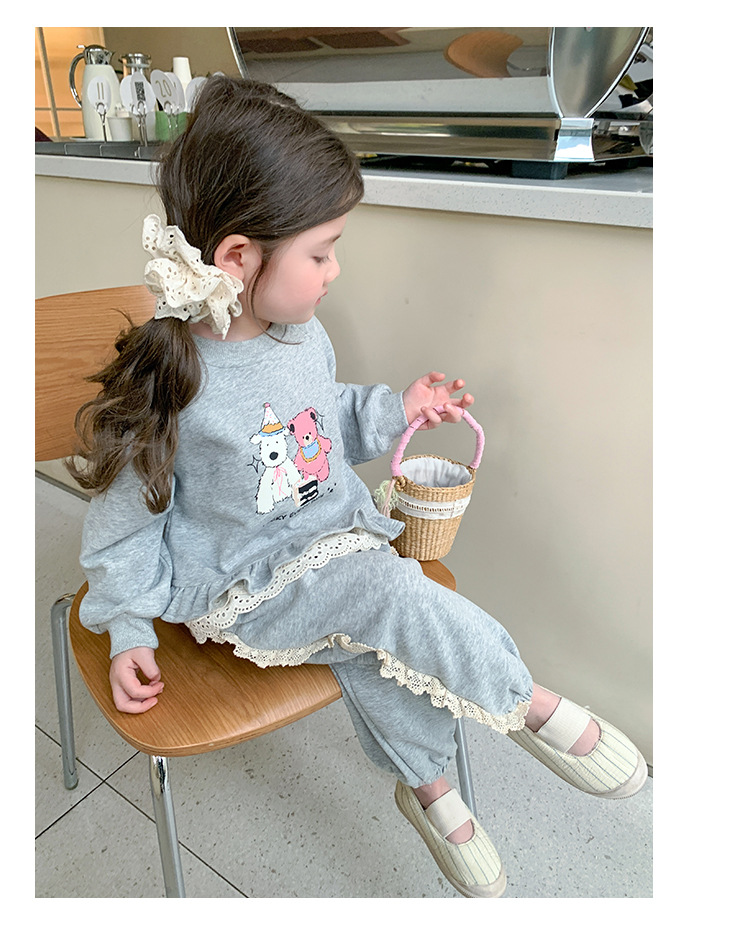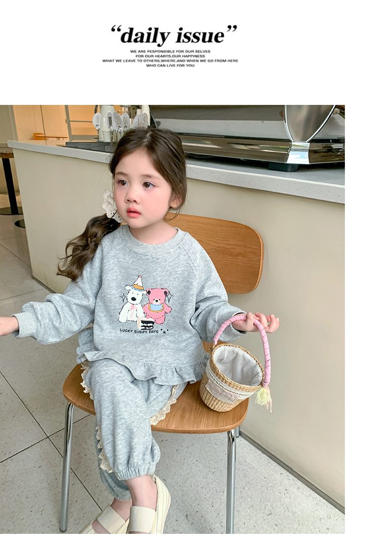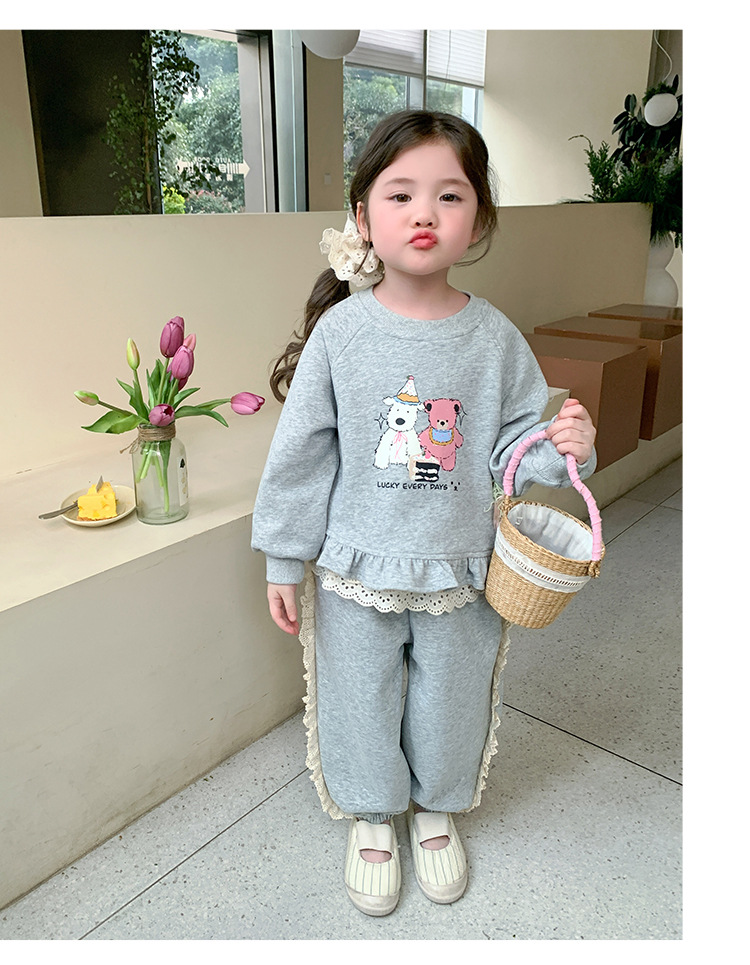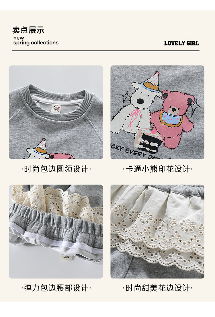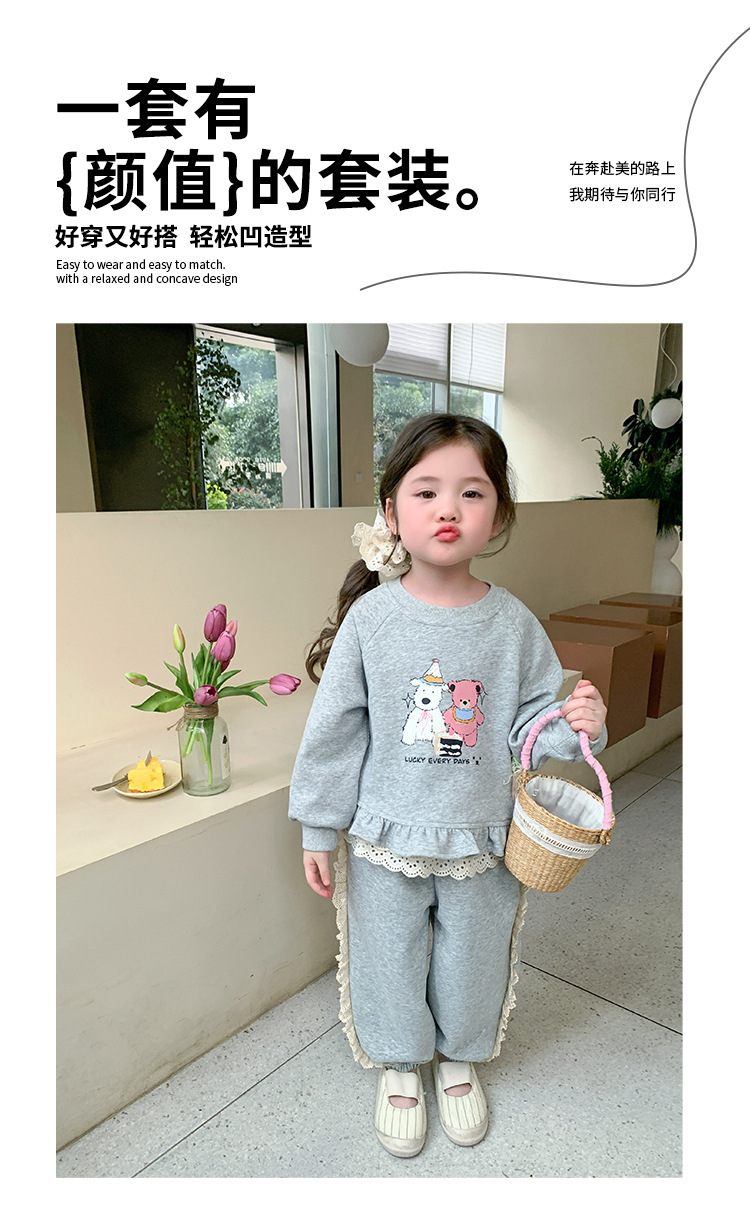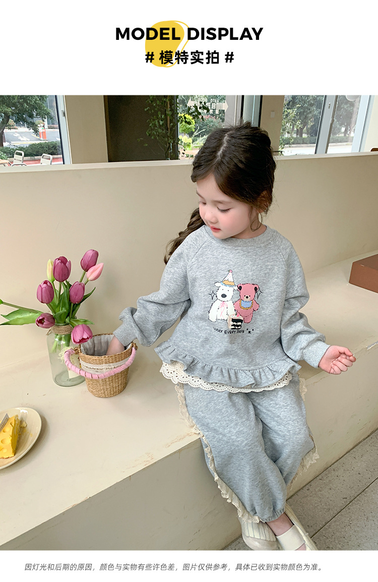 소녀 레이스 니트 만화 세트 봄과 가을 2025 새로운 패션 작은 소녀 스웨터 스포츠 투피스 세트스토어 가기