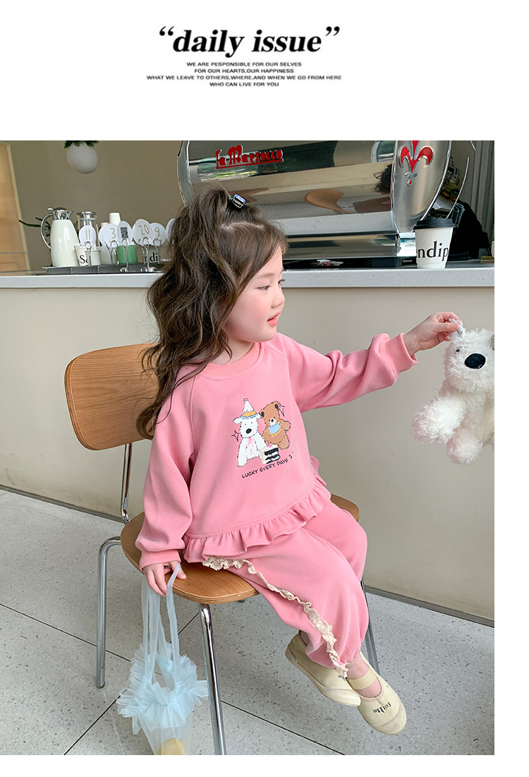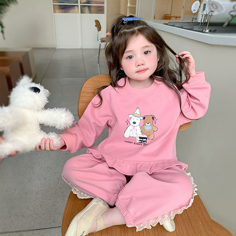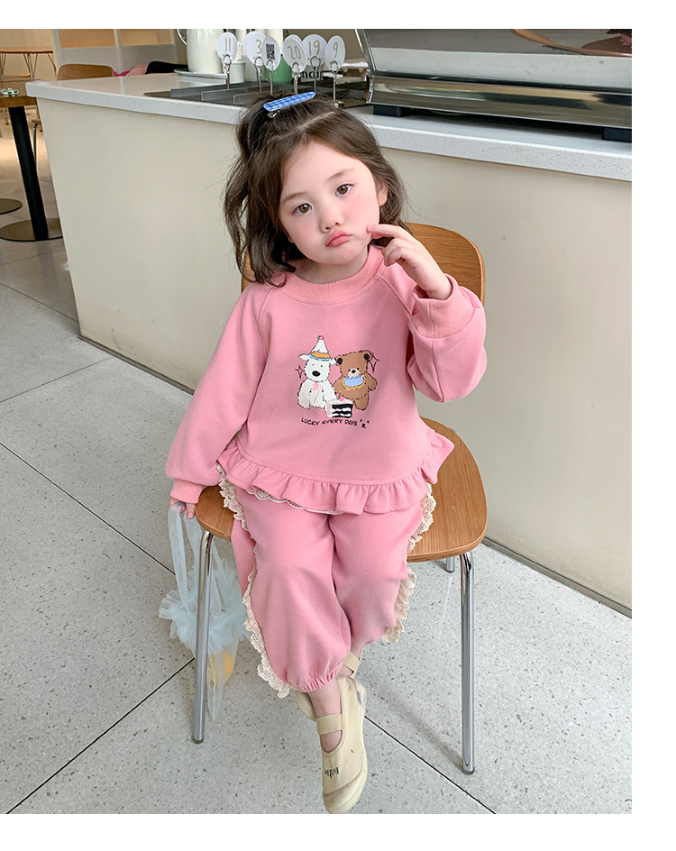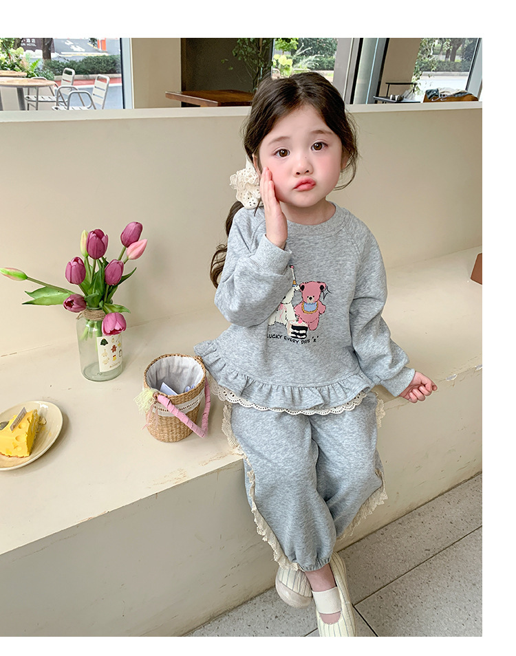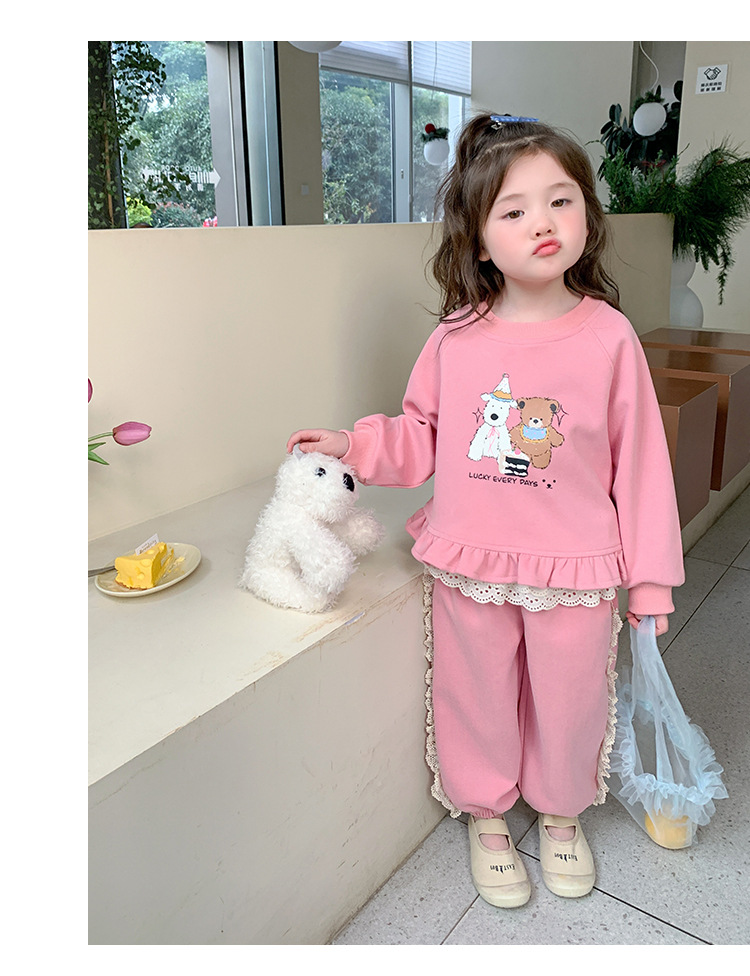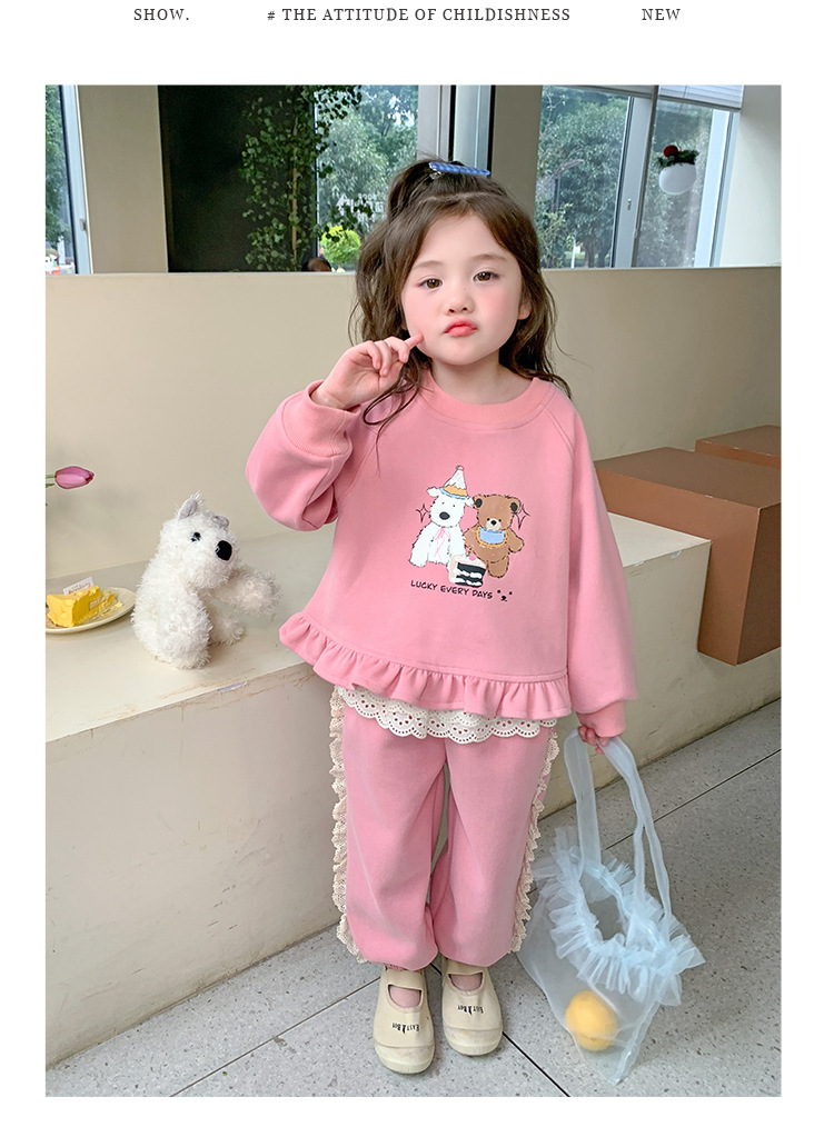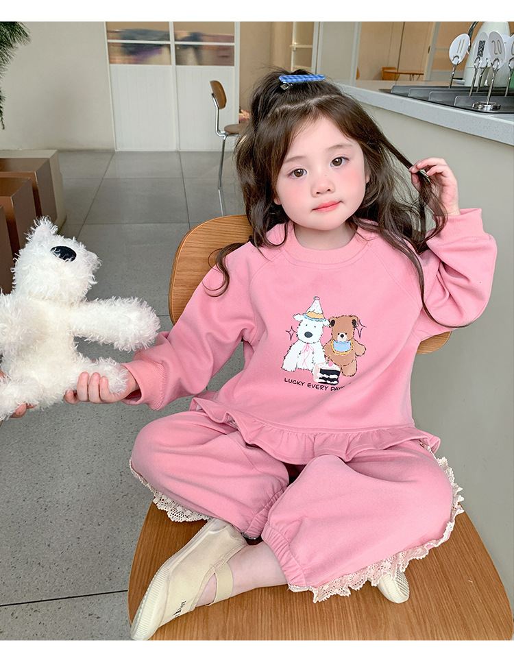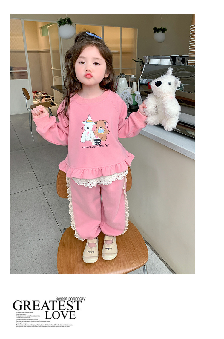 소녀 레이스 니트 만화 세트 봄과 가을 2025 새로운 패션 작은 소녀 스웨터 스포츠 투피스 세트스토어 가기
