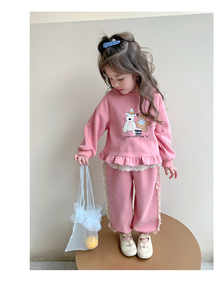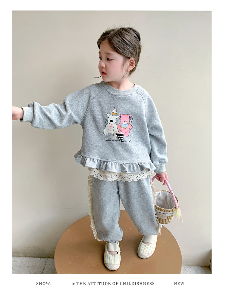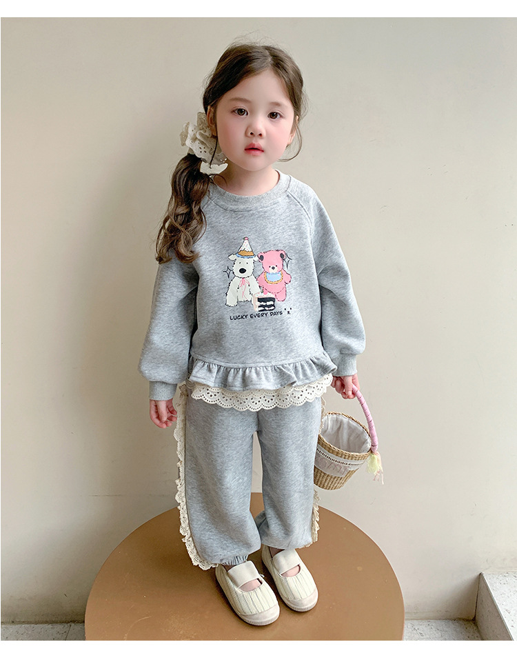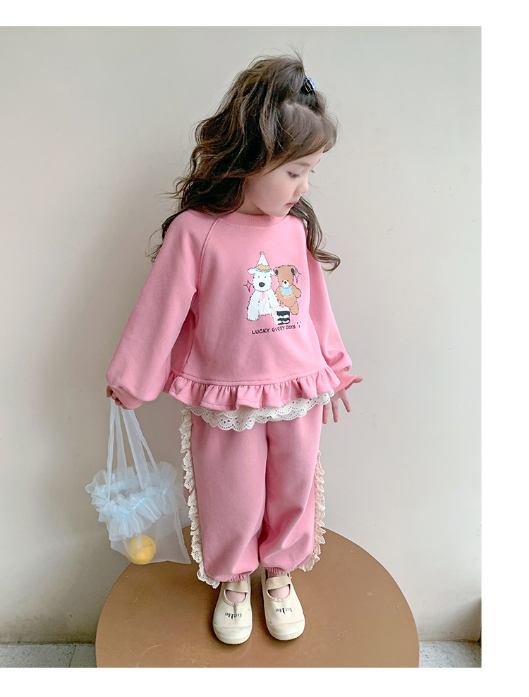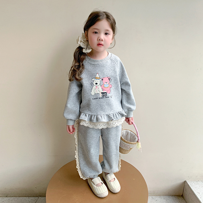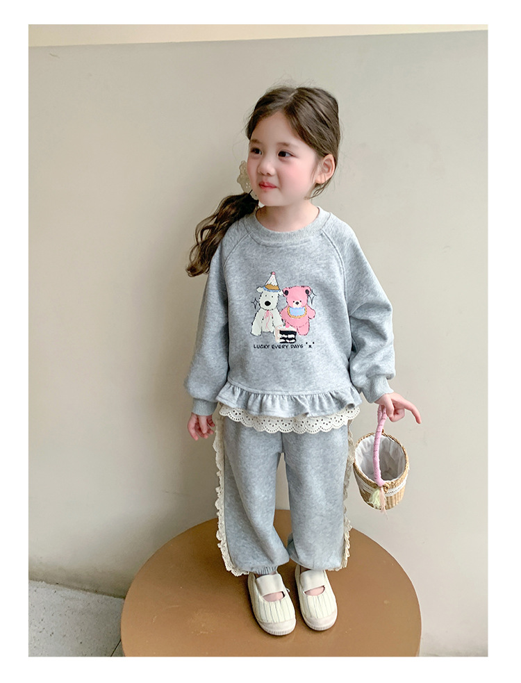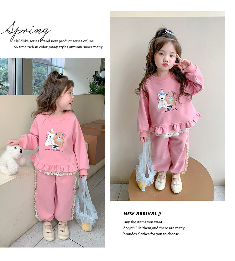 소녀 레이스 니트 만화 세트 봄과 가을 2025 새로운 패션 작은 소녀 스웨터 스포츠 투피스 세트스토어 가기